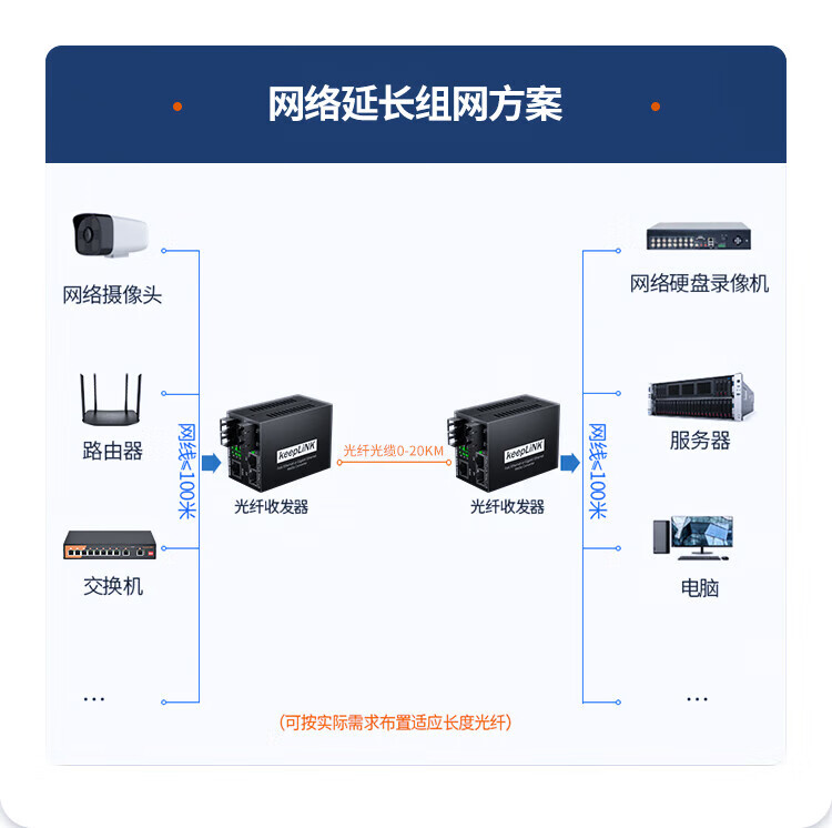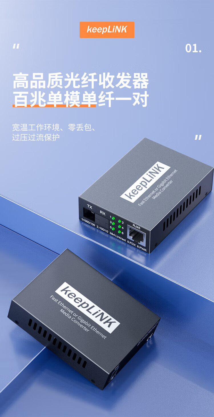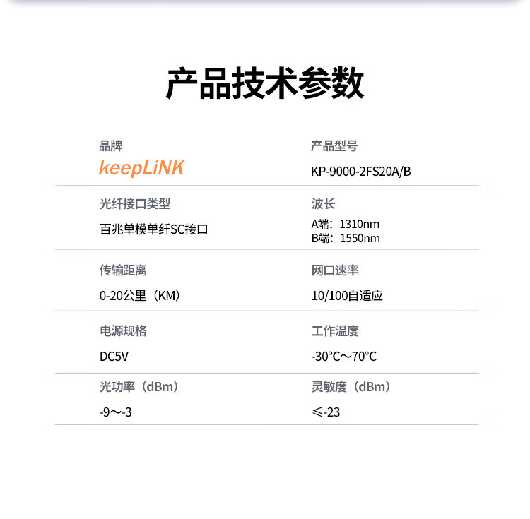 keepLINK KP-9000-2FS20A/B光纤收发器百兆一对单模单纤光电转换器20公里SC接口
