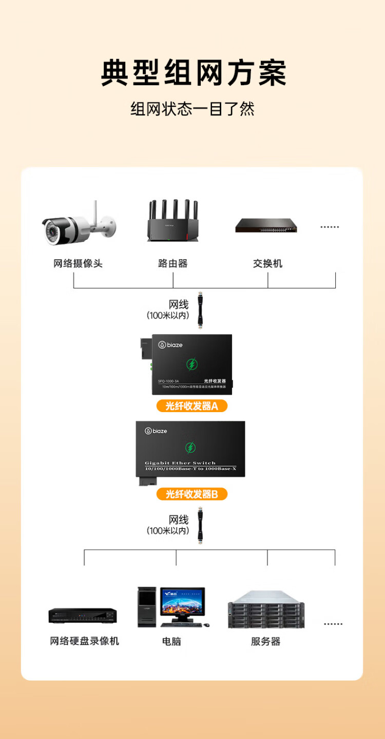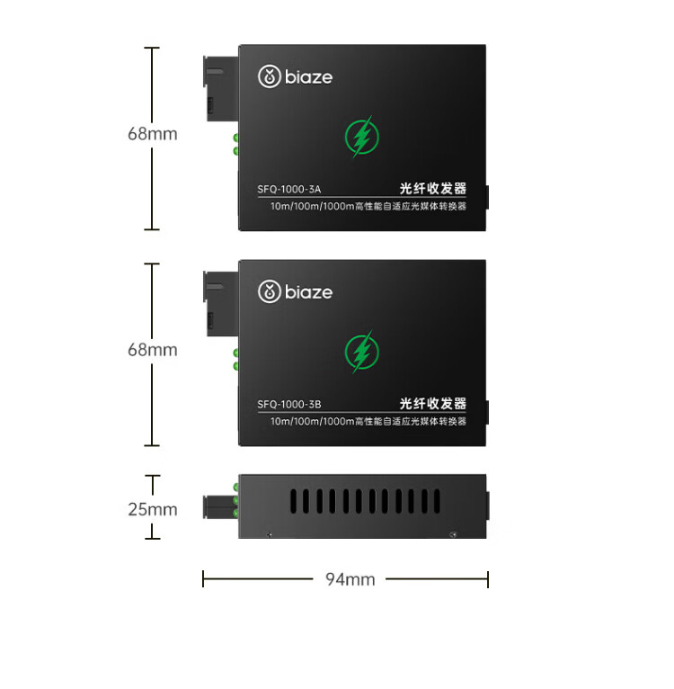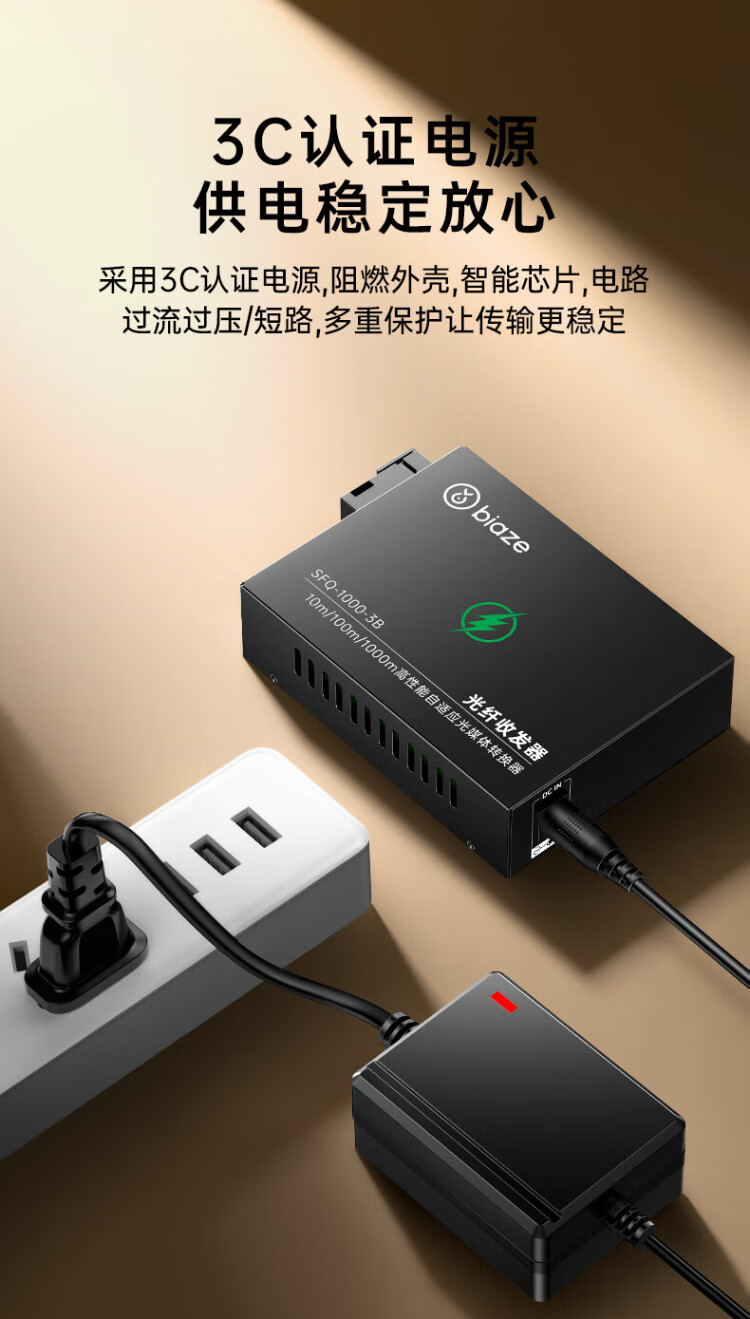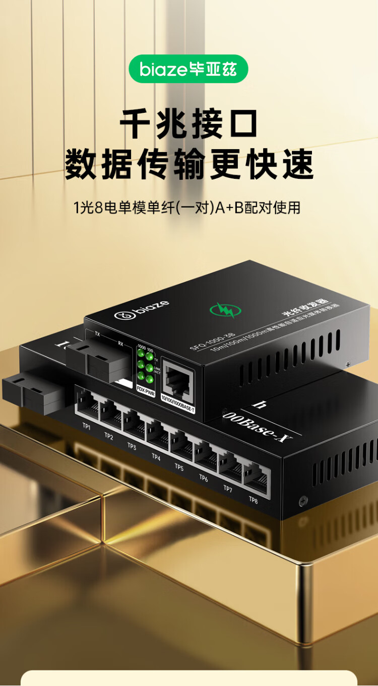 Biaz Gigabit single-mode single-fiber optical fiber transceiver photoelectric converter 1 optical 8 electrical + 1 optical 1 electrical set SC interface 3KM kilometers one pair