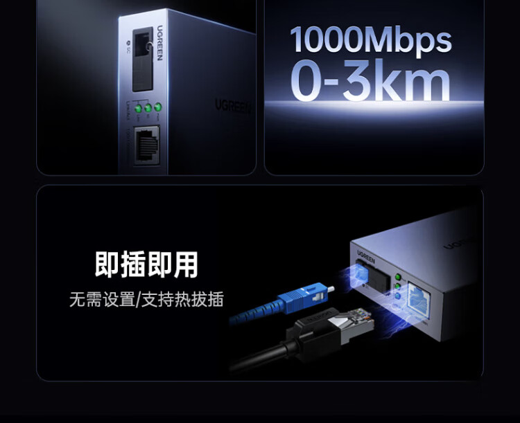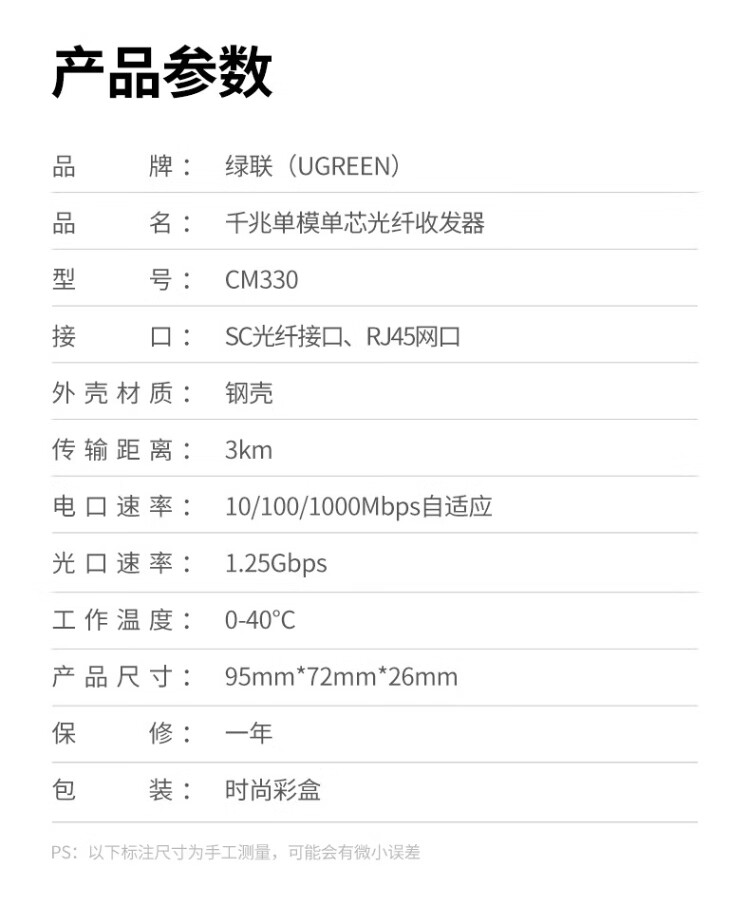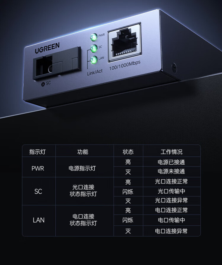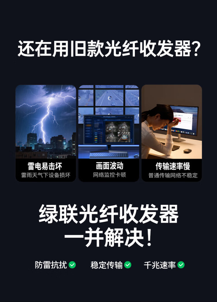 Greenlink Gigabit Optical Fiber Transceiver Single Mode Single Fiber Photoelectric Converter Lightning Protection and Surge Fiber to Network Cable Network Monitoring SC Interface 3KM Adaptive Pair 65665