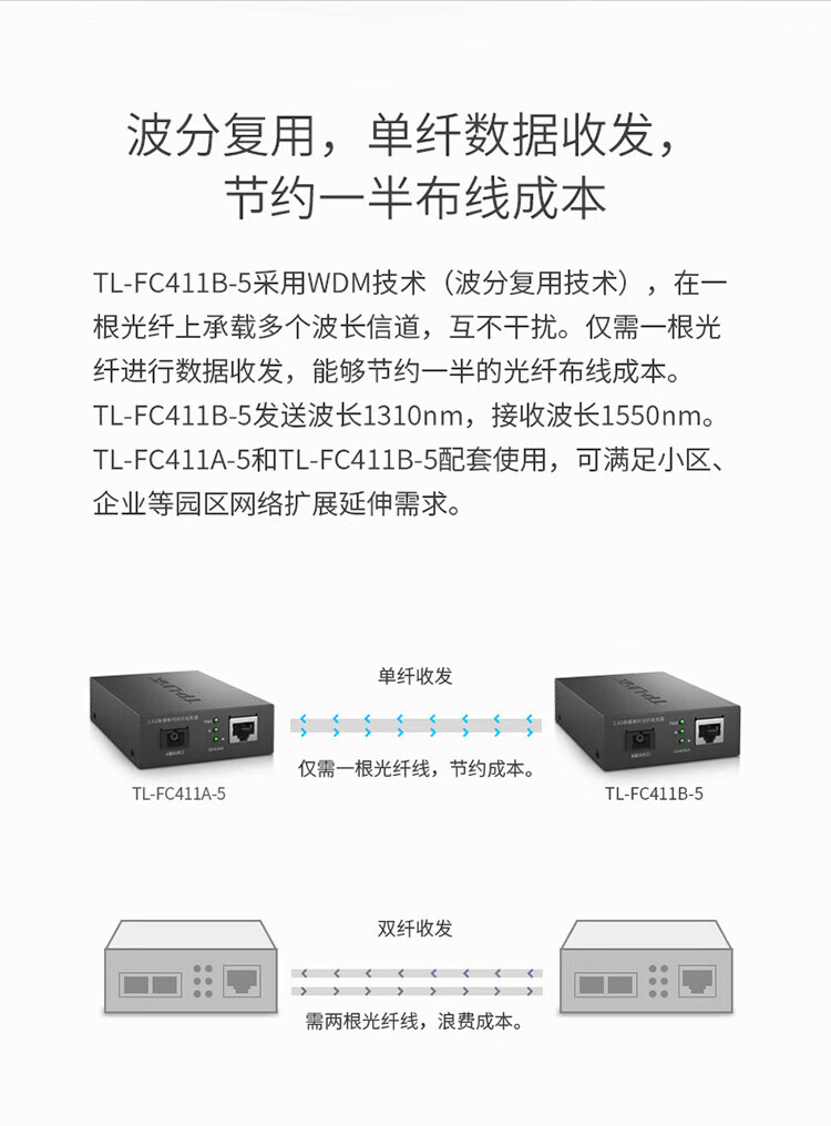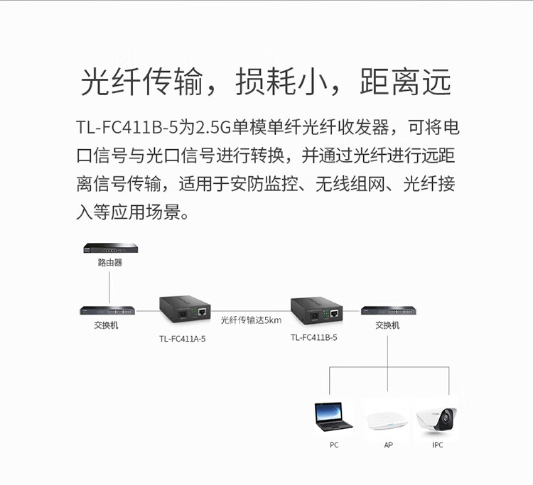 TP-LINK 2.5G single-mode single-fiber optical fiber transceiver A/B end needs to be used with photoelectric converter TL-FC411B-5