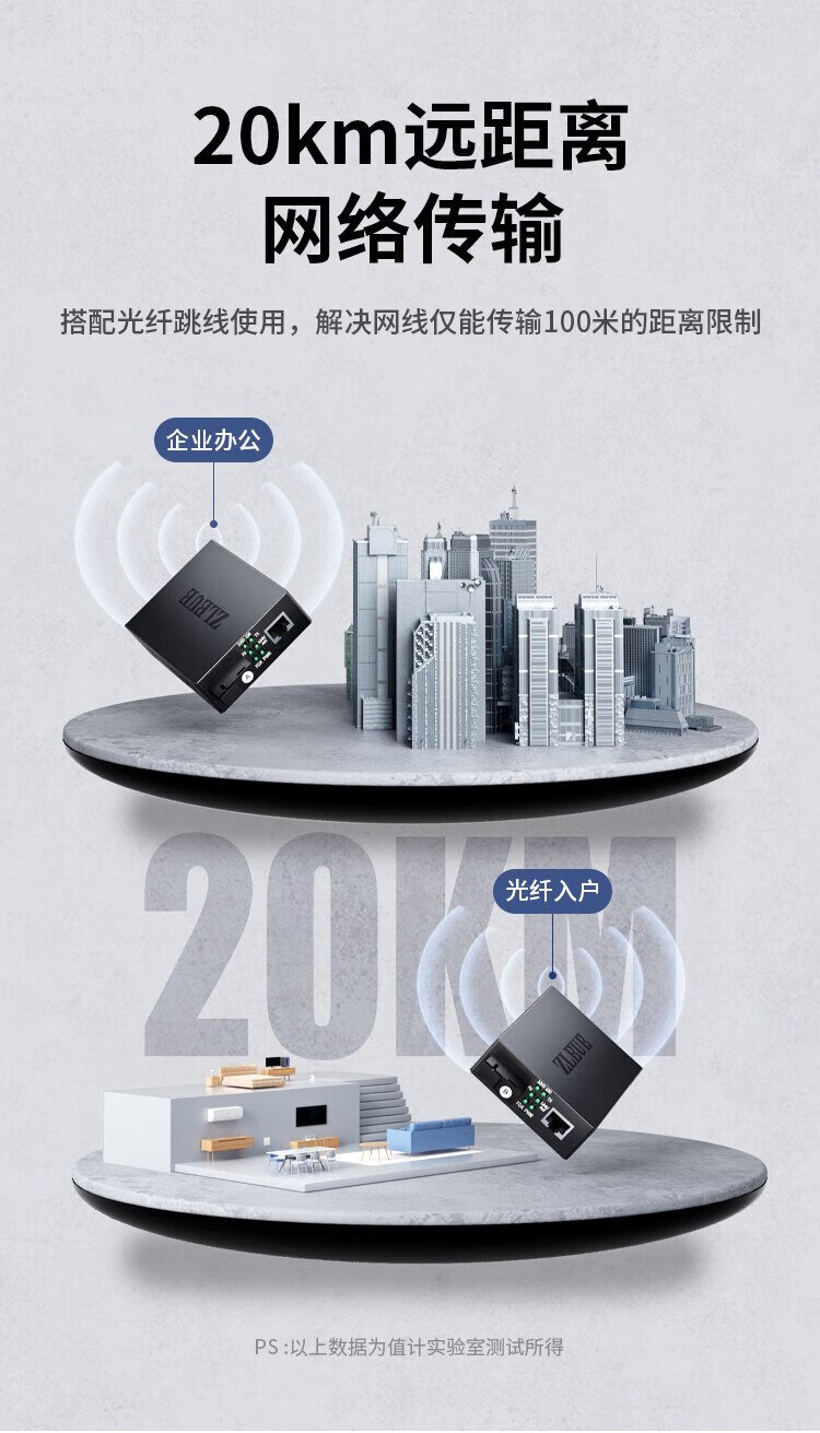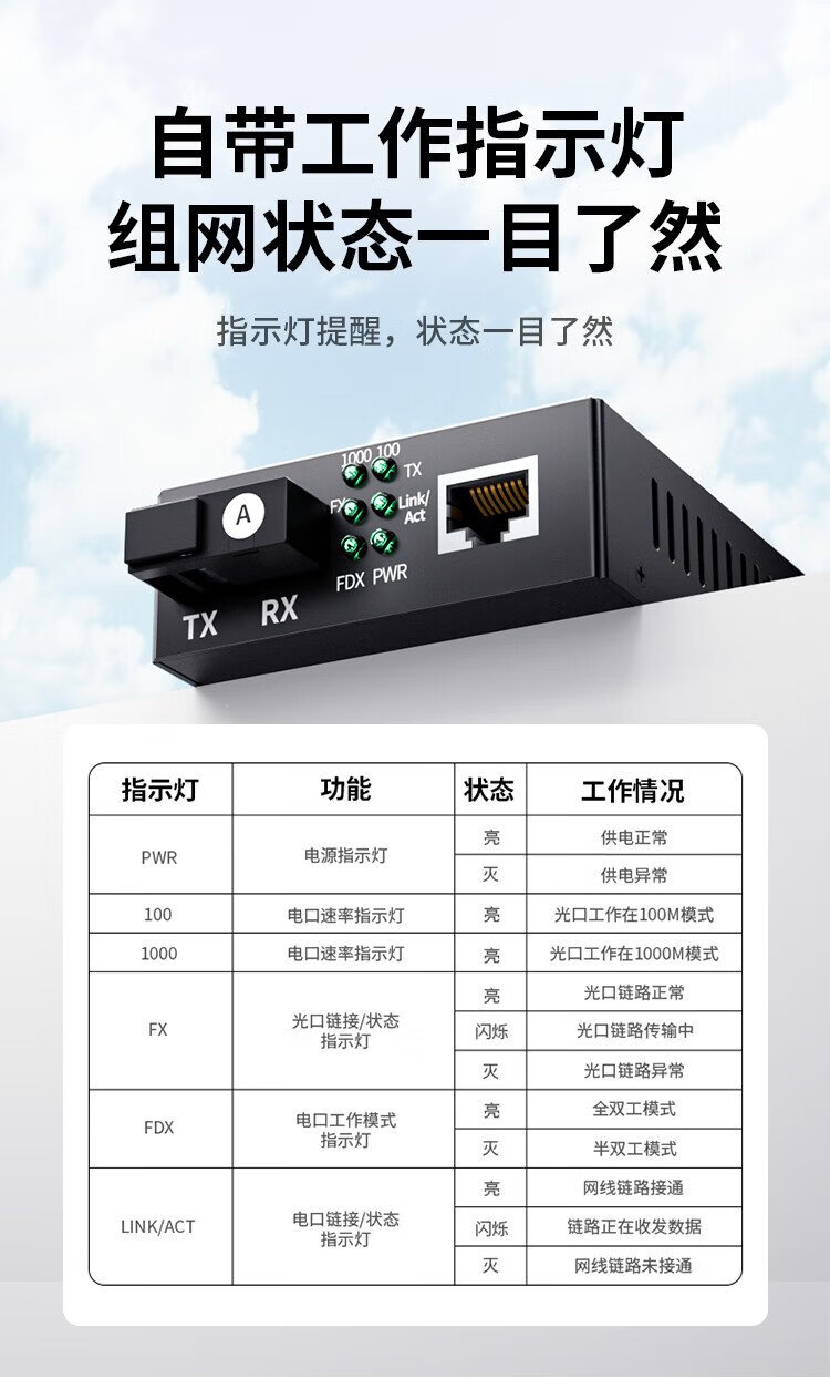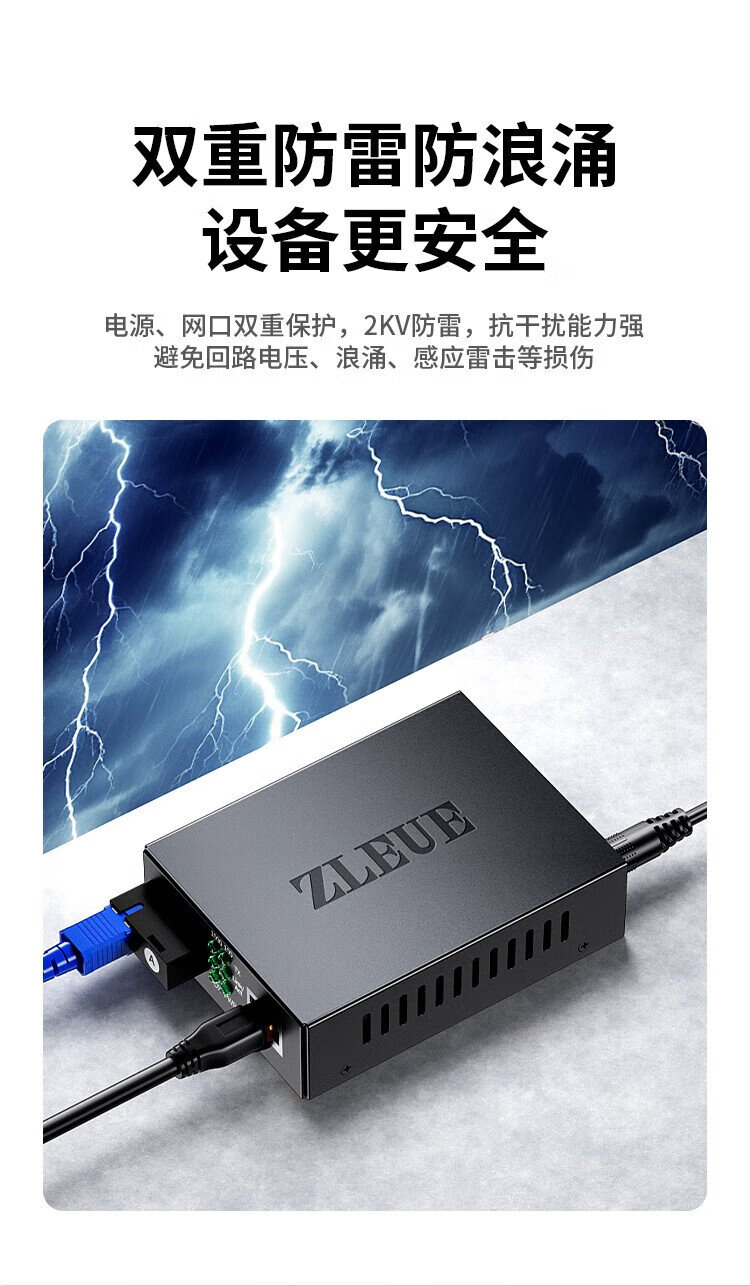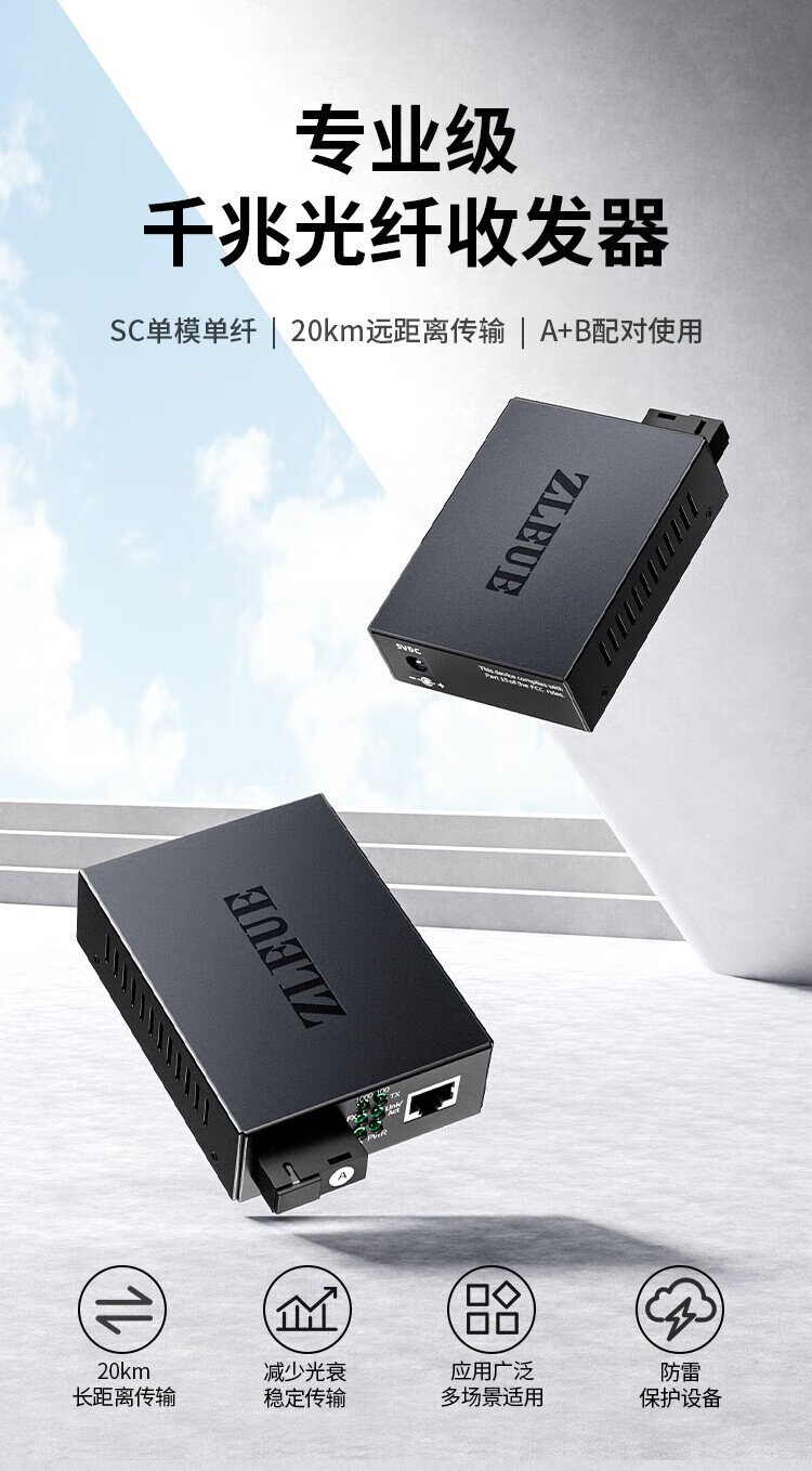Value meter, lightning protection and surge protection, Gigabit single-mode single-fiber optical fiber transceiver, photoelectric converter, carrier-grade SC interface adaptive 20KM, one pair