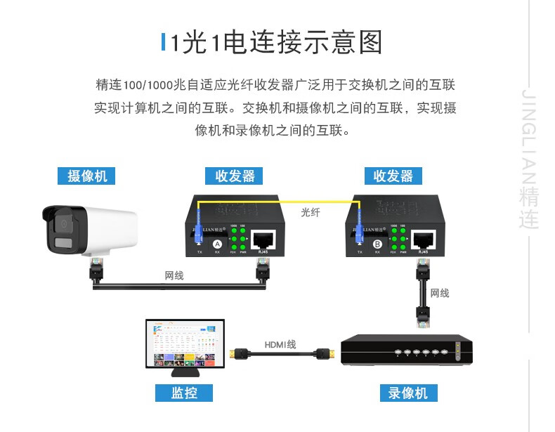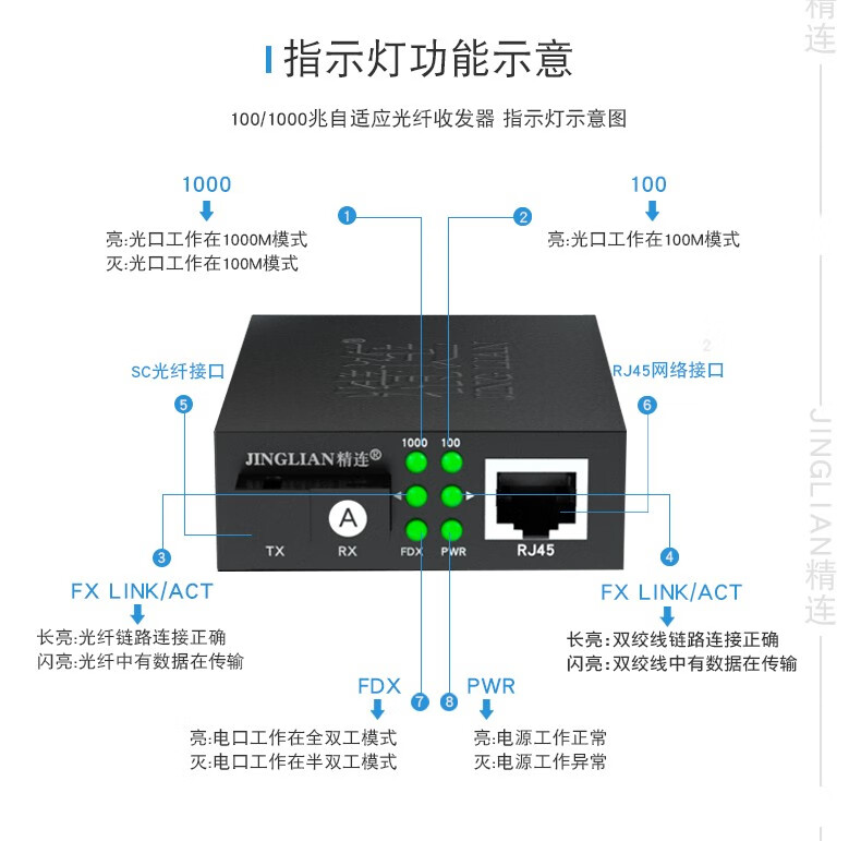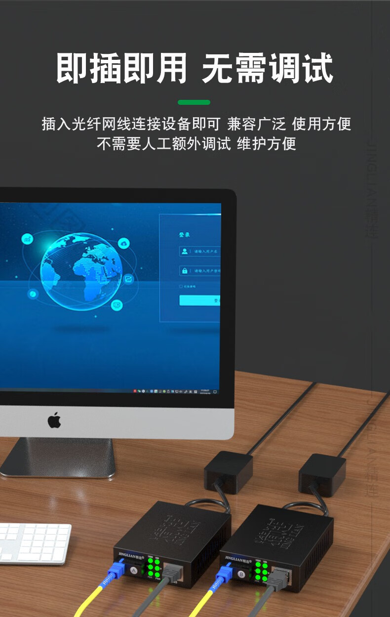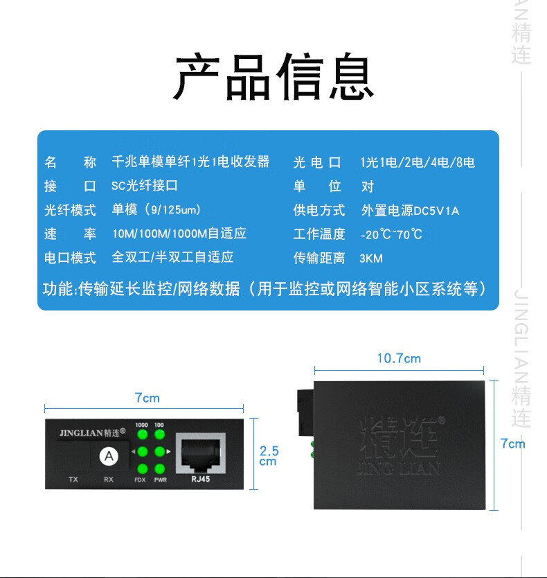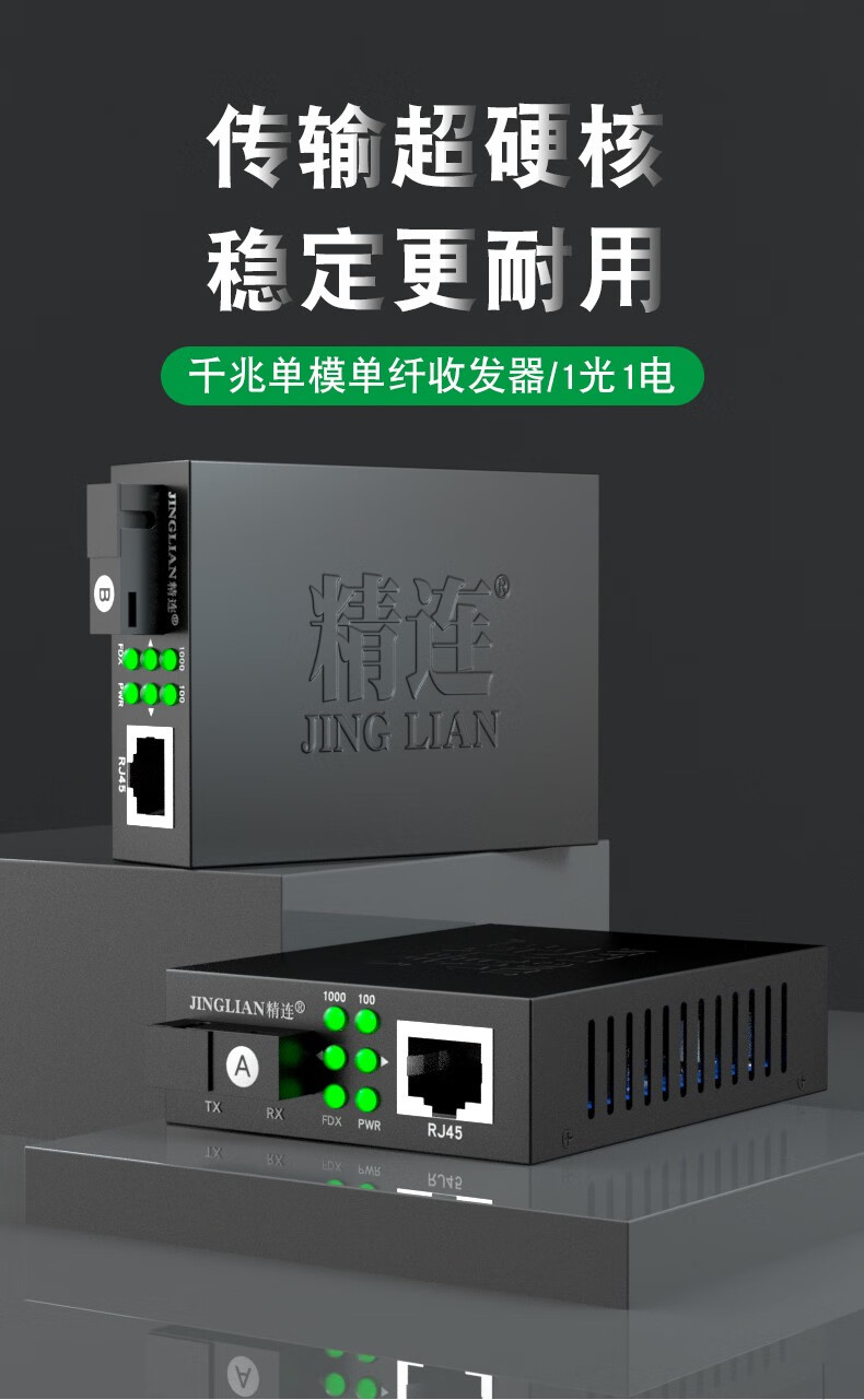 Jinglian fiber optic transceiver Gigabit single mode single fiber transceiver long distance optical to electrical converter network optical terminal single fiber 1 optical 1 electrical + 2 electrical (JL-SC1003AB-12)