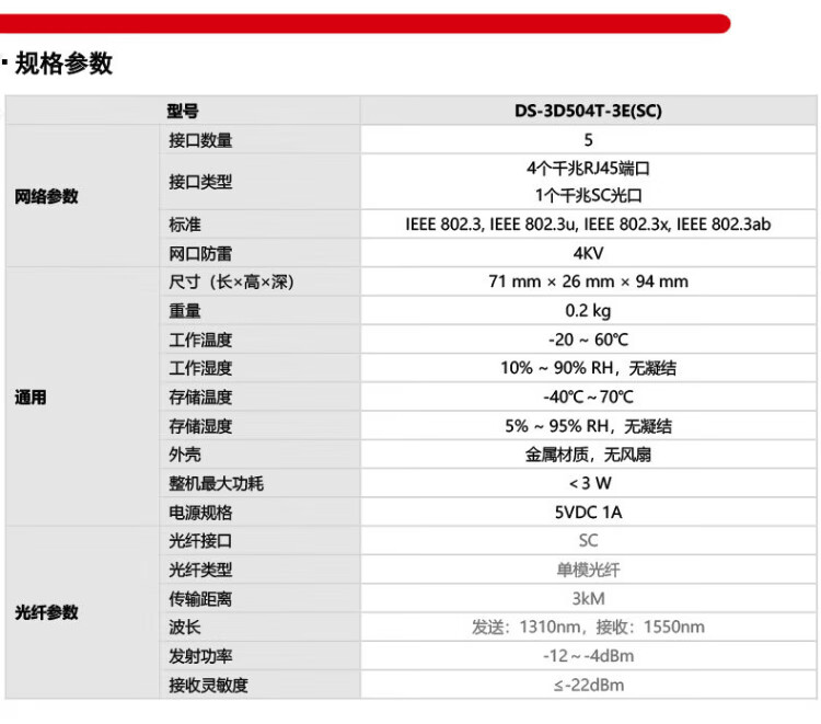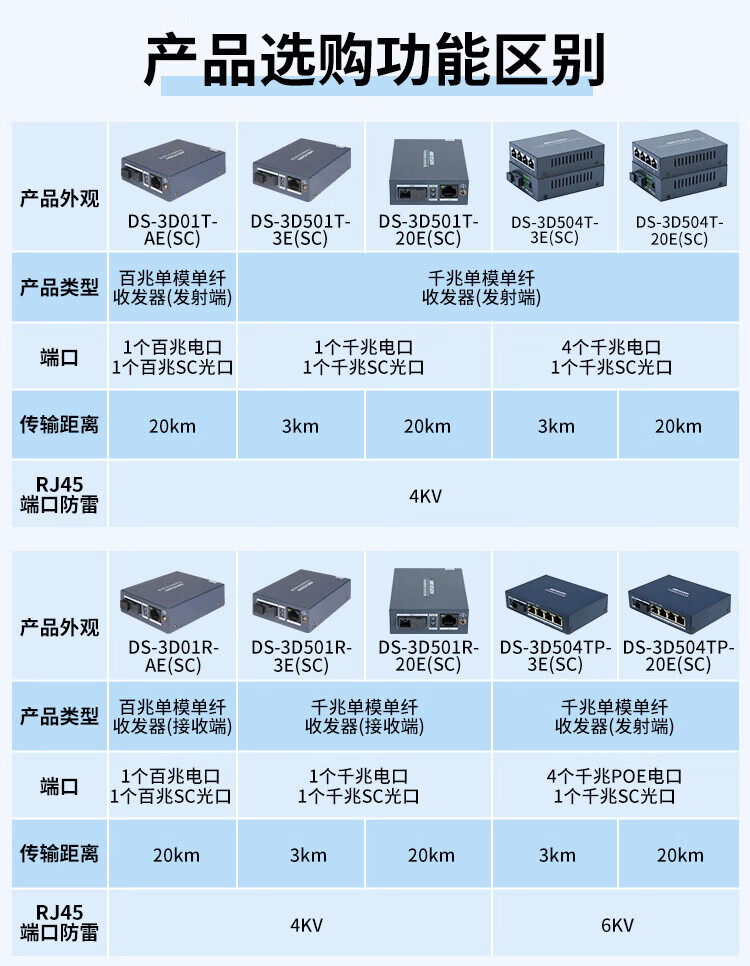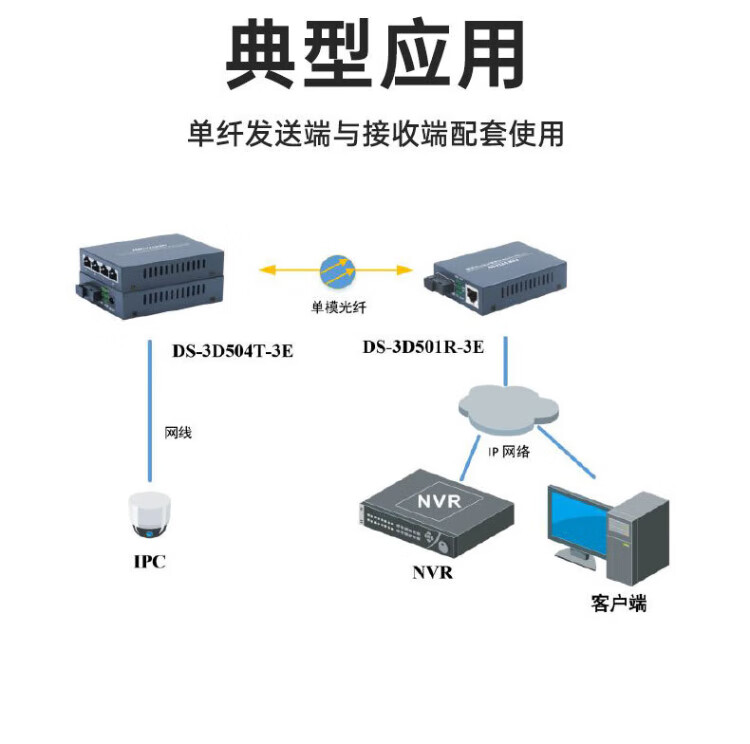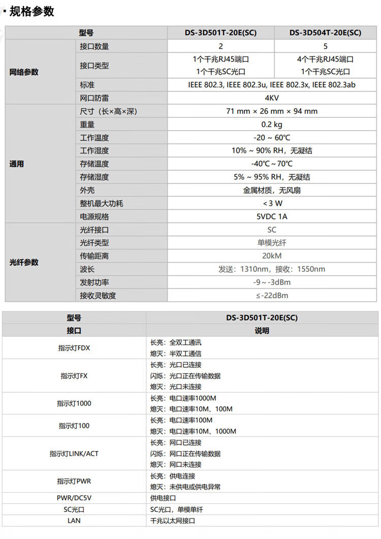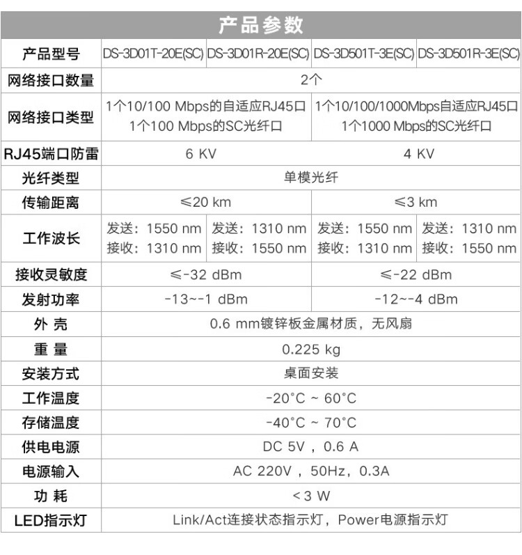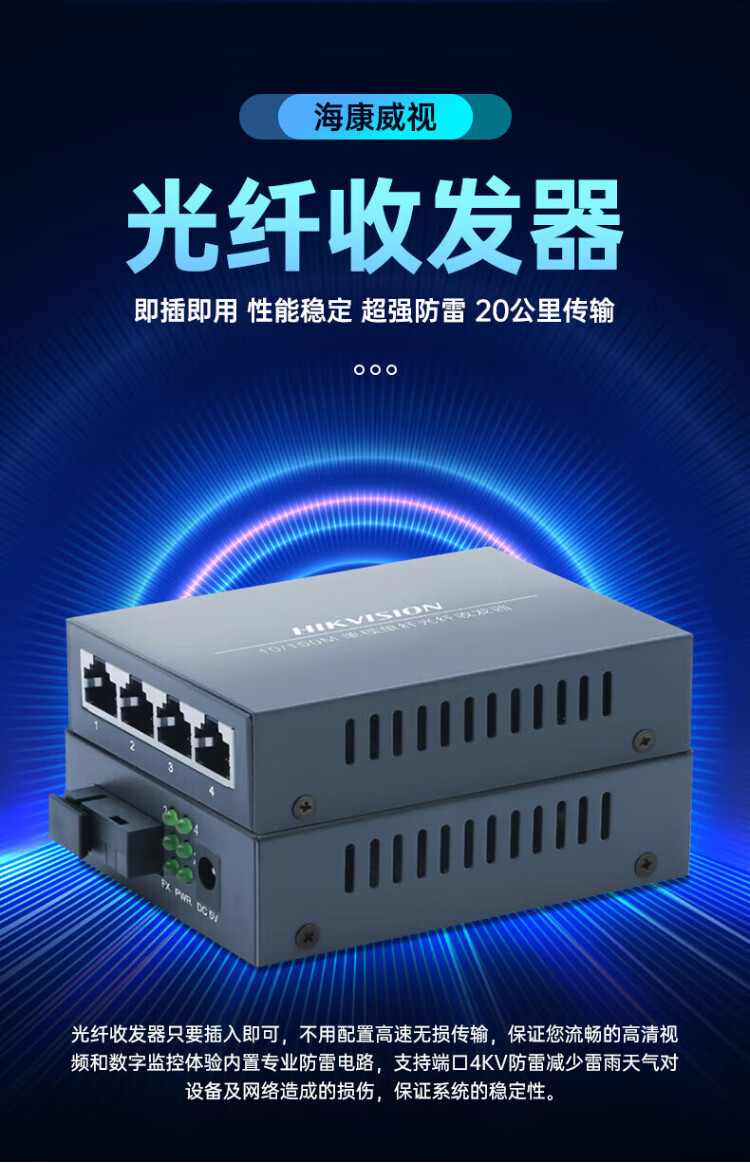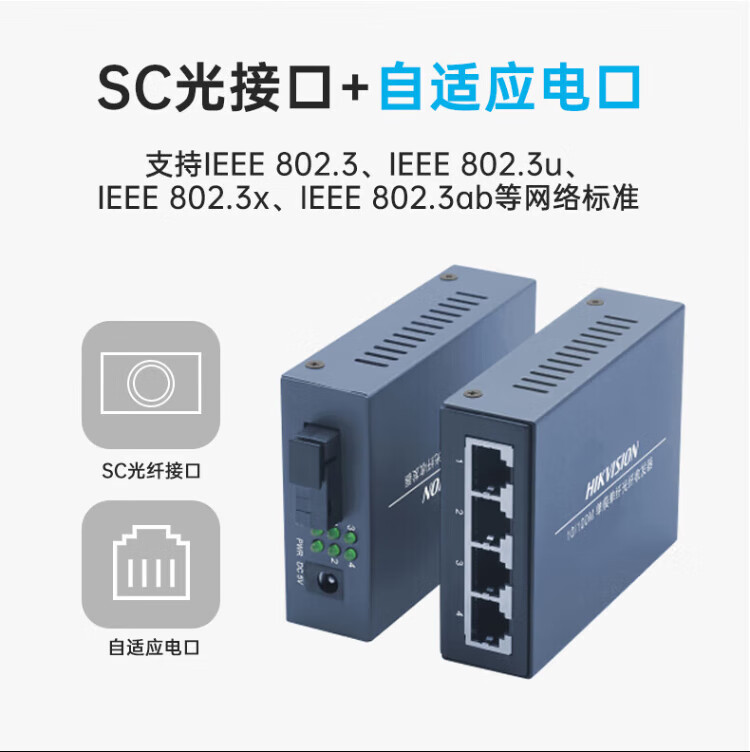 Hikvision (HIKVISION) fiber optic transceiver single-mode single-fiber network monitoring photoelectric converter SC interface 100M 20 kilometers丨3D01T/R-AE(SC) transmitter + receiver pair