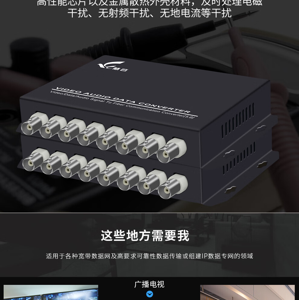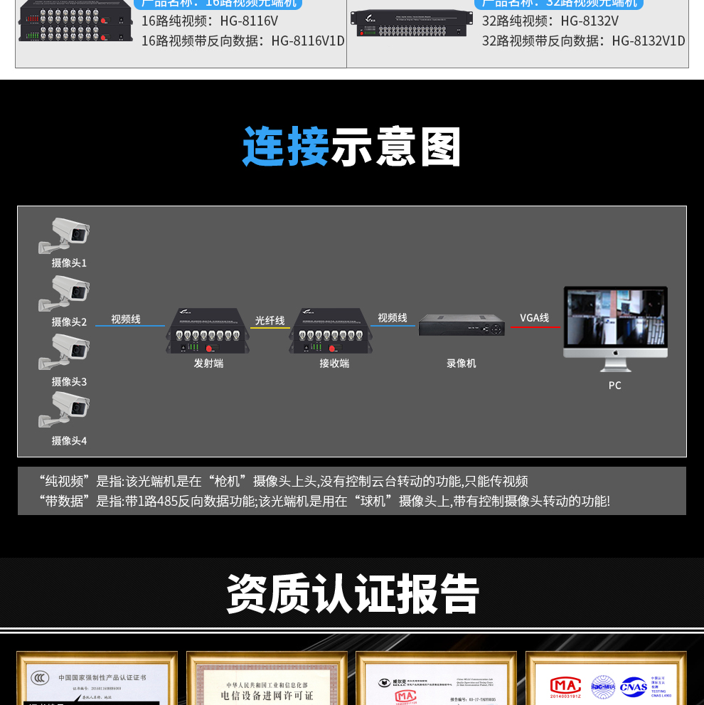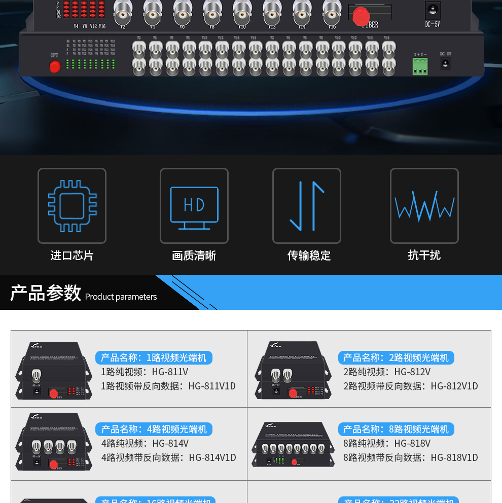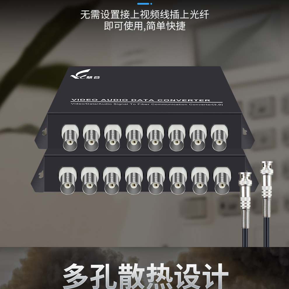 Huigu video optical transceiver, high-definition optical transceiver, analog surveillance optical fiber transceiver optical transceiver, single-mode single fiber FC interface, 20KM, one price, 8-channel analog video optical transceiver