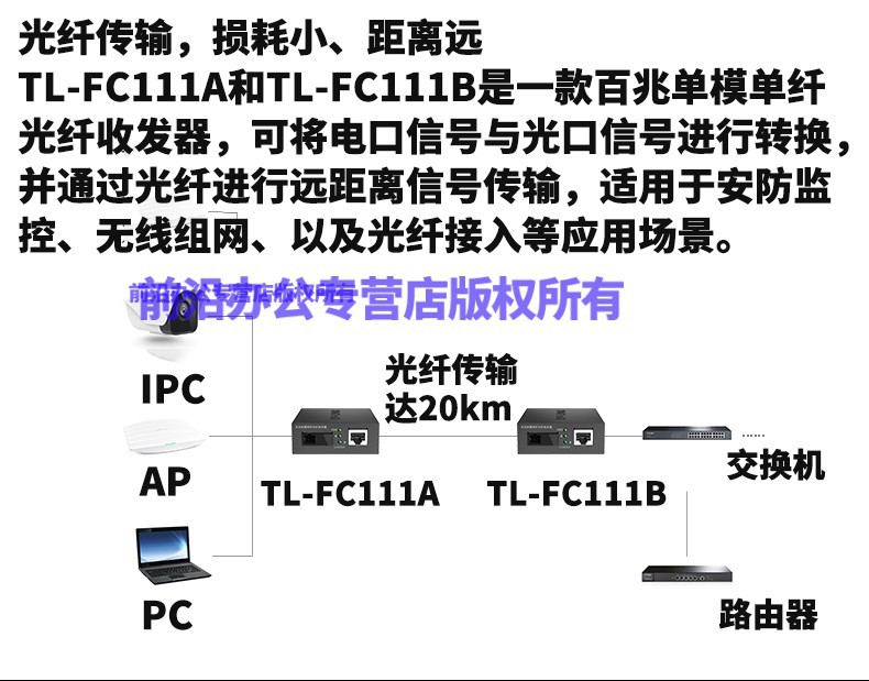 Pulian (TP-LINK) fiber optic transceiver pair set 100M high-speed single-mode single-fiber optical-to-electrical converter SC Dafangkou network monitoring 20km two-way long distance 5V-12V wide voltage Gigabit one optical one electric 20 kilometers TL-FC311A+B-20