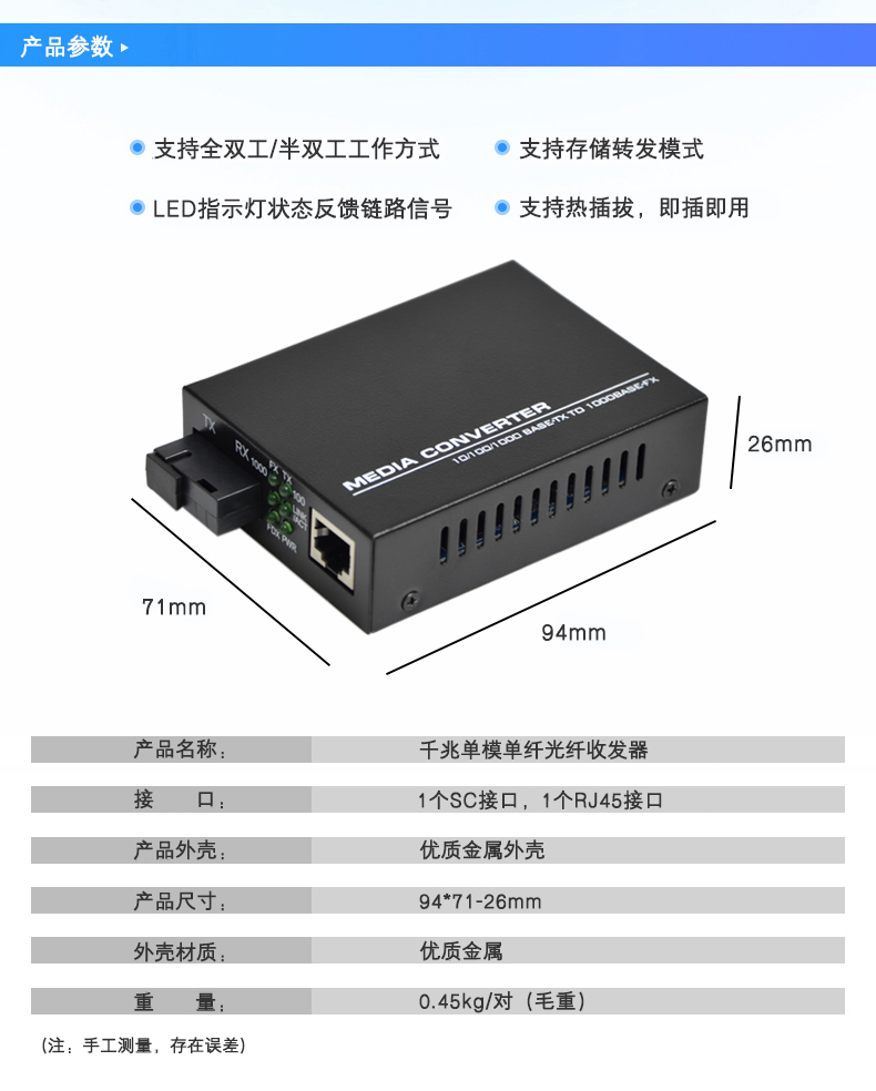 HAOHANXIN Haohanxin Gigabit single-mode single fiber fiber optic transceiver Gigabit photoelectric converter black pair 100 Mbit single-mode single fiber (large power supply) pair
