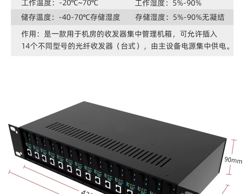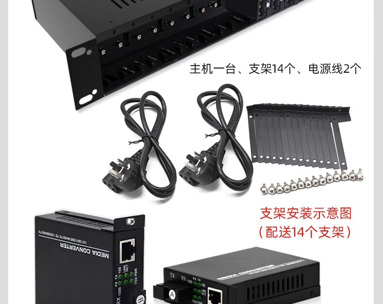 Xianfei 14-slot optical fiber transceiver rack 16-slot card-type optical fiber transceiver centralized power supply rack compatible with TP-LINK optical fiber transceiver rack 14-slot transceiver rack (2.5mm interface)