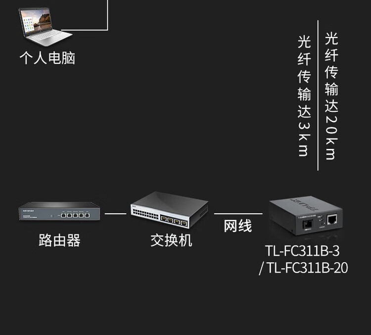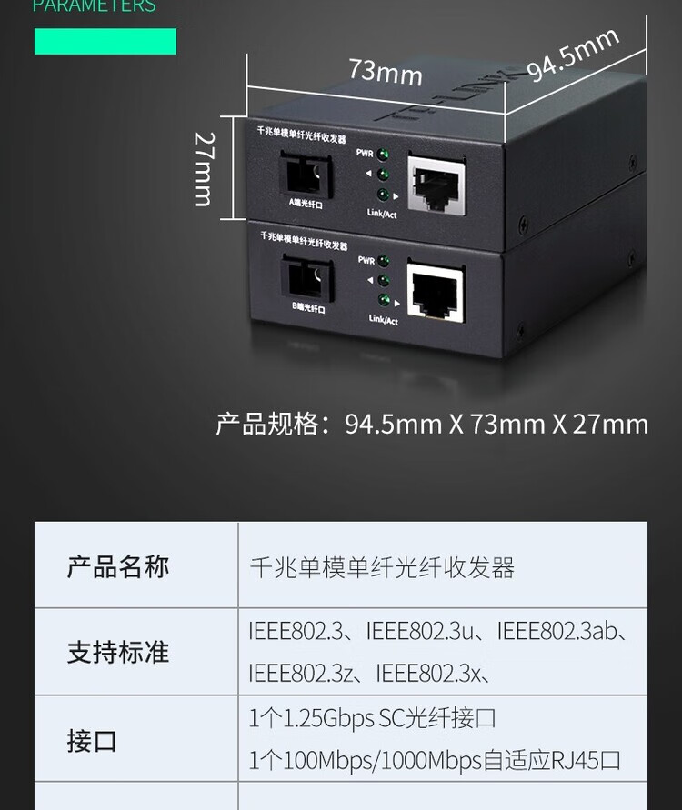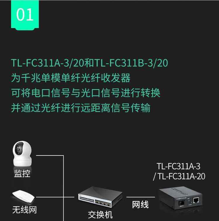 普联(TP-LINK) TL-FC311A/B-3套装 单模单纤千兆光纤收发器1000M光电转换器 FC311A-3 + FC311B-3 套装