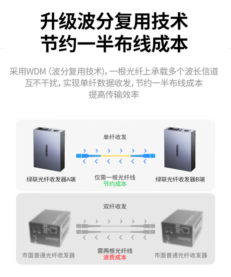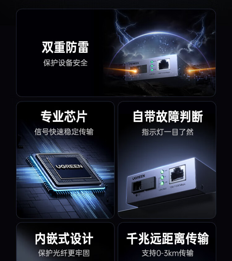 Greenlink fiber optic transceiver, Gigabit single-mode single fiber, lightning protection and surge protection, photoelectric converter, carrier-grade network monitoring, SC interface adaptation, Gigabit 3KM transceiver, single-mode single fiber, one pair