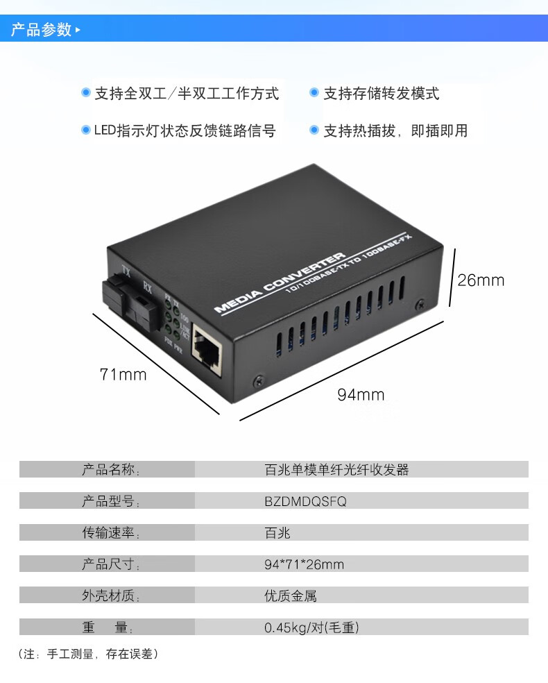 HAOHANXIN Haohanxin 100M single mode single fiber transceiver fiber optic transceiver photoelectric converter black pair 100M single mode single fiber 1100s pair AB end