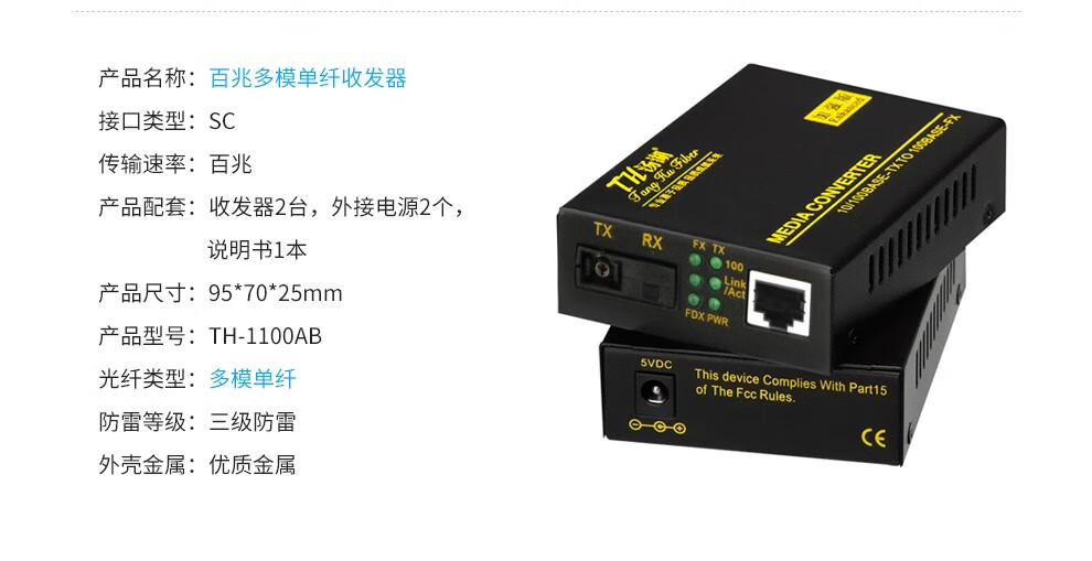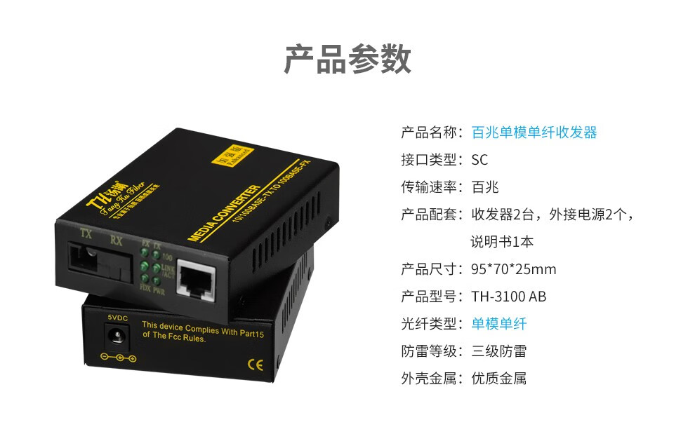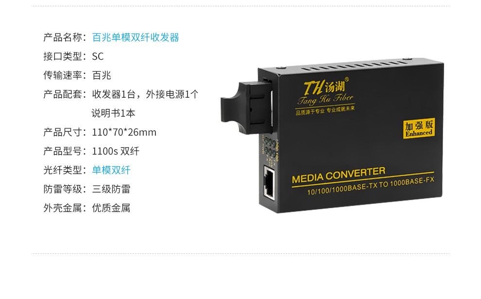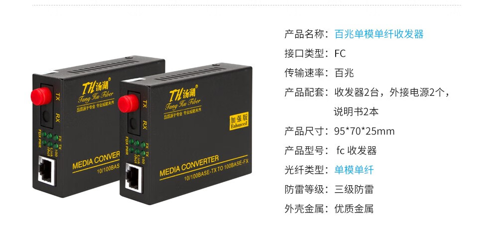 Tanghu Enhanced version of 100M single-mode single-fiber optical fiber transceiver 25KM photoelectric converter pair/single-mode dual-fiber transceiver one multi-mode dual-fiber transceiver One pair of enhanced single-mode single fiber AB
