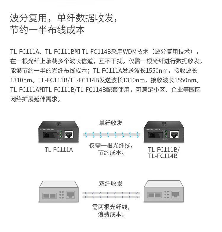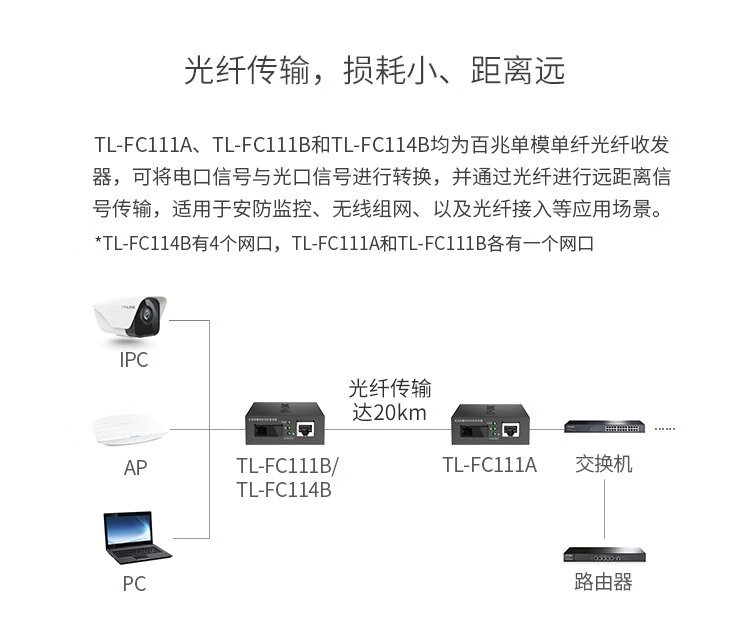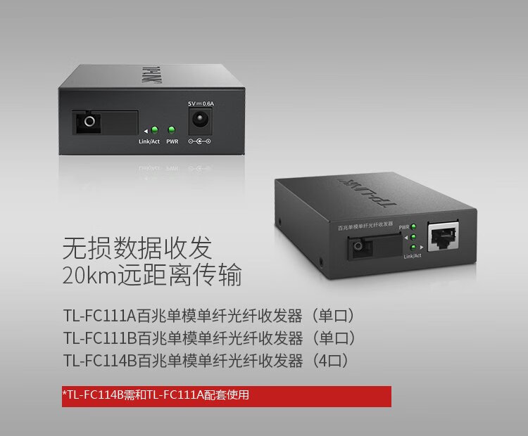 TP-LINK TL-FC114B 百兆单模单纤光纤收发器 1SC+4FE光电转换器(单只装)