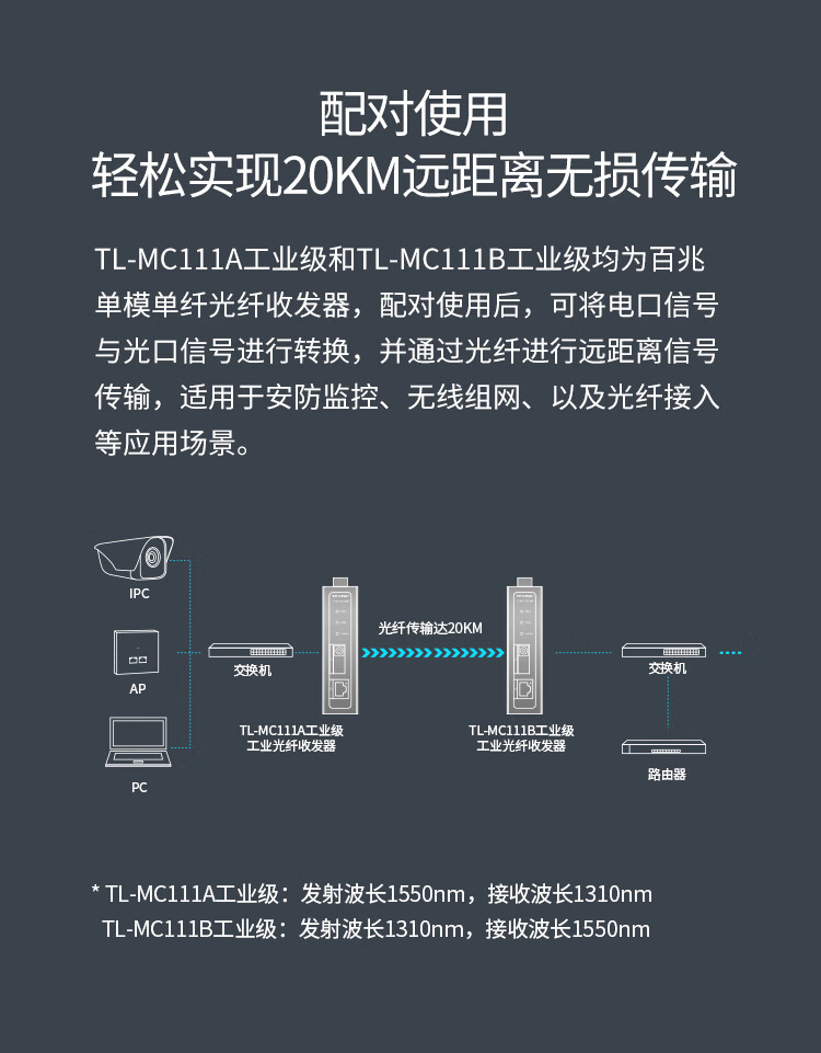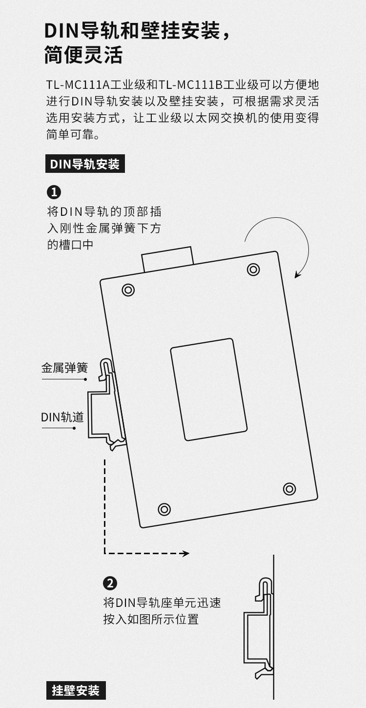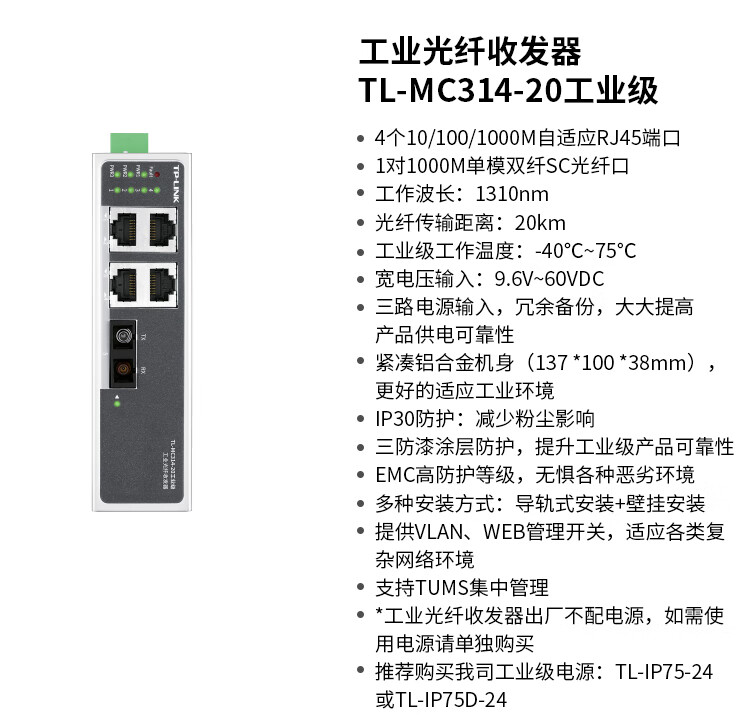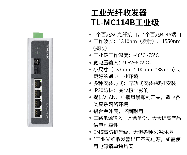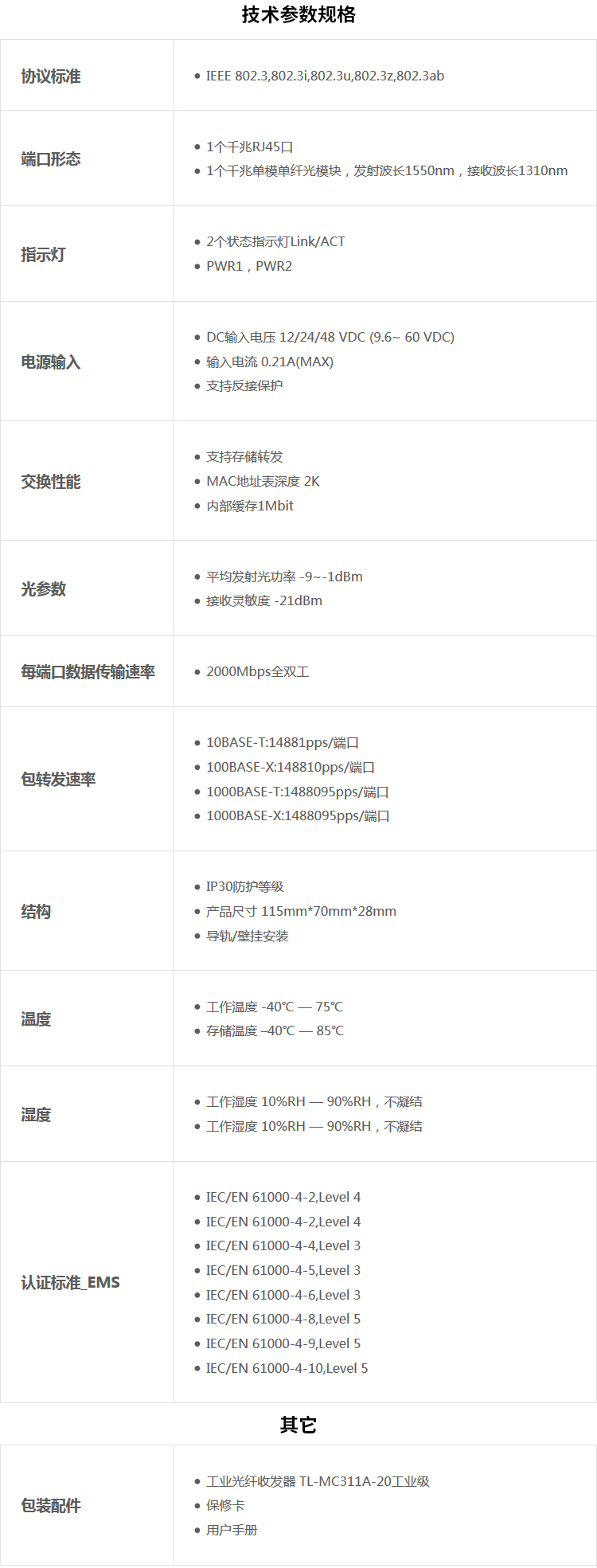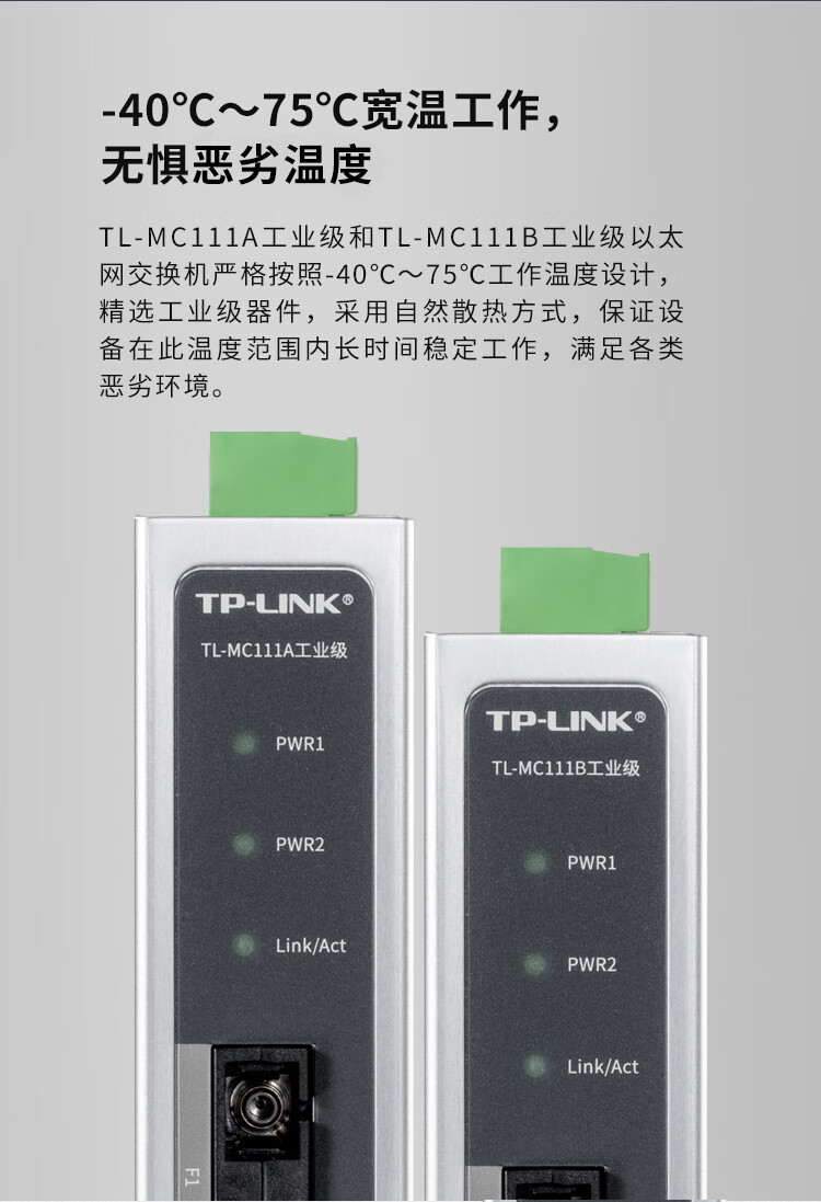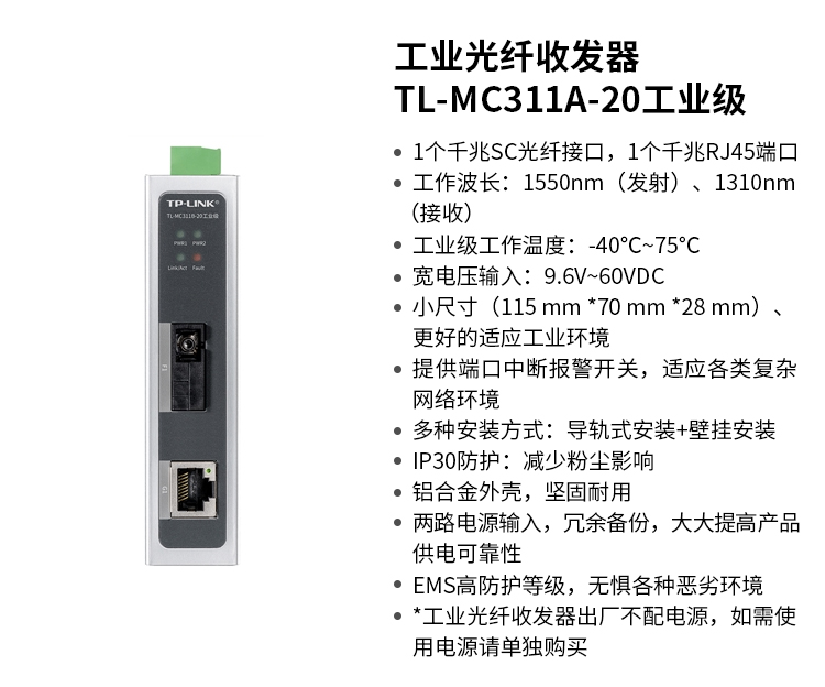 Pulian (TP-LINK) Industrial grade single-mode single fiber optical fiber transceiver SC interface photoelectric converter 20 kilometers IP30 protection DIN rail wall-mounted installation TL-MC311B-20 industrial grade Gigabit 1 optical 1 electrical price per unit