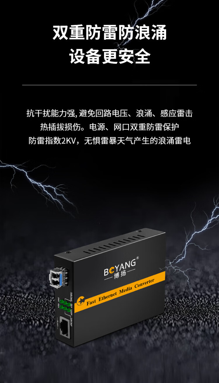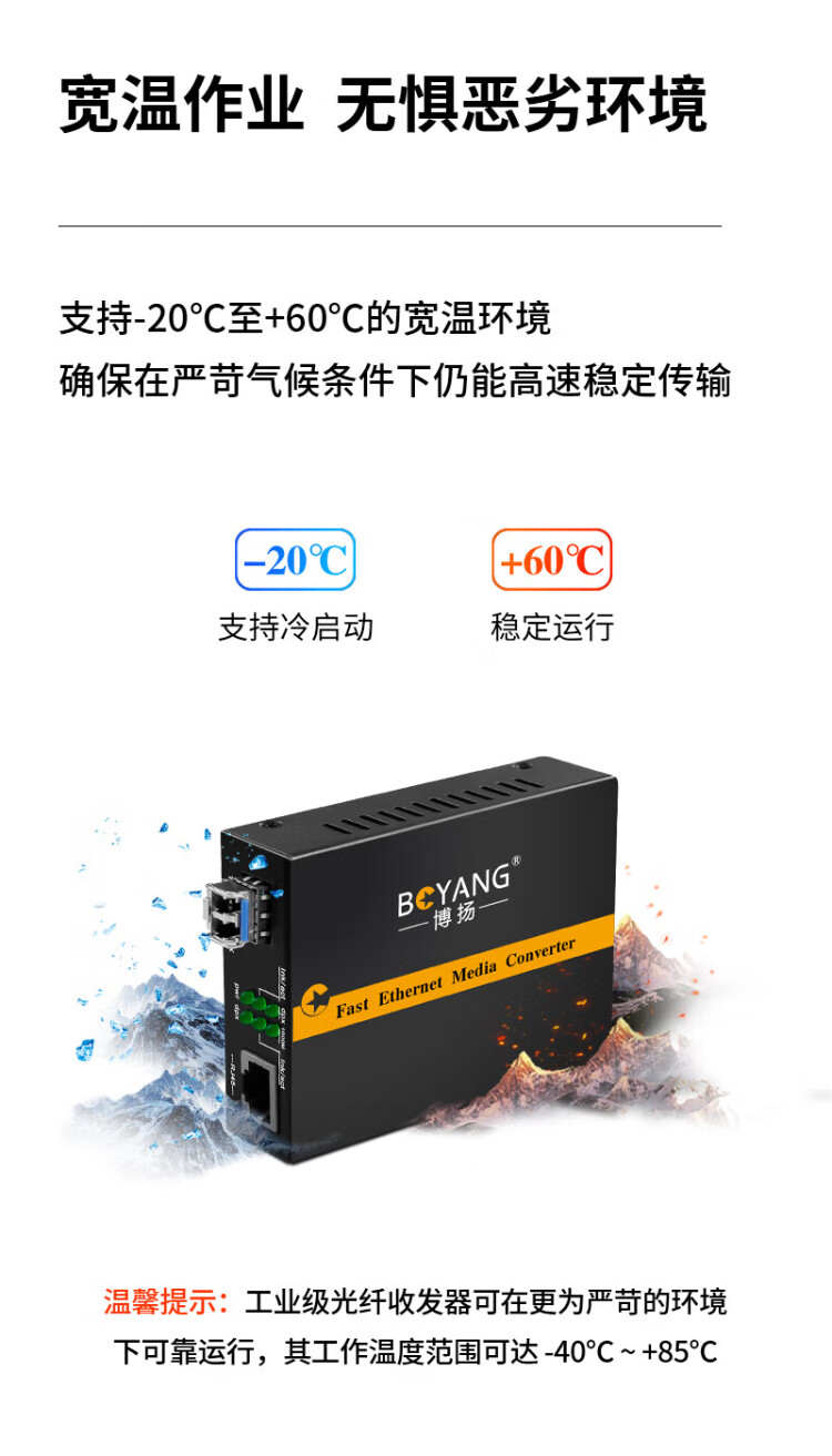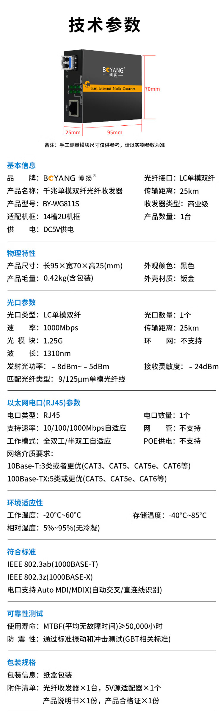BOYANG Gigabit dual-fiber single-mode fiber optic transceiver, photoelectric converter, lightning protection LC interface, 25km external power supply, one photoelectric transceiver BY-WG811S
