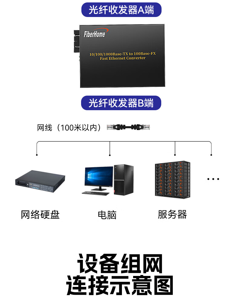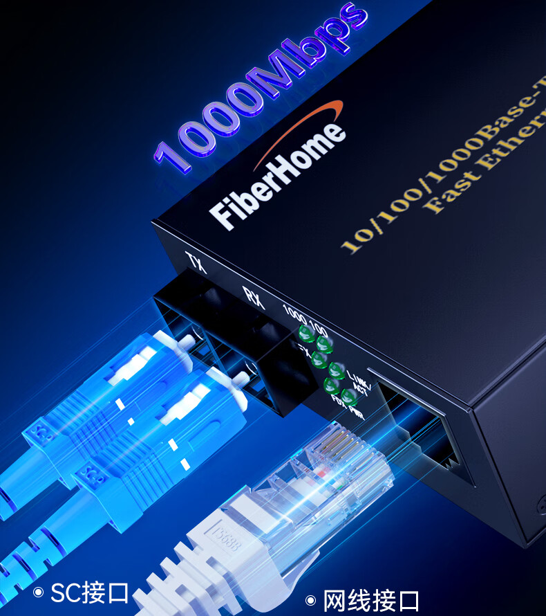 FiberHome Fiberhome fiber optic transceiver 100M single-mode dual fiber enterprise-grade commercial external power supply SC interface Gigabit multi-mode photoelectric converter 100M single-mode dual fiber 20km single installation 02B