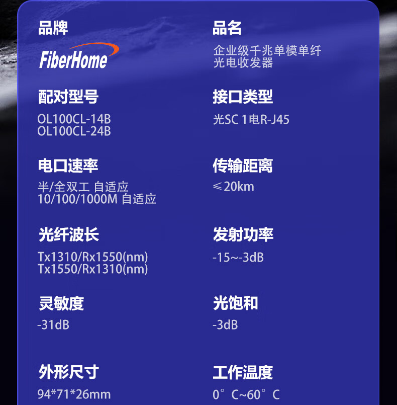FiberHome Fiberhome fiber optic transceiver 100M single-mode single fiber enterprise-grade commercial external power supply SC interface Gigabit dual-fiber photoelectric converter Gigabit single-mode single fiber 40km single A-end 14C