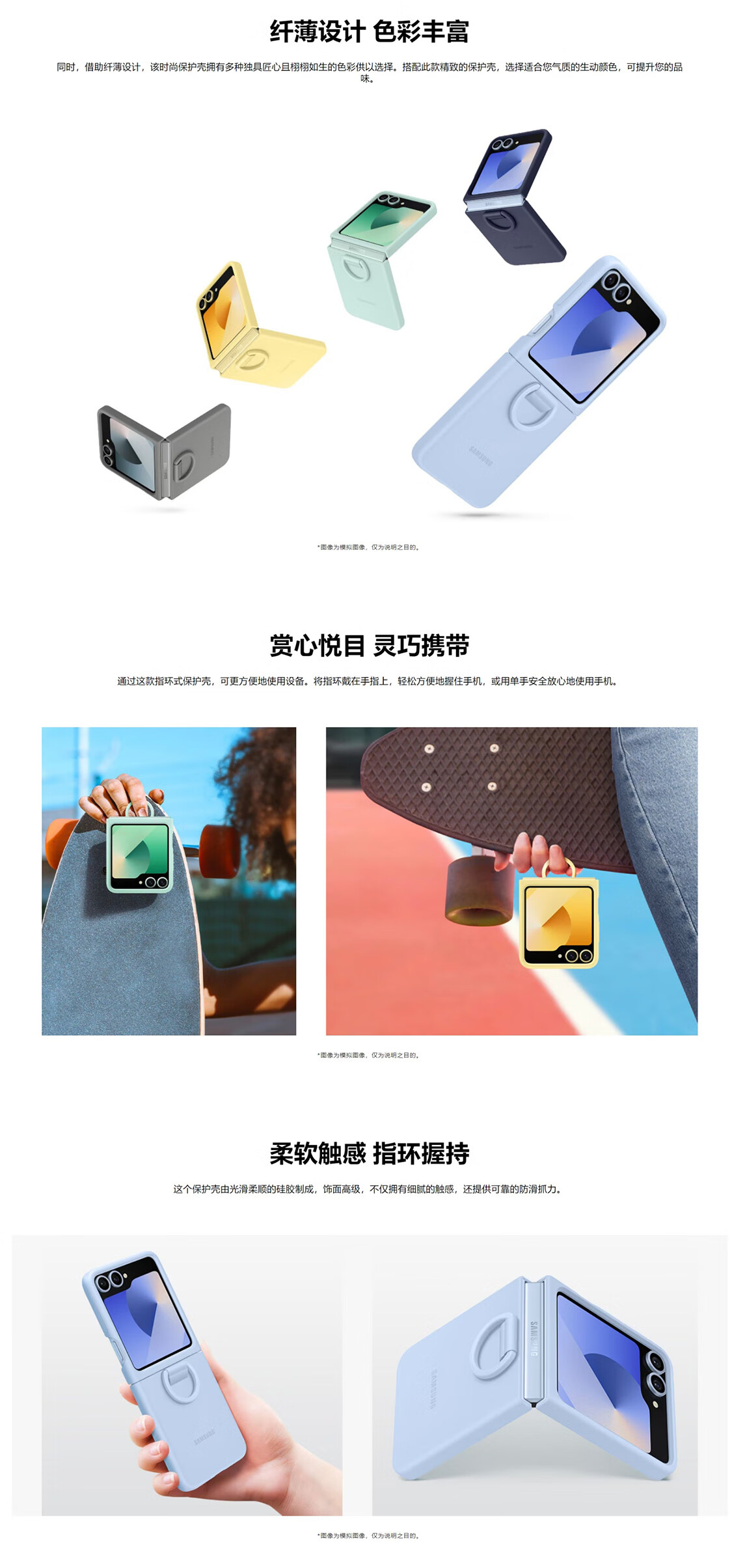 Samsung Galaxy Z Flip6/Flip7 FE original ring-style silicone protective case mobile phone case original mobile phone case multi-functional protective case light blue