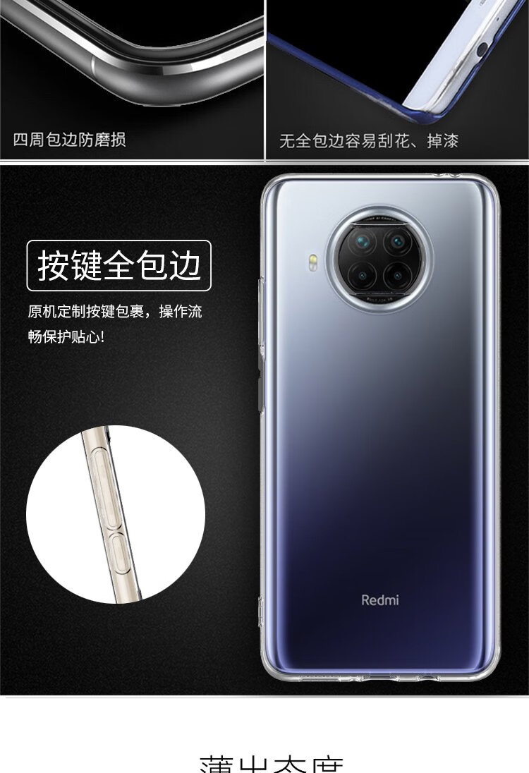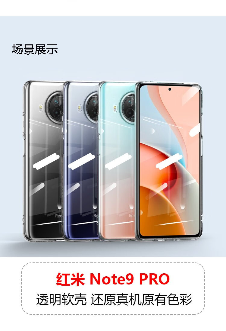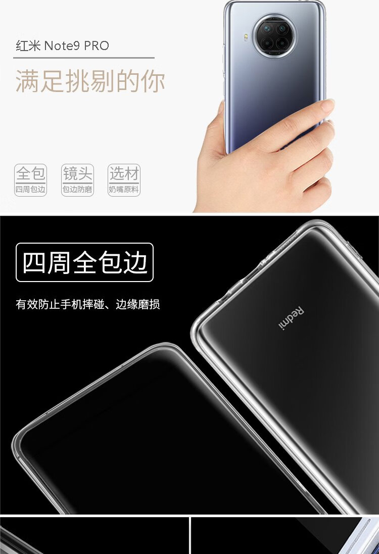 ESCASE Redmi Note9pro mobile phone case, anti-fall all-inclusive/soft shell silicone (with lanyard hole) protective cover, transparent