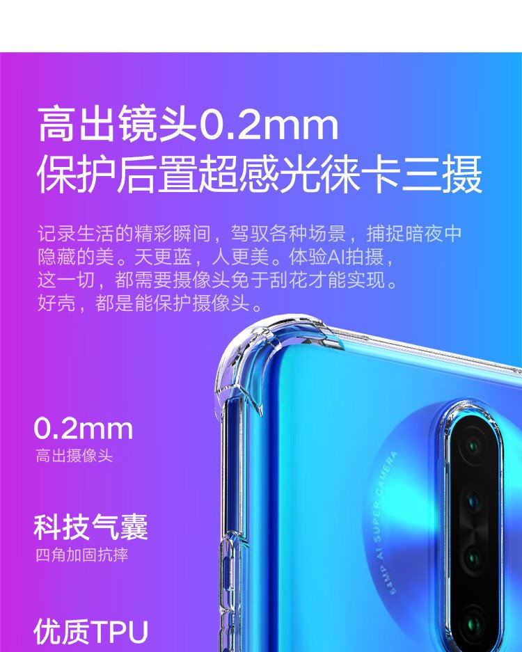 ESCASE is suitable for Redmi Redmi k30/30i mobile phone case speed version protective cover Xiaomi all-inclusive airbag anti-fall (with lanyard hole) ES-iP9 series upgraded version transparent white