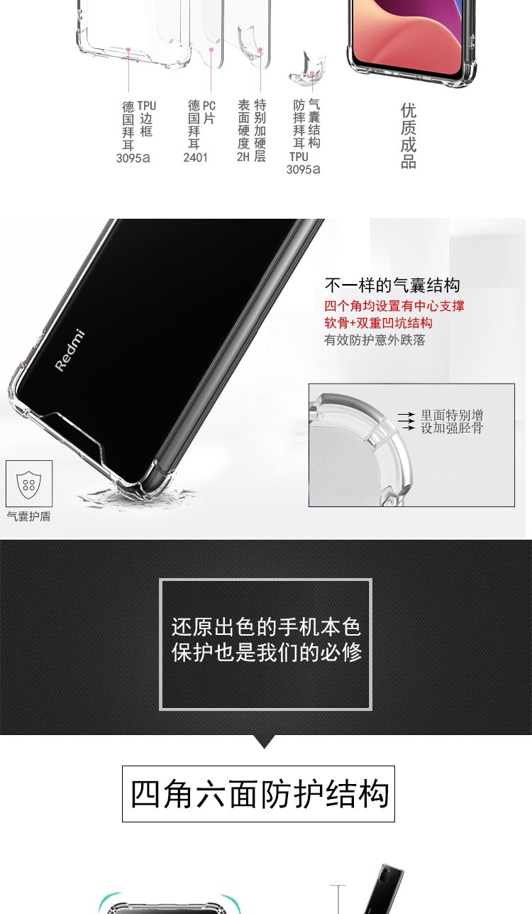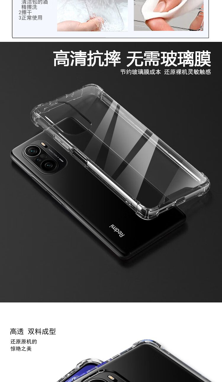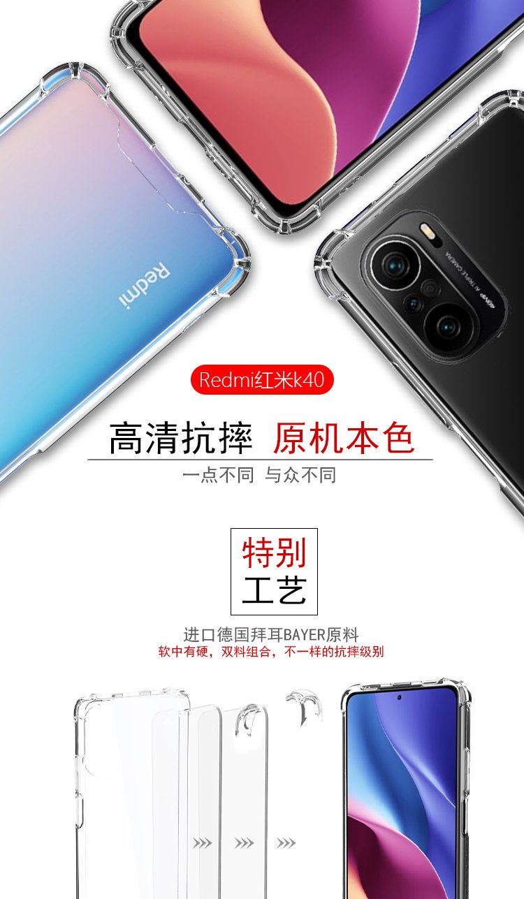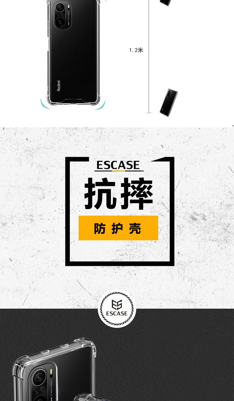 ESCASE Redmi K40/40pro mobile phone case Xiaomi RedmiK40pro + protective cover airbag double material anti-fall and anti-yellowing German imported Bayer high transparency
