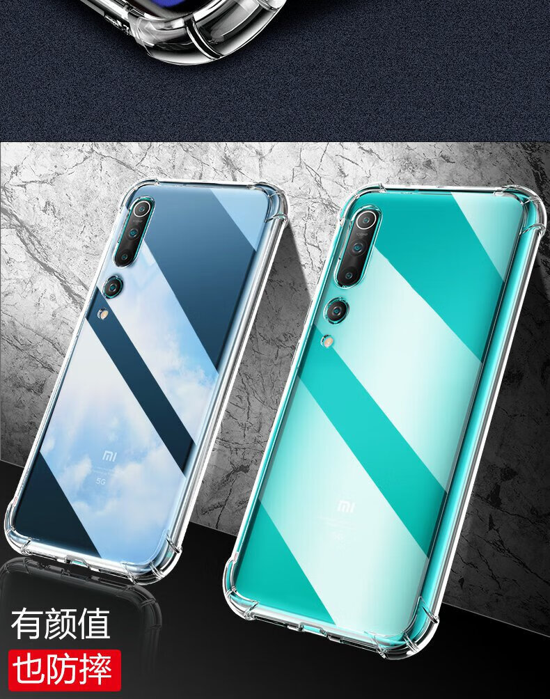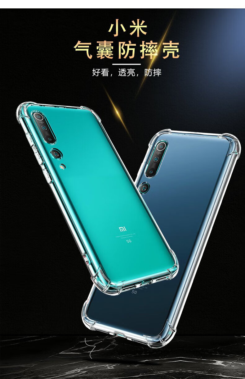 Dust card suitable for Xiaomi 10 mobile phone case Mi10 all-inclusive lens soft shell 5G new airbag anti-fall shell transparent silicone protective cover ultra-thin curved screen explosion-proof simple men and women mobile phone case newly upgraded protective lens four-corner airbag silicone soft shell