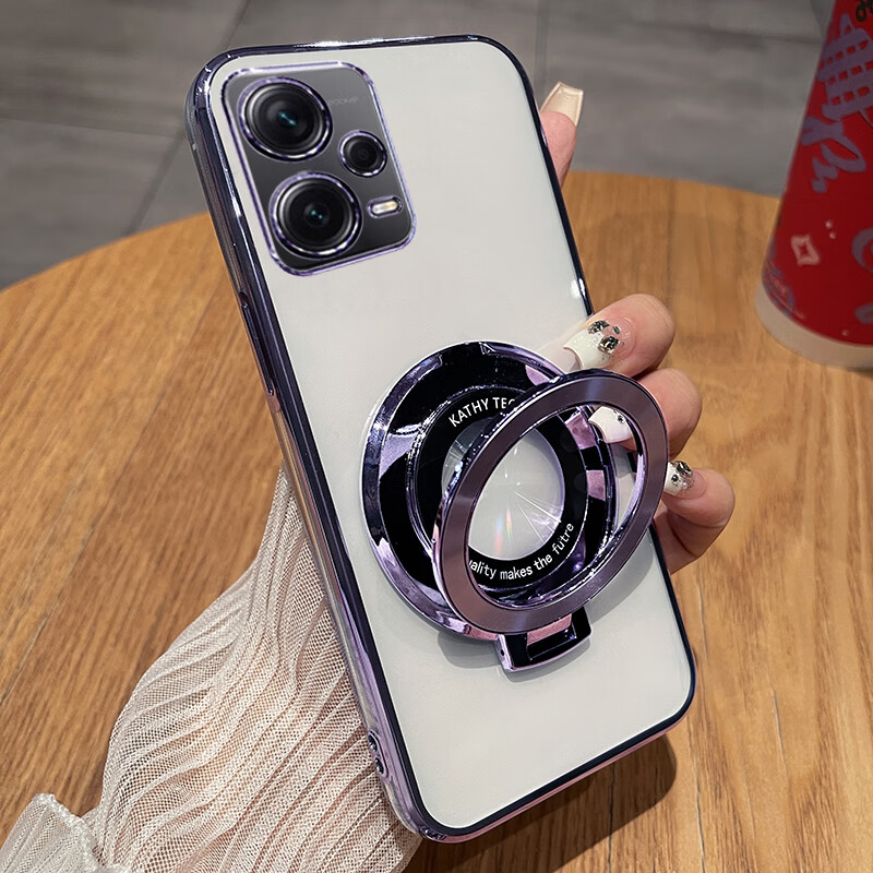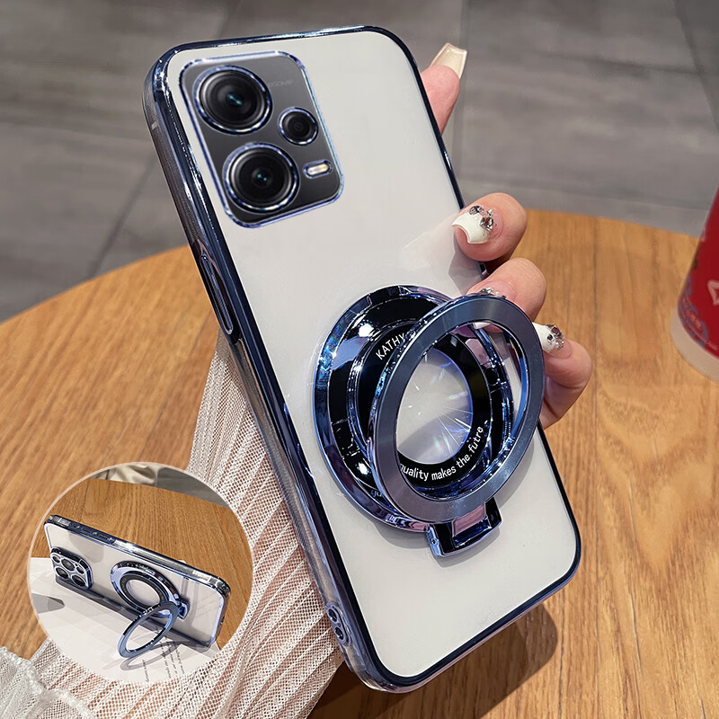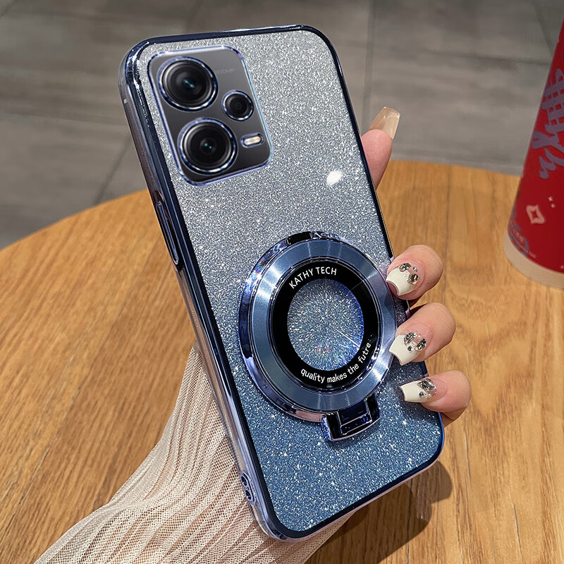 Wonderful choice Redmi note12 mobile phone case Xiaomi noto12pro ten protection 5G silicone case all-inclusive anti-fall por transparent soft case note14pro new redminote13 men and women glitter powder-Yuanfeng blue transparent electroplating free full screen steel film + bracket Redmi Note 12 Pro
