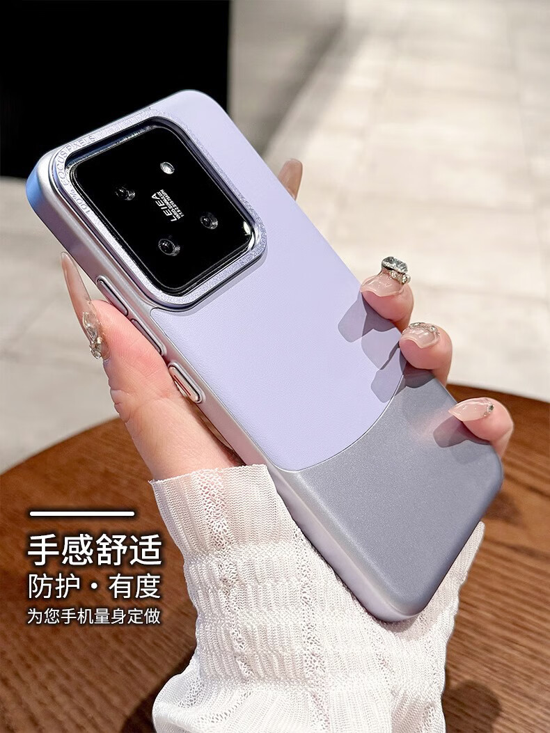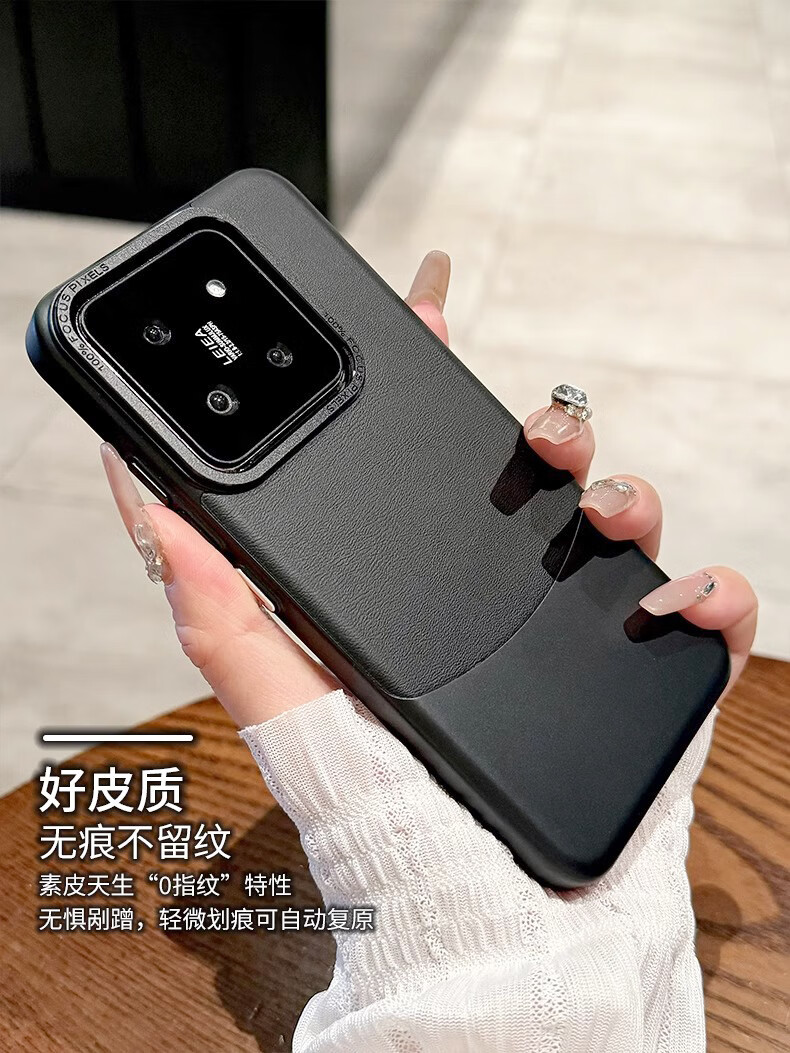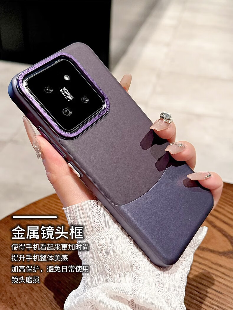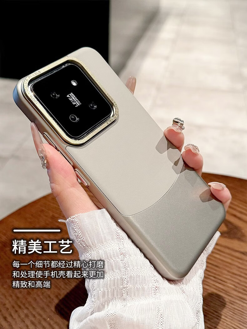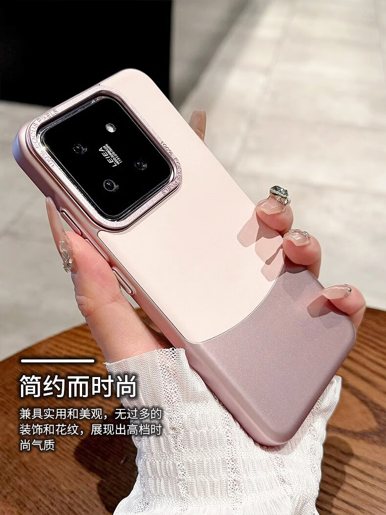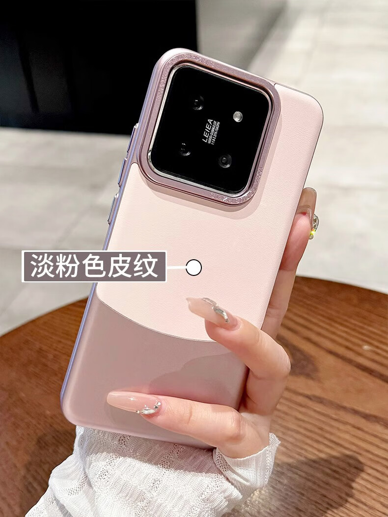 Qianxu suitable for Xiaomi 15 mobile phone case, new high-end leather Xiaomi 15Pro premium sense niche 14pro lens all-inclusive anti-fall light luxury hard shell 14 protective cover Sakura pink steel code frame-electroplated plain leather stitching Xiaomi 14