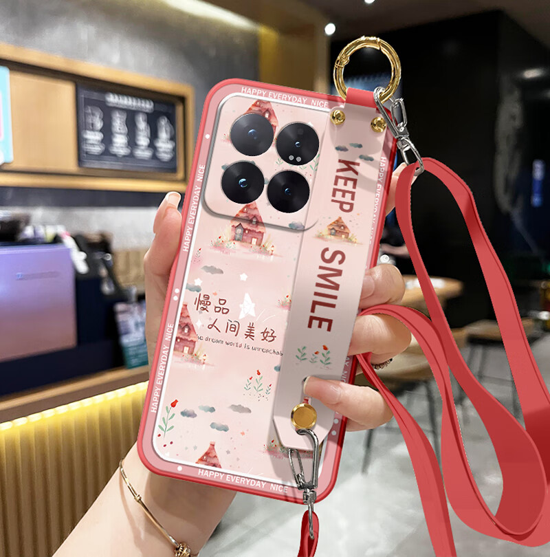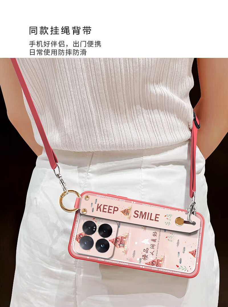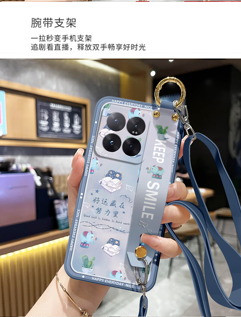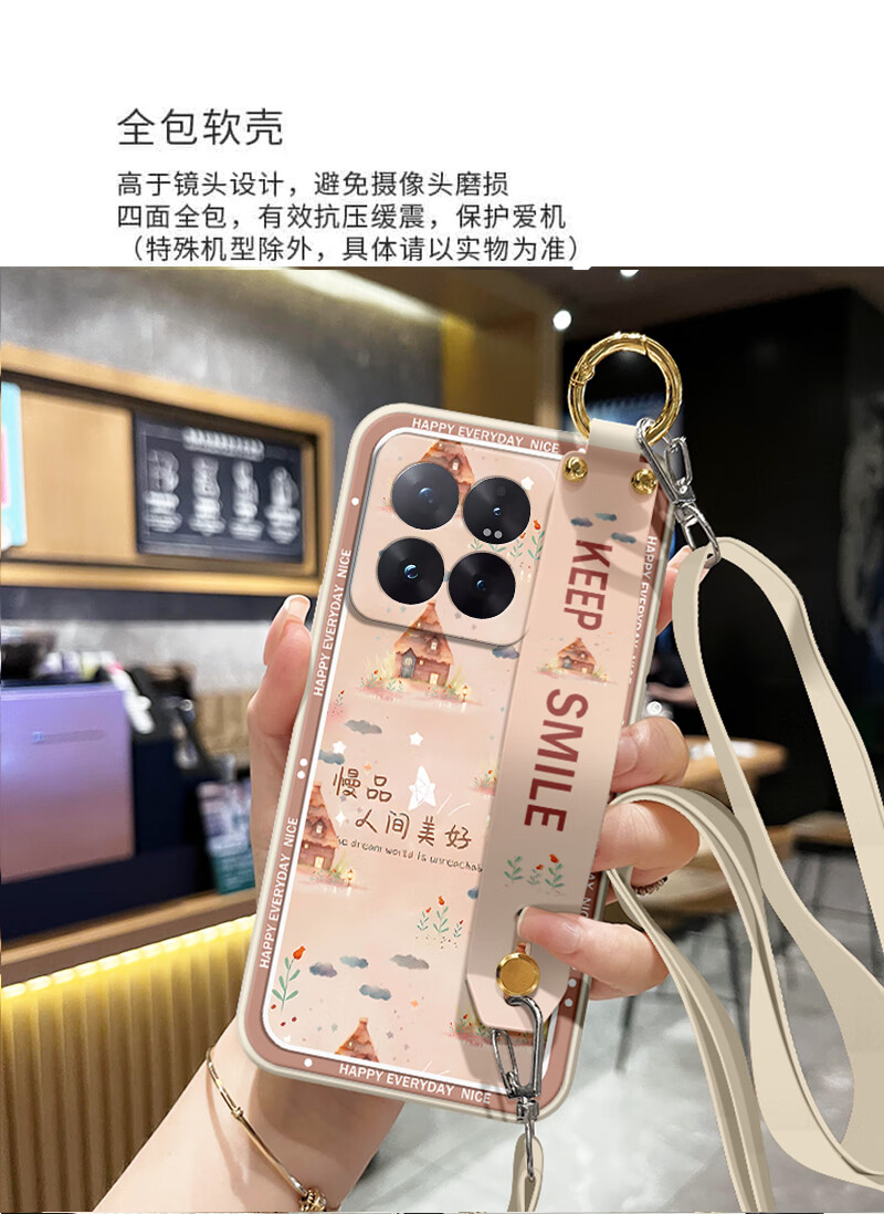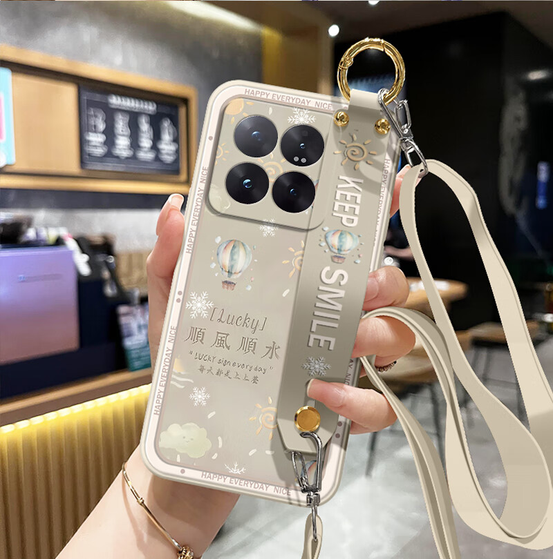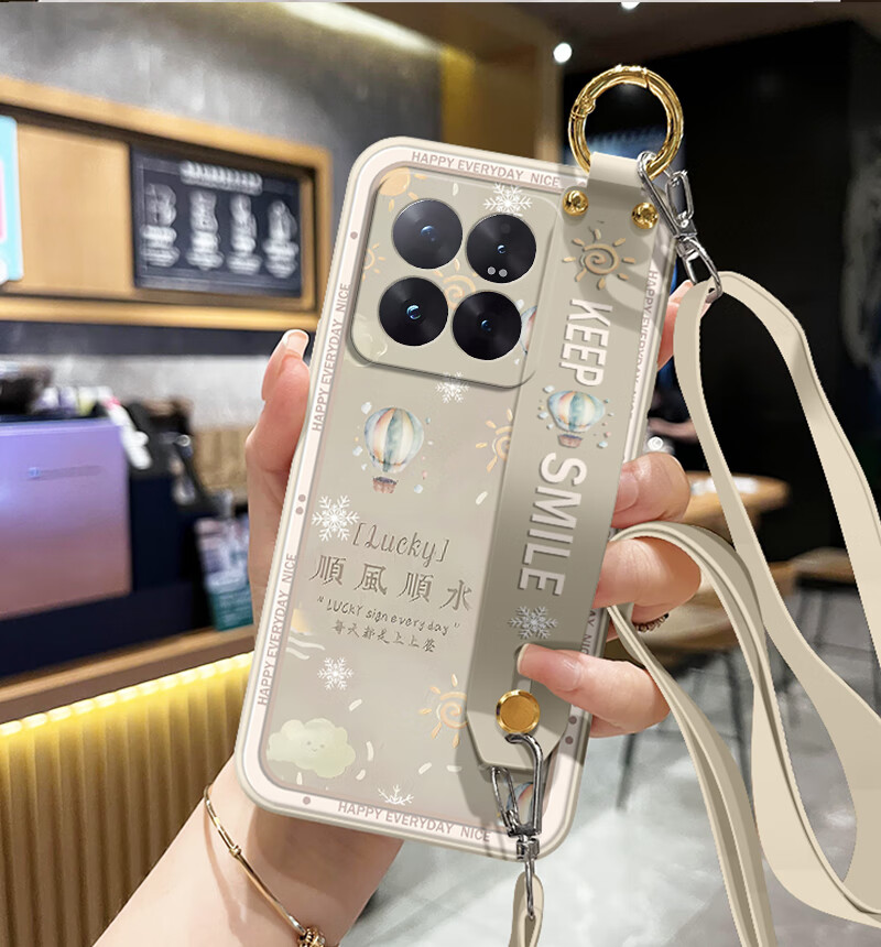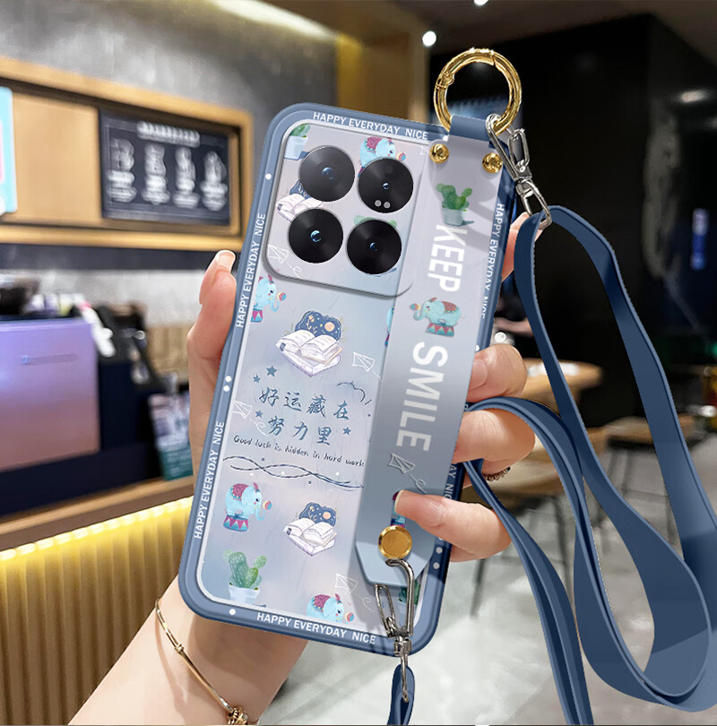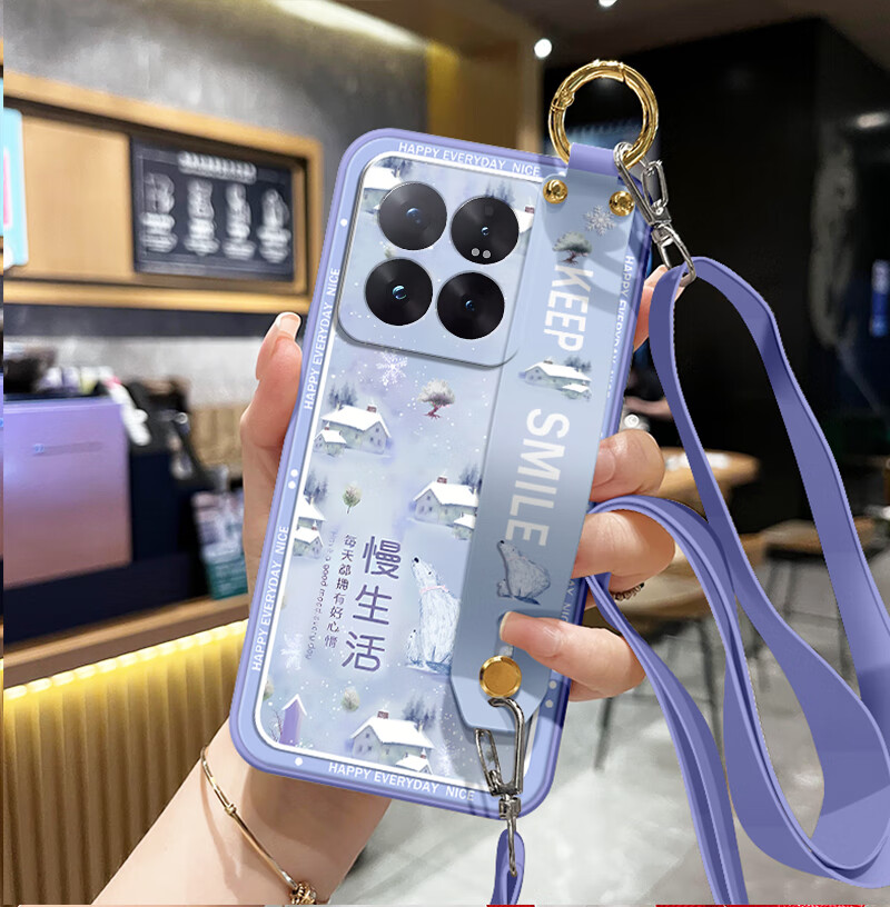 Granner is suitable for Xiaomi Mi 14 mobile phone case MI14Pro high-looking silicone soft shell women's new simple lens all-inclusive creative anti-fall protective cover wrist strap stand lanyard can be worn cross-body Lilac Purple-Slow Life Blue Free strap for Xiaomi 14