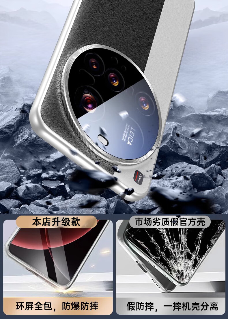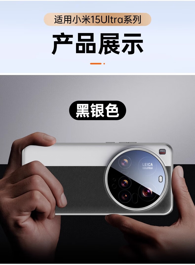 Yibu Kuandeng is suitable for Xiaomi 15ultra mobile phone case, new lens full package, genuine leather texture, anti-fall silicone soft edge, new ultra-thin heat dissipation matte anti-fingerprint soft shell for men and women, classic black silver, full lens package - metal lens ring, Xiaomi 15ultra