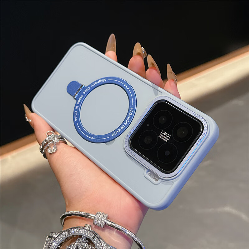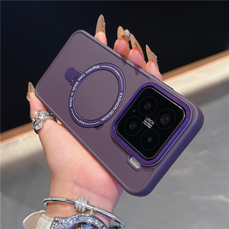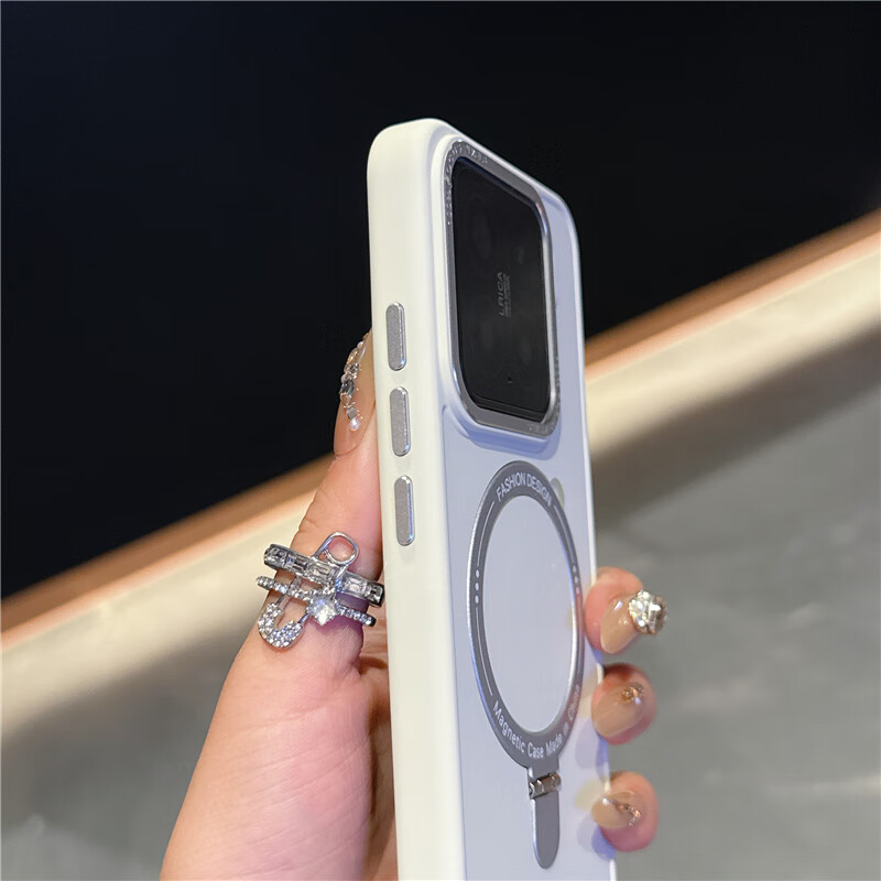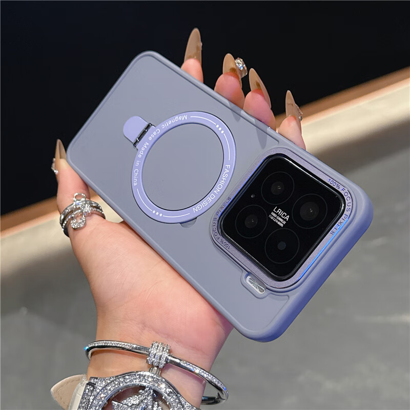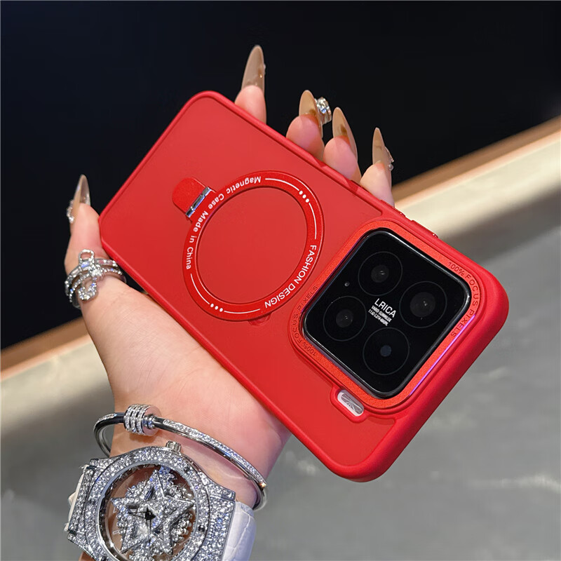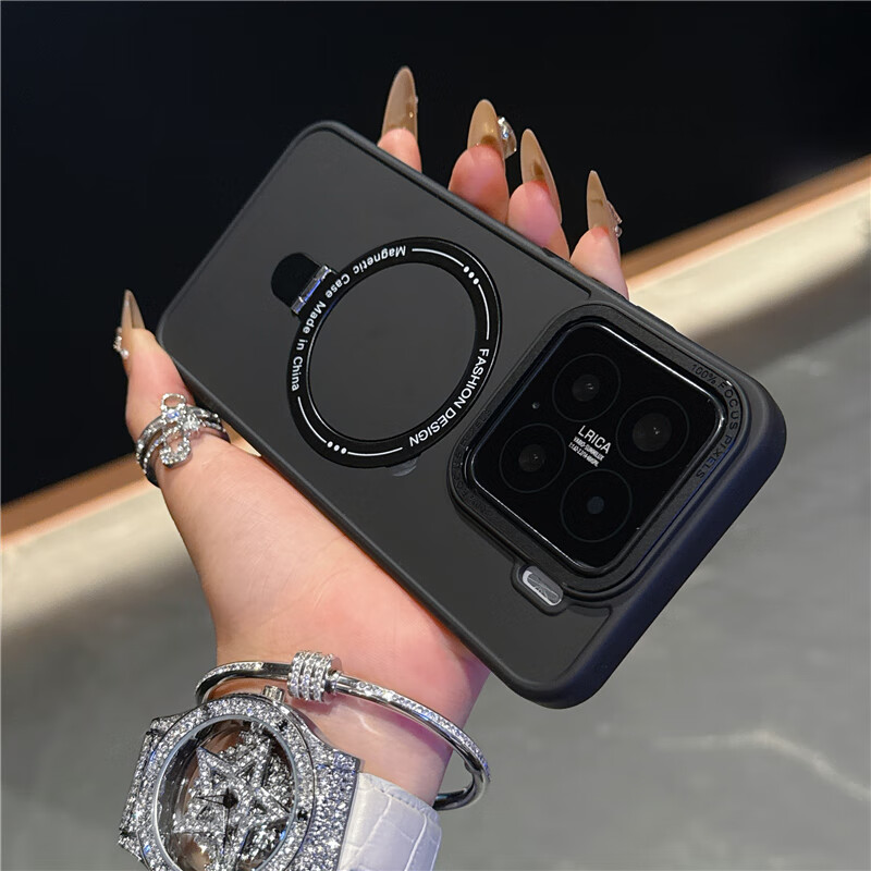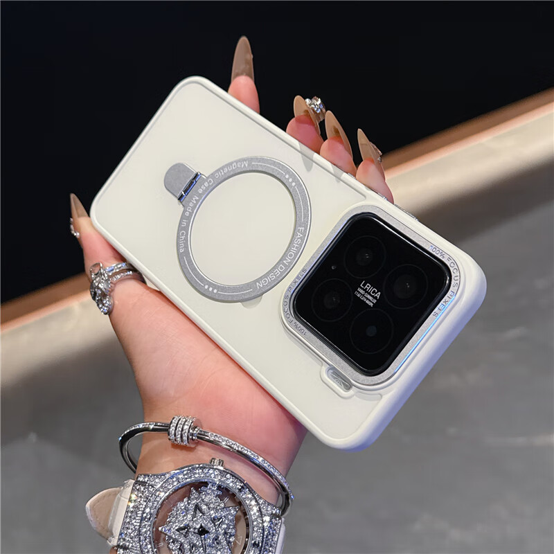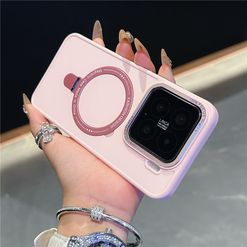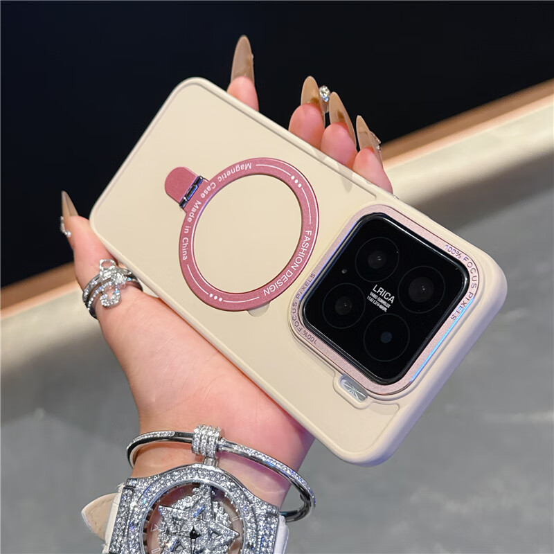 Pinaiyou is suitable for Xiaomi 14 mobile phone case, simple solid color magnetic charging stand, xiaomi15pro skin-feeling silicone anti-protective cover, 13por metal frame hard shell for men and women, new style, milk tea color, Xiaomi 15