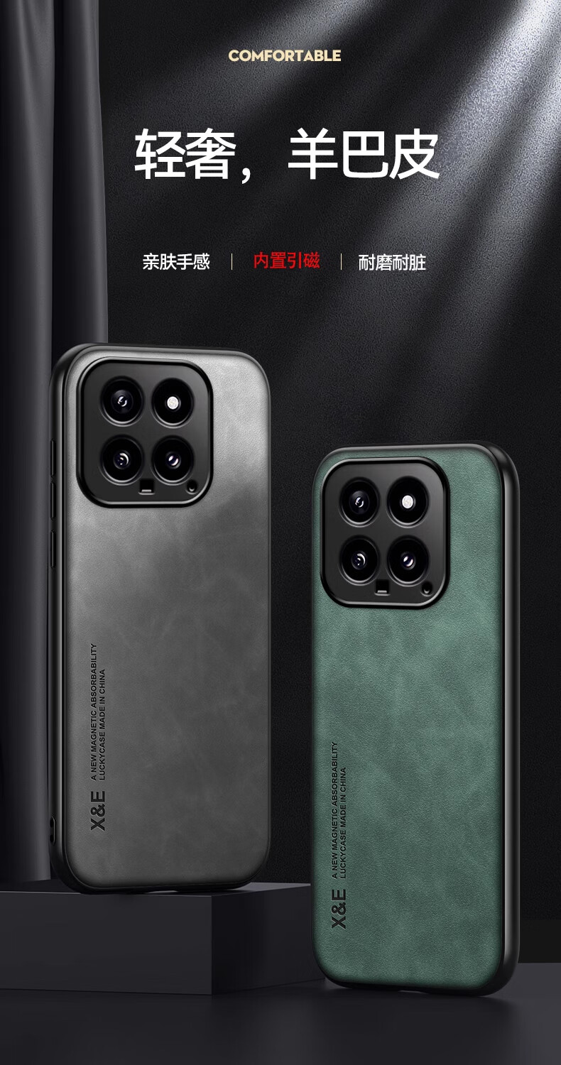 Xiaomi/Redmi series mobile phone cases, high-end sheepskin leather, high-end protective cover for men and women, lens, all-inclusive anti-fall silicone car magnetic case, business black, light luxury lambskin, all-inclusive anti-fall, Xiaomi 15