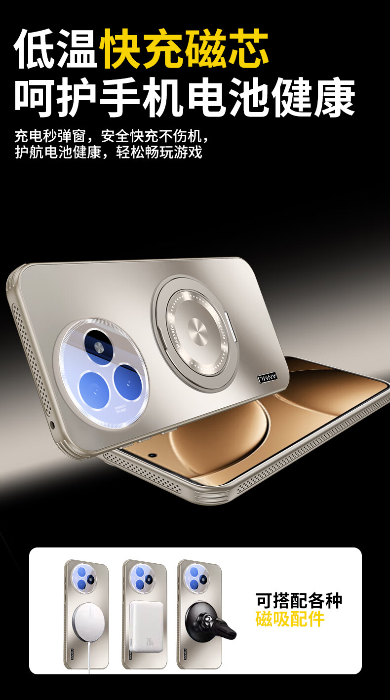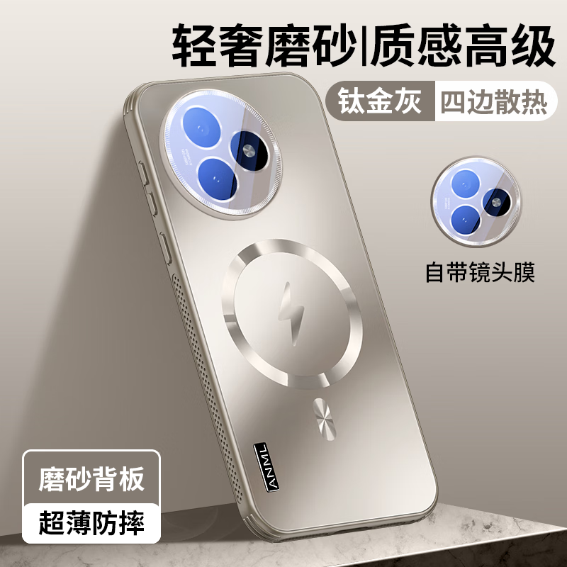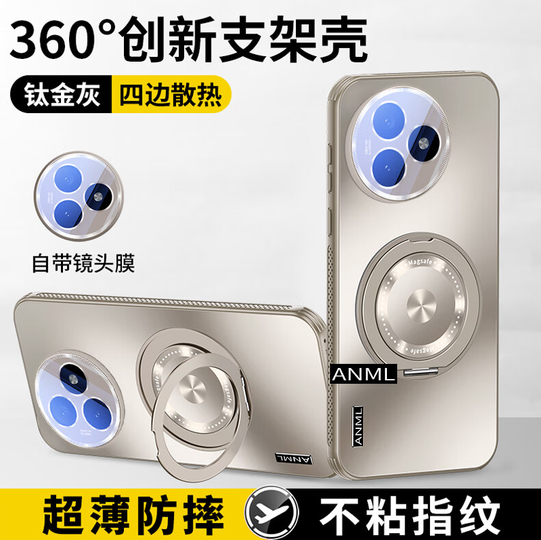 Anmu is suitable for Redmi K80 Extreme Edition mobile phone case holder frosted redmik80pro protective cover metal lens all-inclusive anti-fall ultra-thin boys and ladies Xiaomi shell heat dissipation stand type titanium original color with lens film anti-fall all-inclusive + four-sided heat dissipation Redmi K80 Extreme Edition