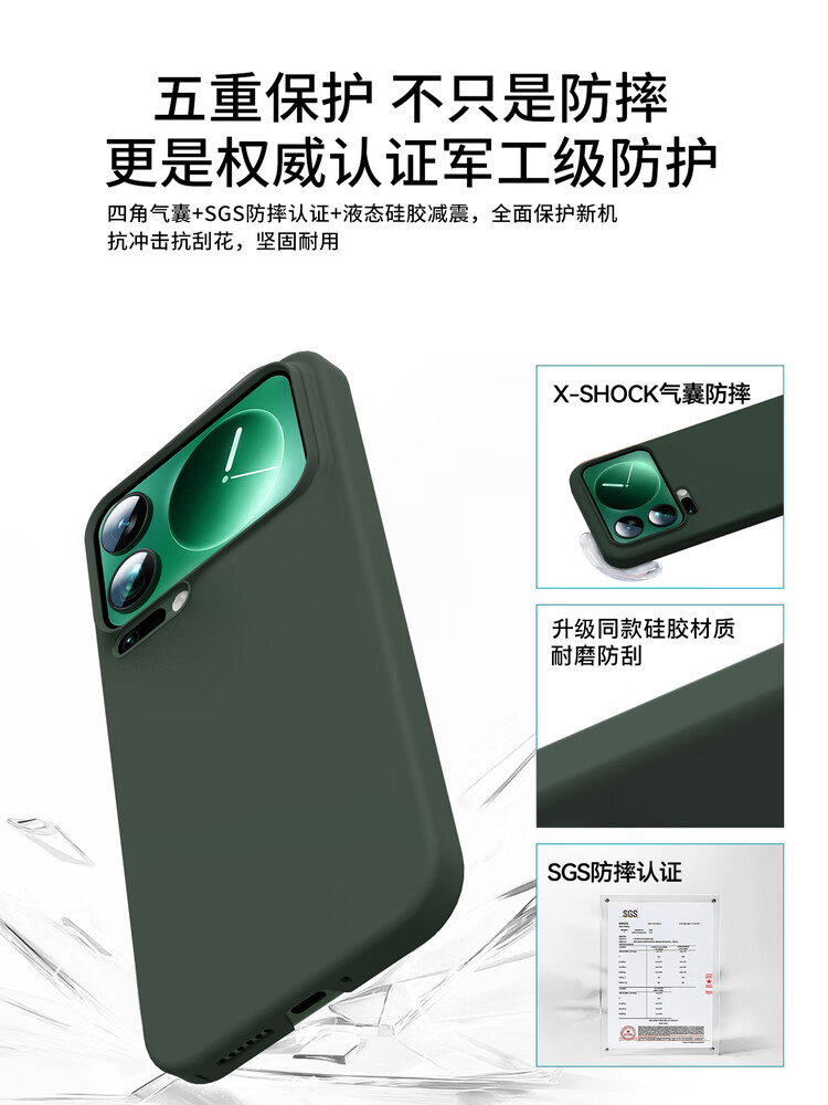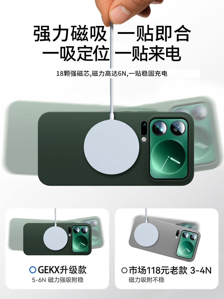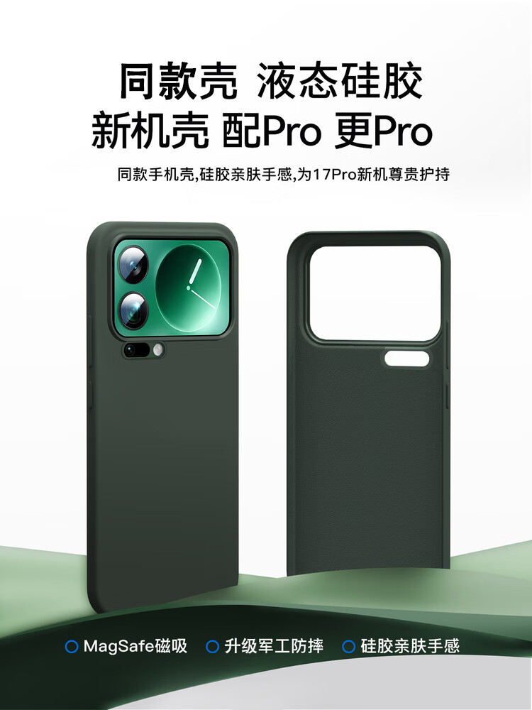 GEKX same liquid type suitable for Xiaomi 17 Pro Max mobile phone case xiaomi 17 pro liquid silicone protective cover air bag anti-fall 17 protective case magnetic suction ultra-thin simple female wilderness green same type liquid form | magnetic charging | skin-friendly feel Xiaomi 17 Pro