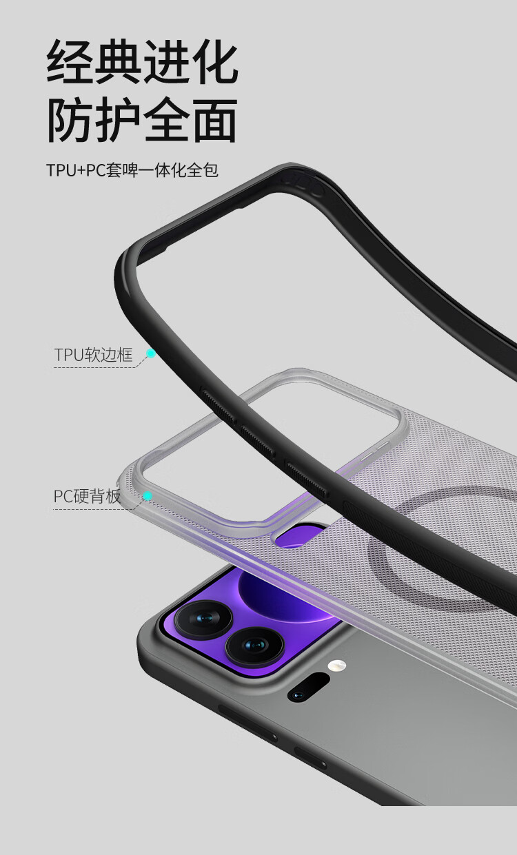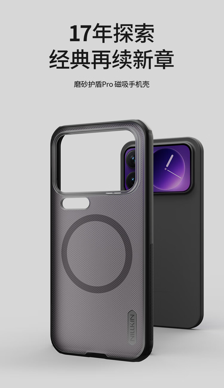 Nelkin does not block wide angle, Xiaomi 17/17Pro/17promax mobile phone case, magnetic all-inclusive, frosted, anti-fingerprint, anti-slip, anti-fall protection case, simple and thin, Shield Pro, transparent black, magnetic version, Xiaomi 17 Pro Max