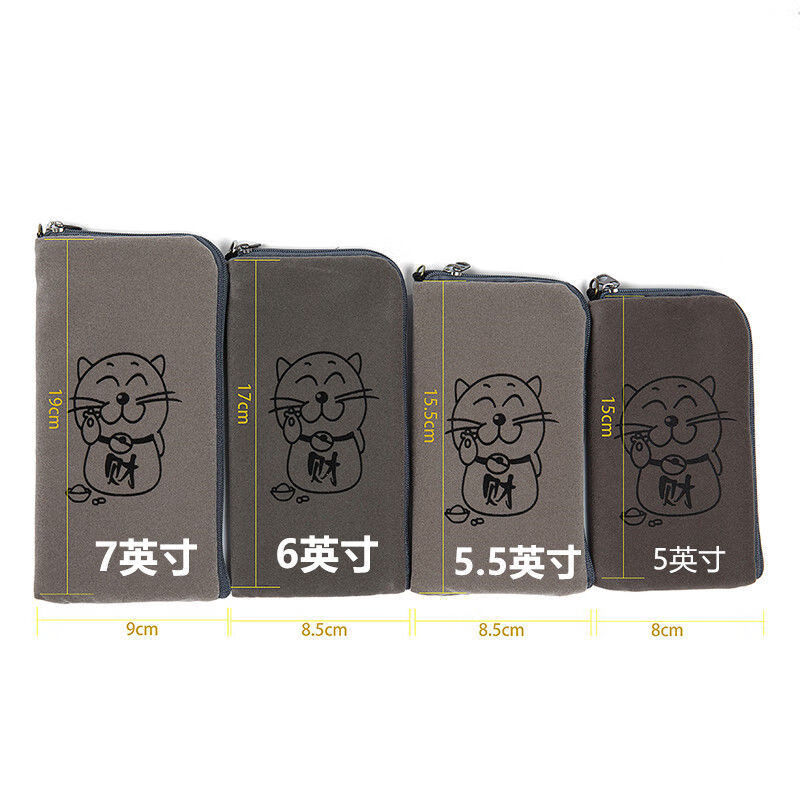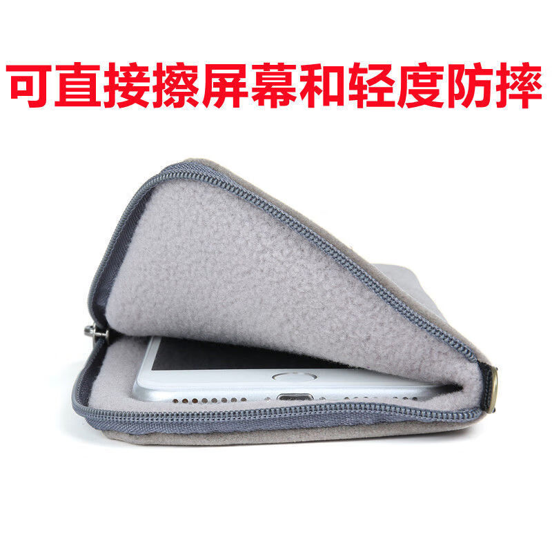 Beiyipin's new anti-fall and dust-proof mobile phone bag, small cloth bag for carrying thickened zipper hanging neck mobile phone set, black, 2 pieces, 7 inches