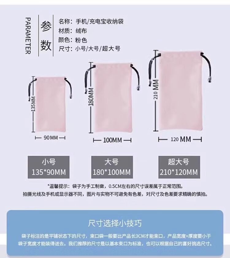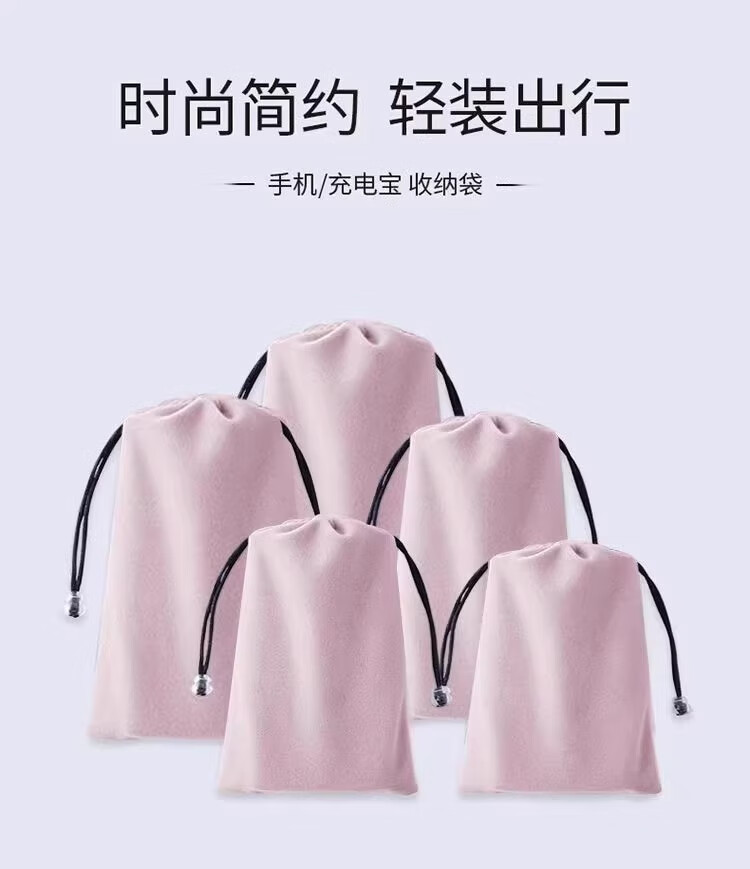 Mobile phone protective cover velvet bag small items storage bag portable bag drawstring makeup brush power bank protective cover velvet bag velvet storage bag gray medium size 180*100mm