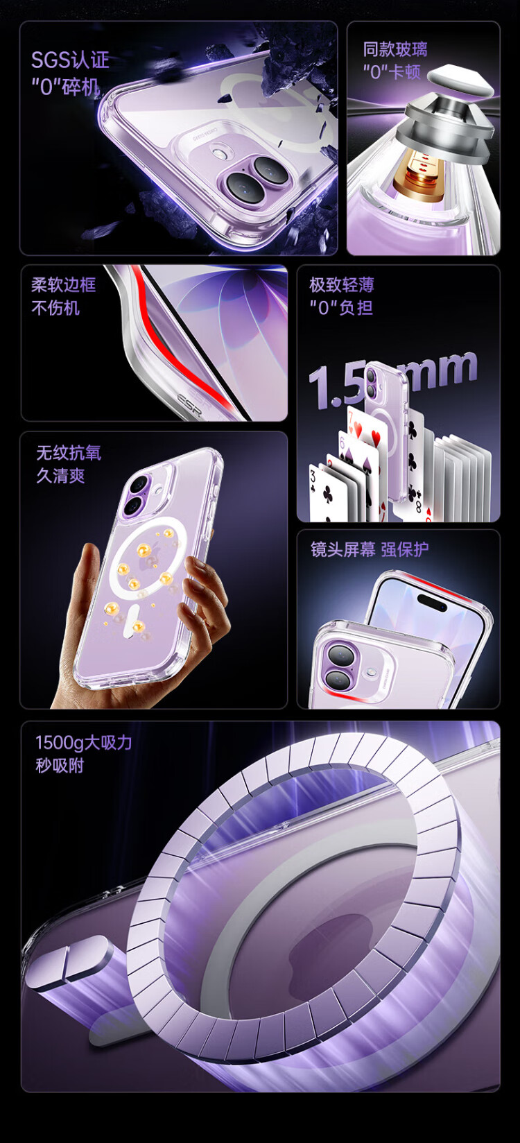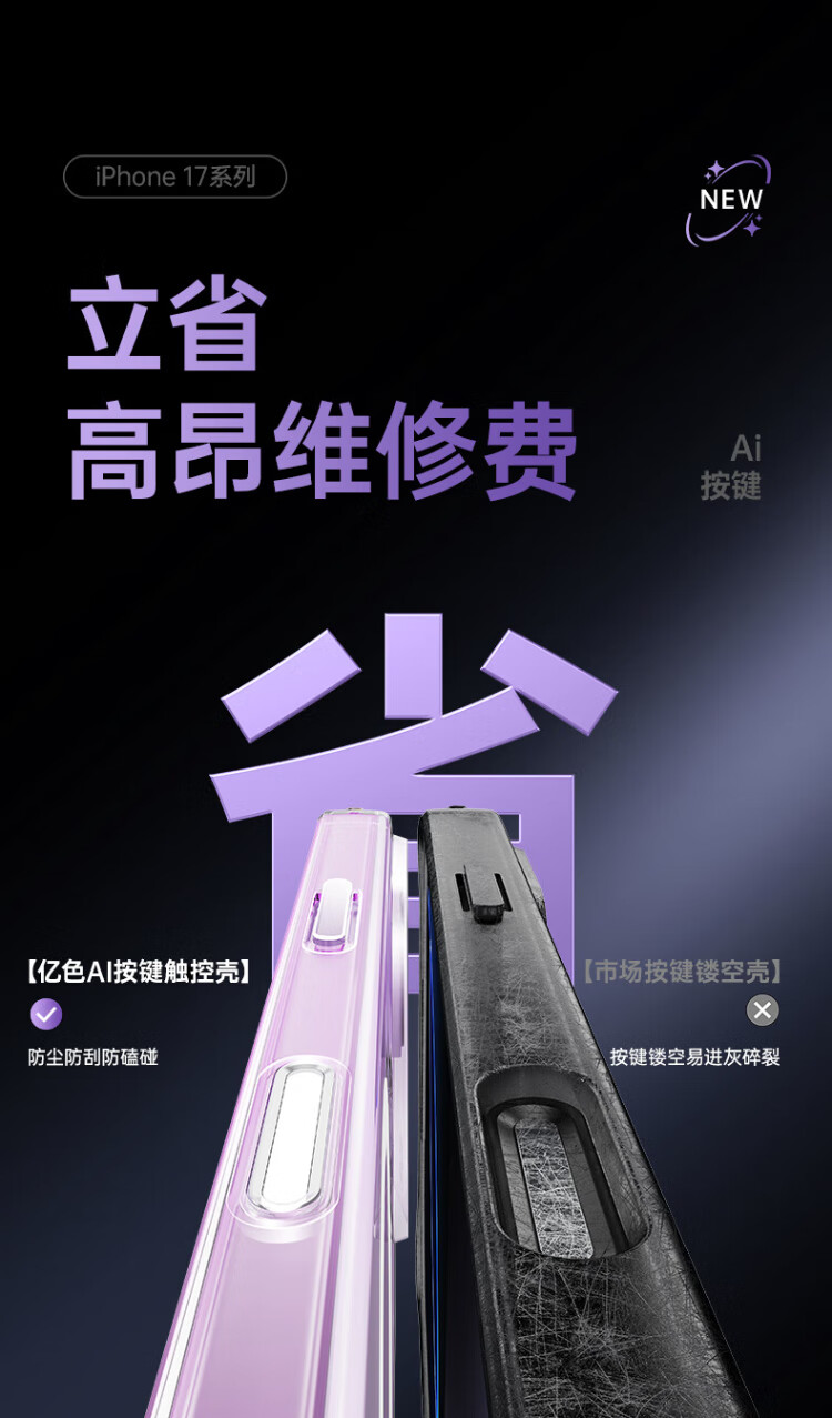 Eise (ESR) Ai button all-inclusive suitable for iPhone17 mobile phone case Apple 17 protective cover transparent silicone soft shell ultra-thin magnetic lens protective air bag anti-fall new shell anti-fingerprint