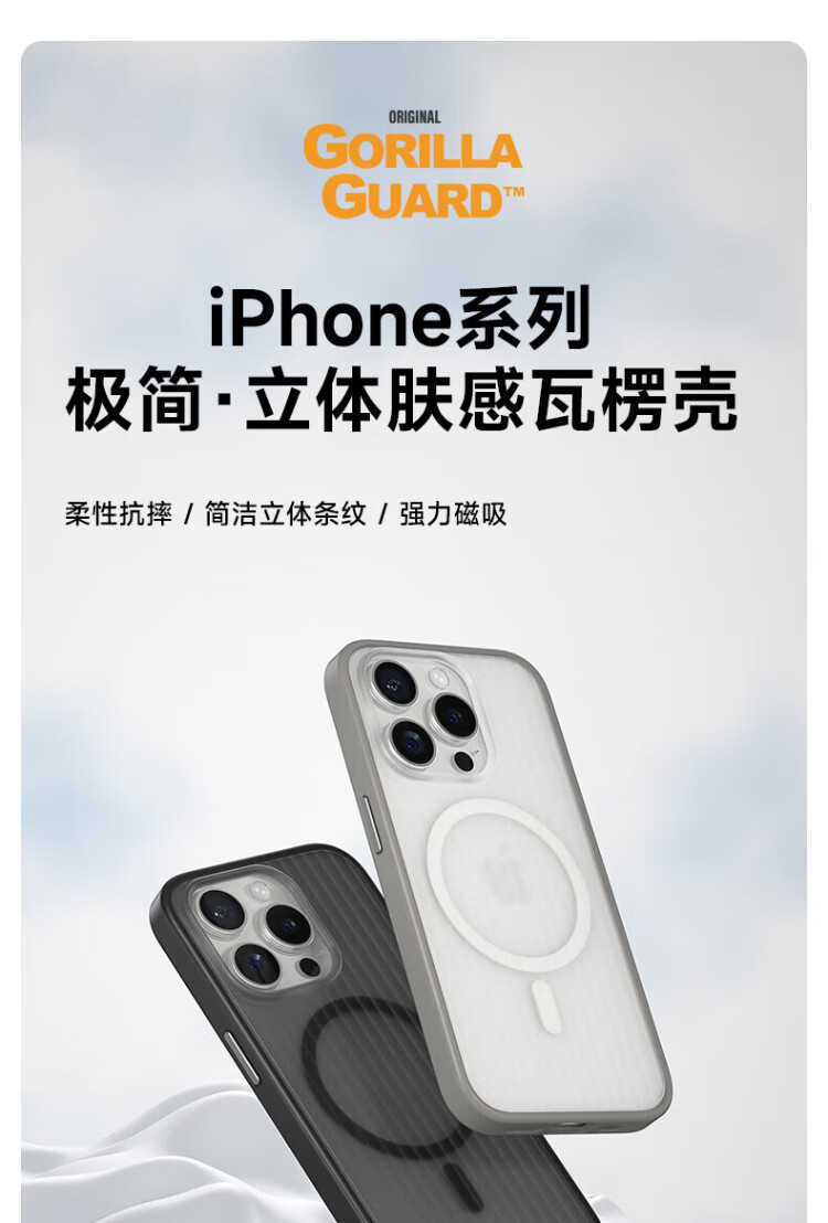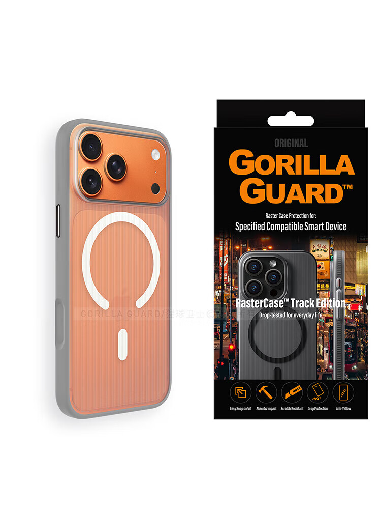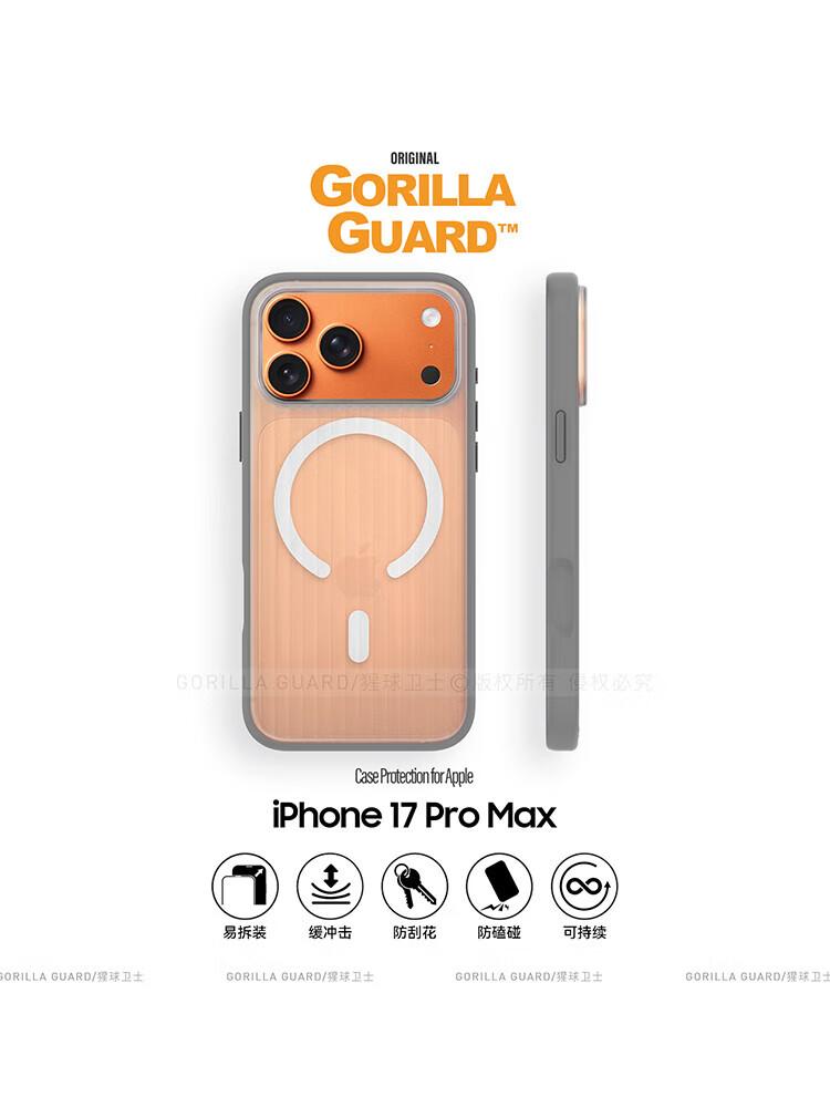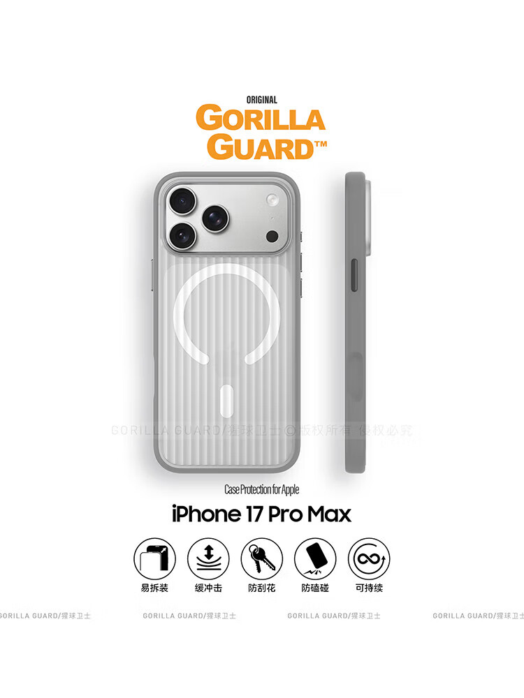 Planet of the Apes Guardian MagSafe grating tempered for Apple 17ProMax magnetic mobile phone case iPhone17ProMax protective cover matte corrugated suitcase striped anti-fall shell gray