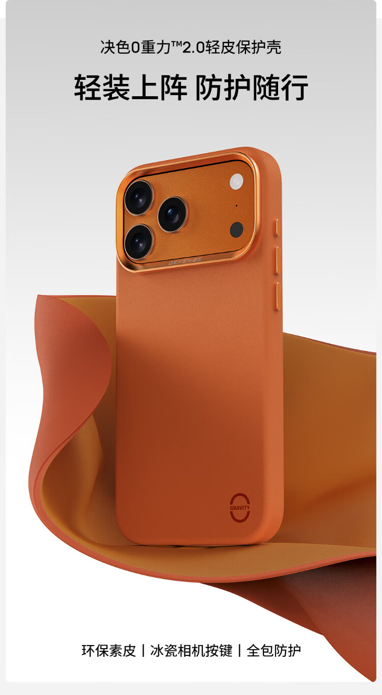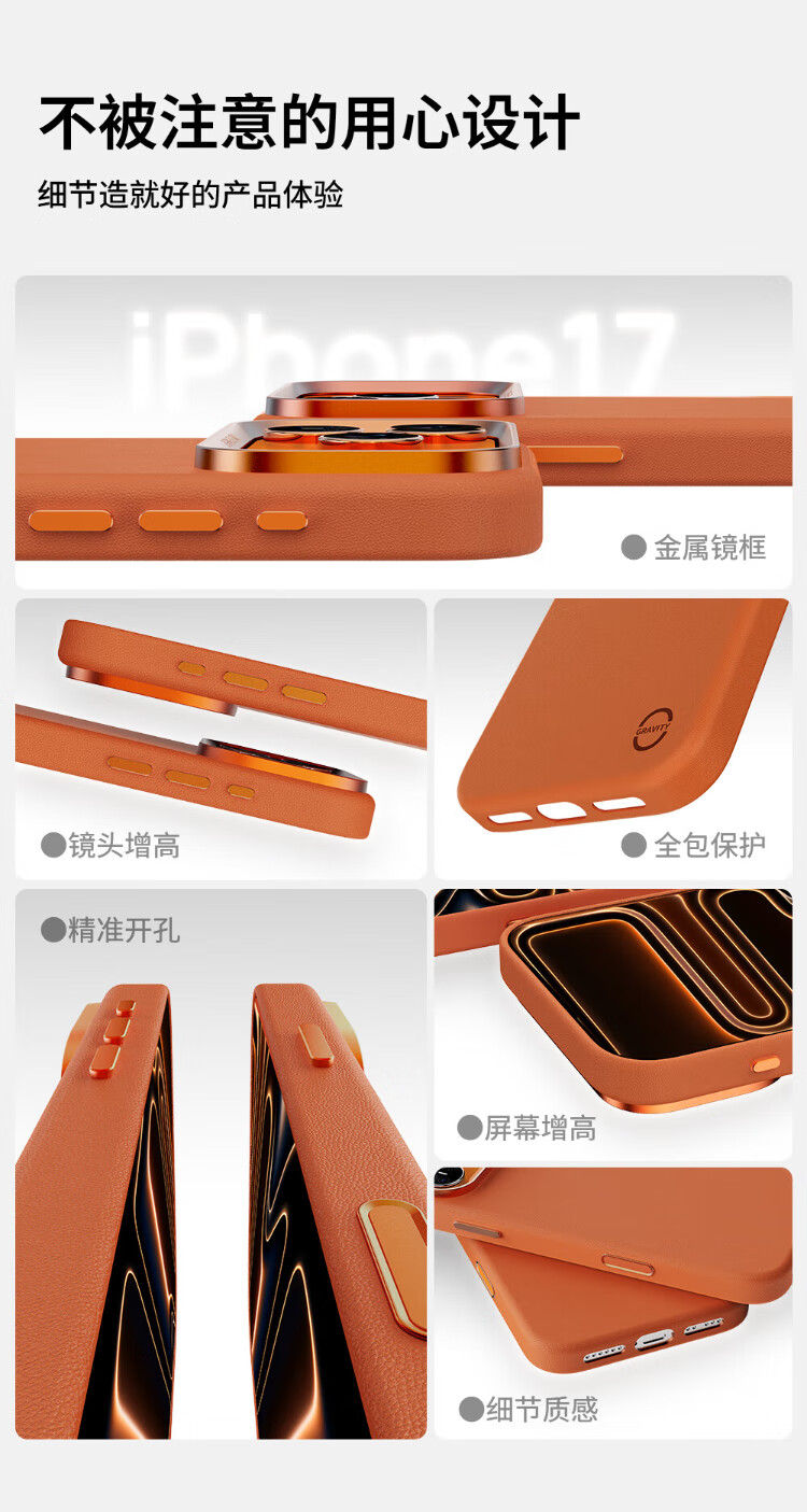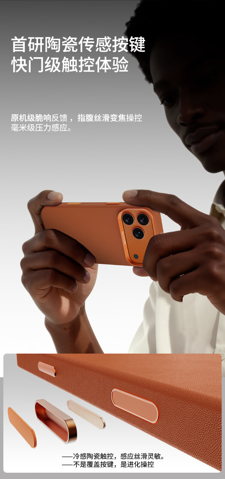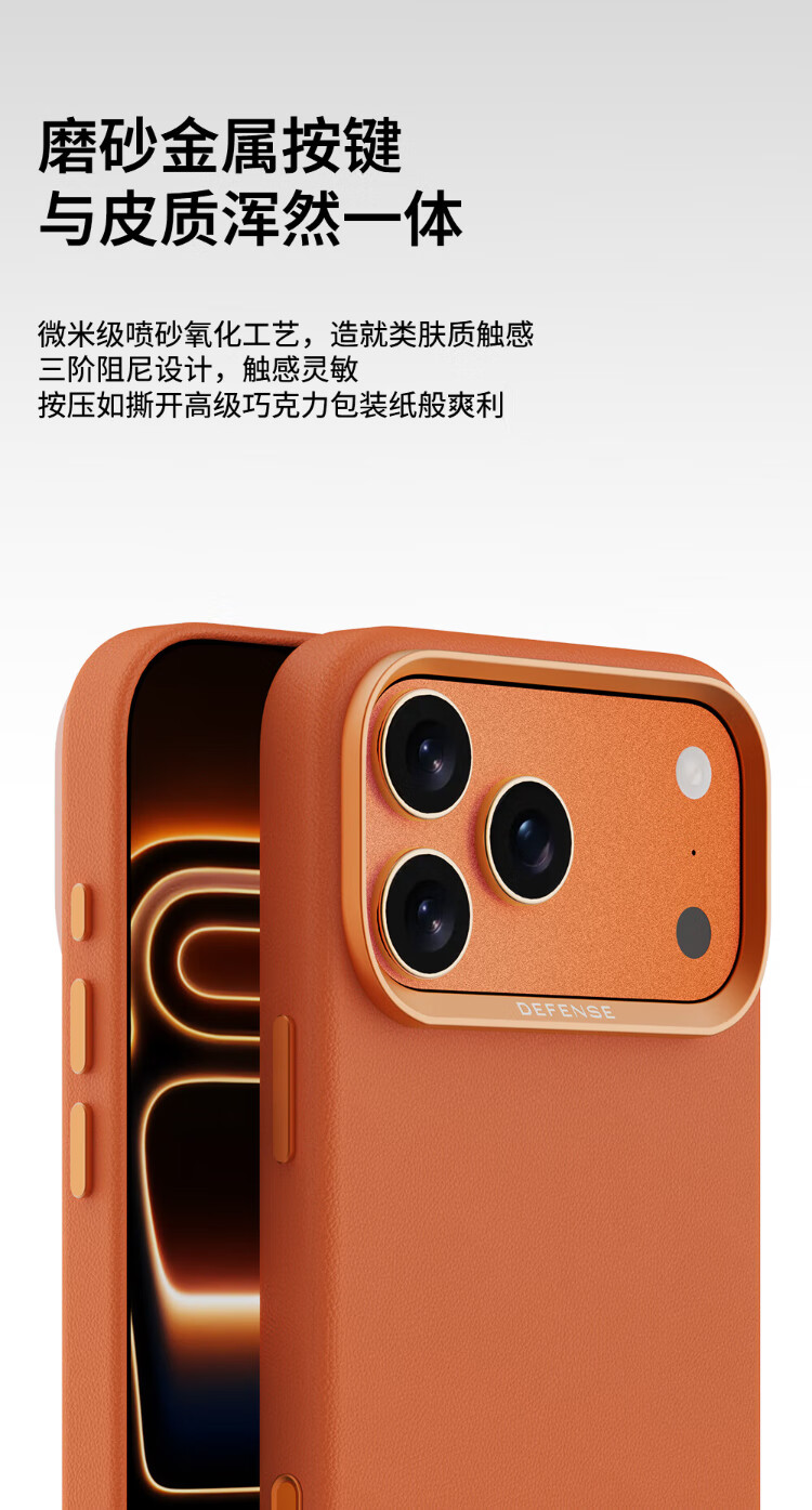 Decisive color cold porcelain camera button, suitable for Apple 17promax mobile phone case, leather, thin, anti-fall, iPhone17promax protective case, magnetic suction, anti-hand sweat all-inclusive, Star Orange