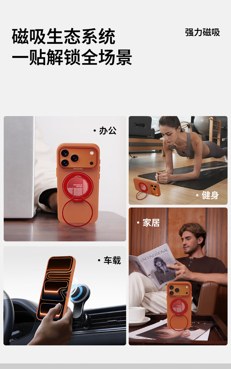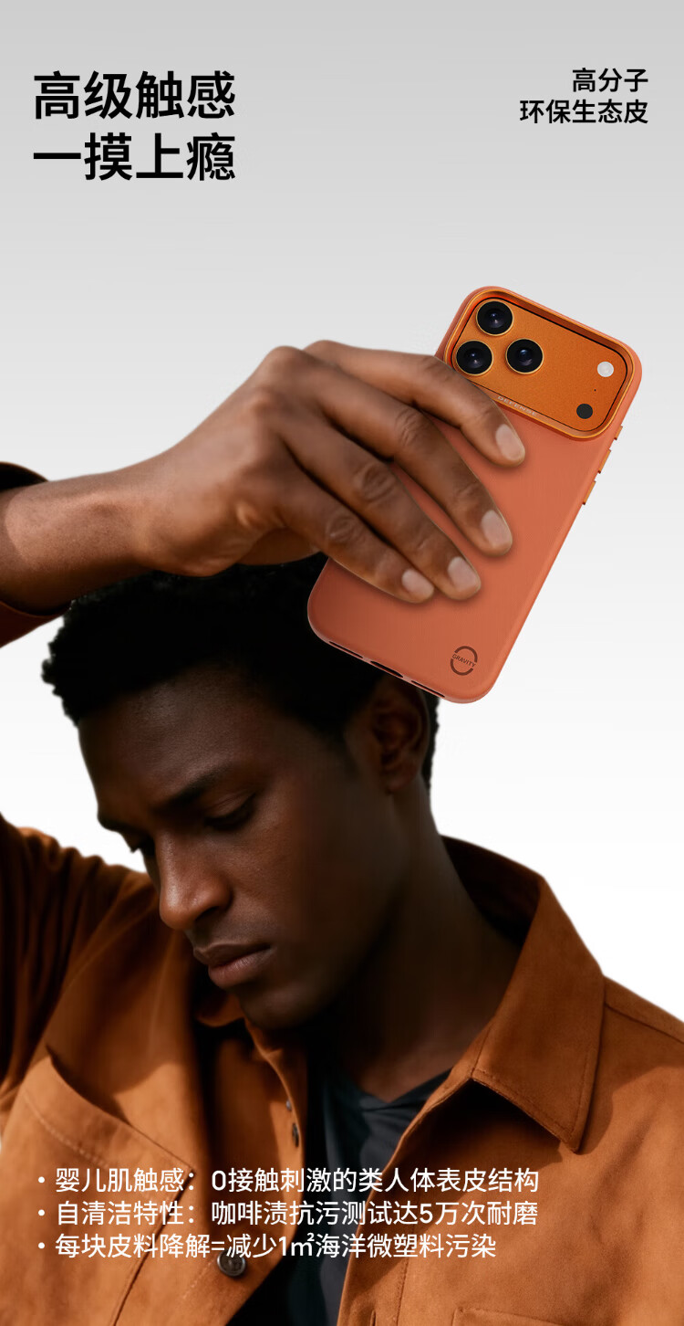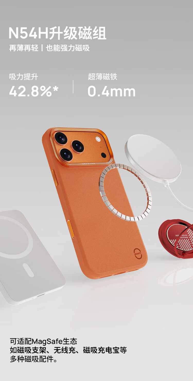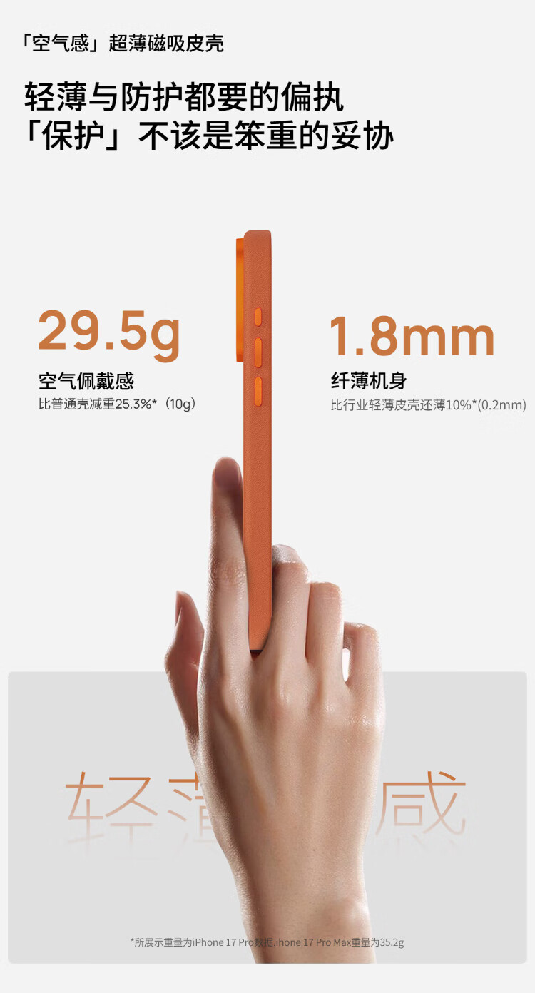 Decisive color cold porcelain camera button, suitable for Apple 17promax mobile phone case, leather, thin, anti-fall, iPhone17promax protective case, magnetic suction, anti-hand sweat all-inclusive, Star Orange