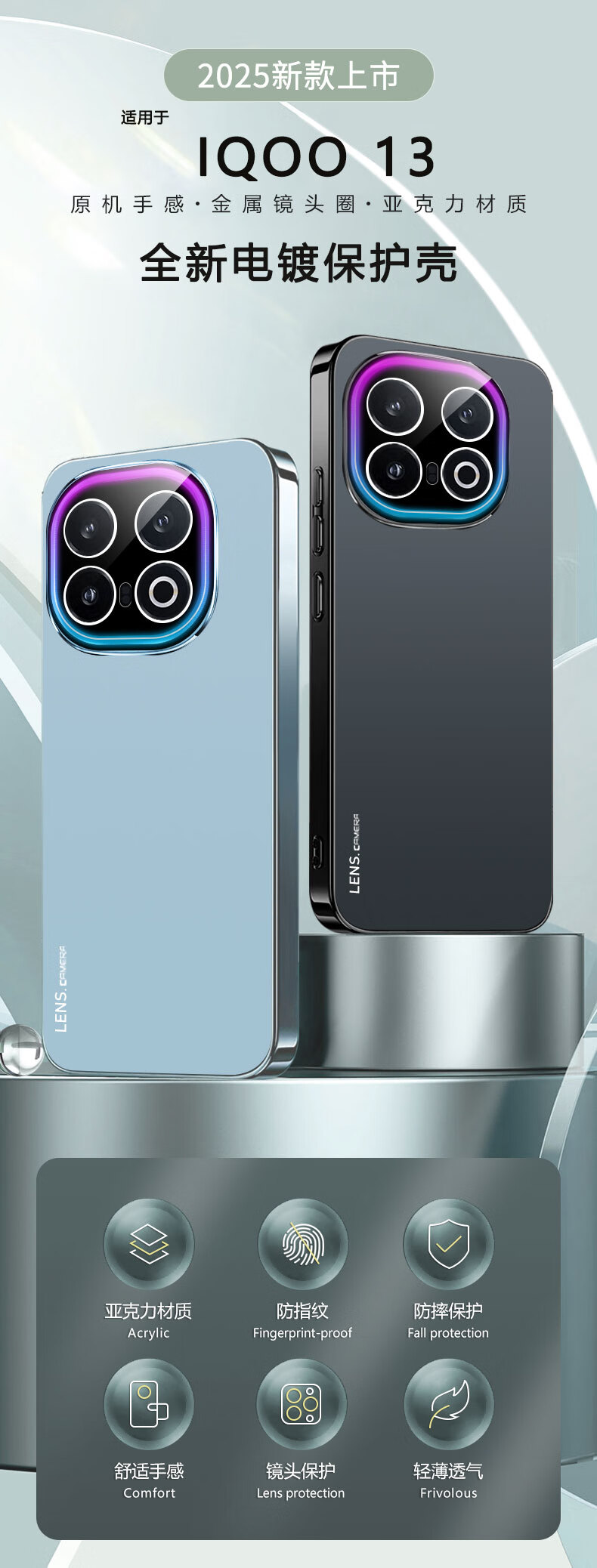 Bieber lens all-inclusive, suitable for iQOO13 not blocking the breathing light, mobile phone case, all-inclusive anti-fall protective cover, IQOO13 transparent 13-year-old new protective lens film for women and men, iQOO13 not blocking the breathing light, graphite black, skin-feel matte, comes with lens film all-inclusive