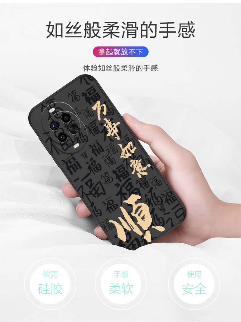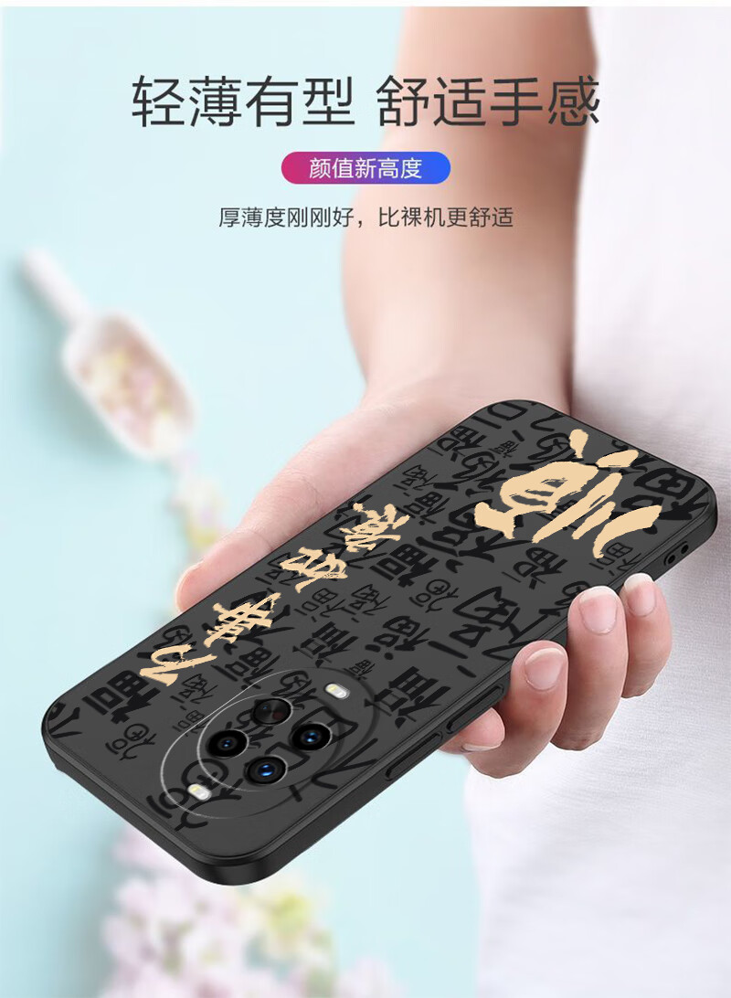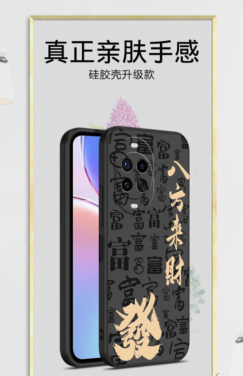 Ponca suitable for Huawei Nova14Pro mobile phone case Bafanglaicai MIA-AL00 new 5G liquid silicone lens all-inclusive wear-resistant anti-fall thin soft shell festive text protective cover graphite black-Bafanglaicai