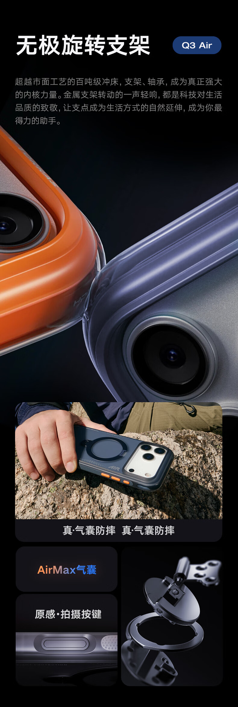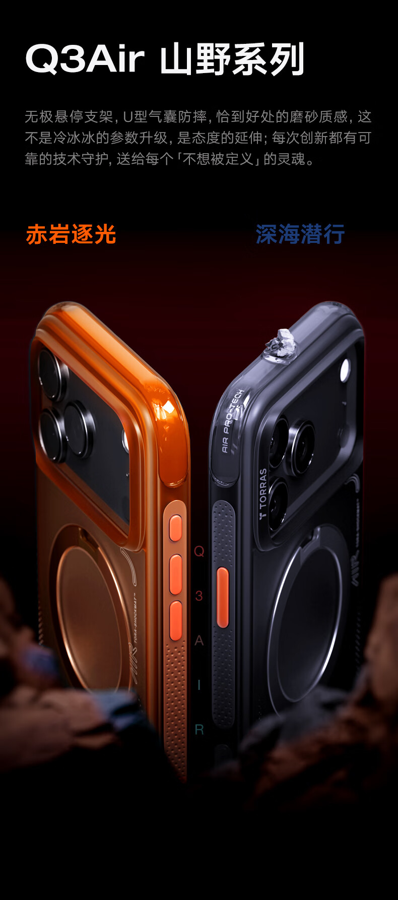 Tulas Fulcrum Shell Q3Air Professional 4-meter anti-fall airbag丨Photography grade bracket suitable for Apple 17promax mobile phone case iphone16pro magnetic 15 transparent matte red rock chasing light orange iPhone17ProMax