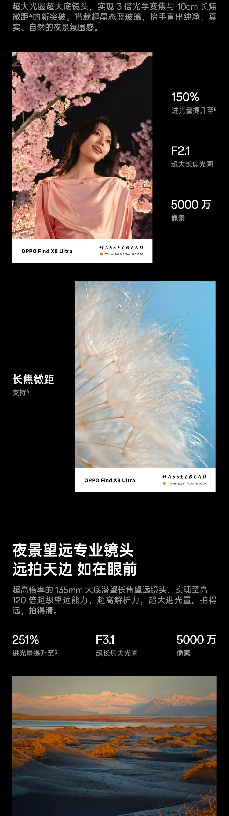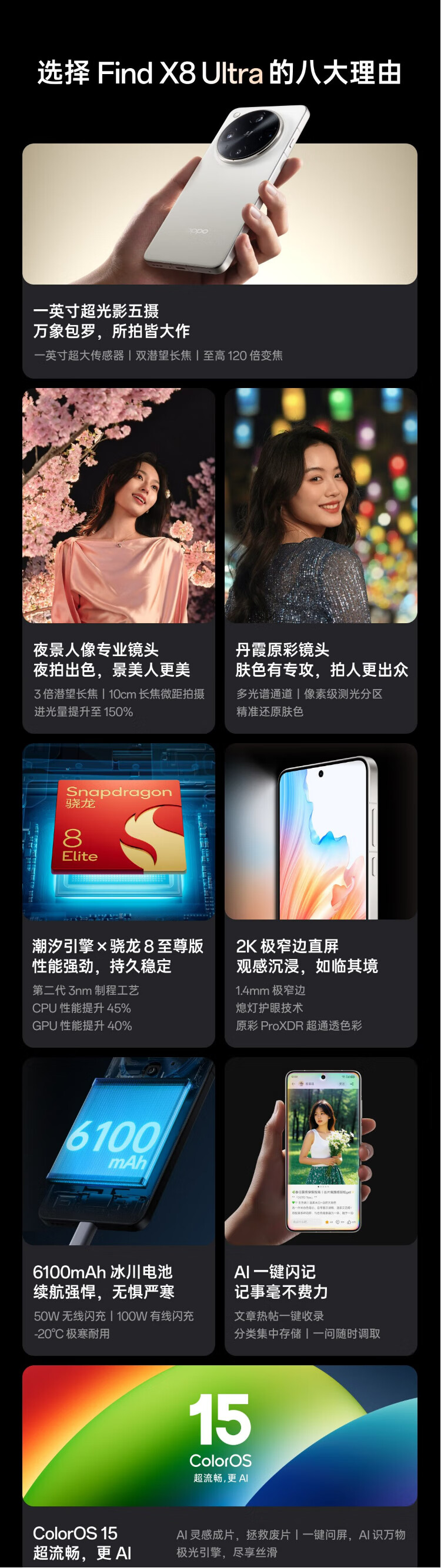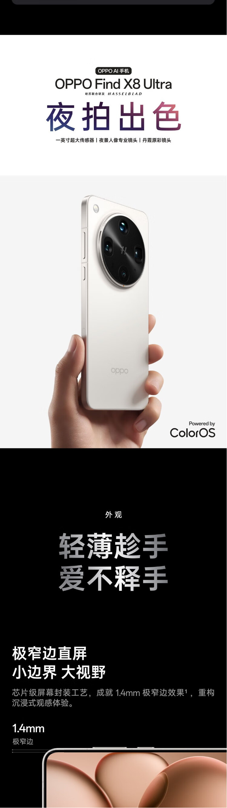 OPPO Find X8 Ultra Night Scene Portrait Professional Lens Danxia Original Color Lens Snapdragon 8 Extreme Edition 2K Extremely Narrow Straight Screen AI 5G Flagship Mobile Phone Moonlight White 16GB+512GB