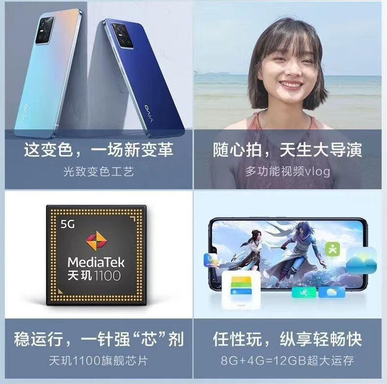 VivoS10 Full Netcom 5G Thin, Light, High Definition Photo, Beauty, High Battery Life, Smart Backup for Elderly Students, Second Mobile Phone, Large Screen, Big Battery, Dimensity 1100 Large Memory, S10e Black, 8GB+256GB 5G Full Netcom_8GB