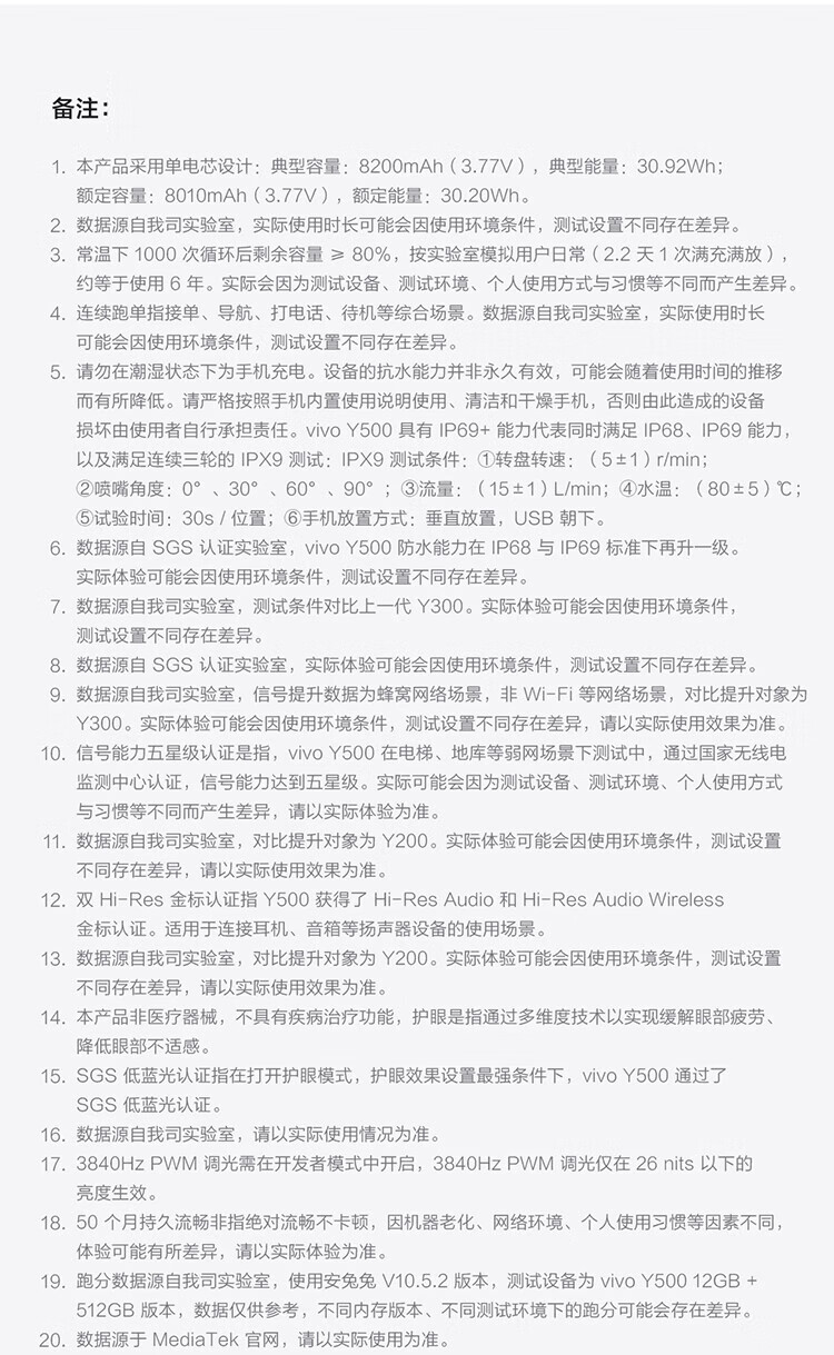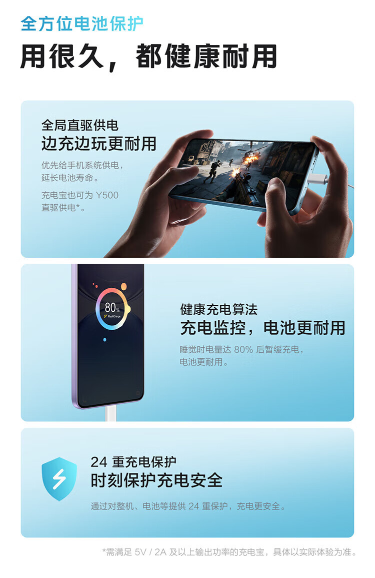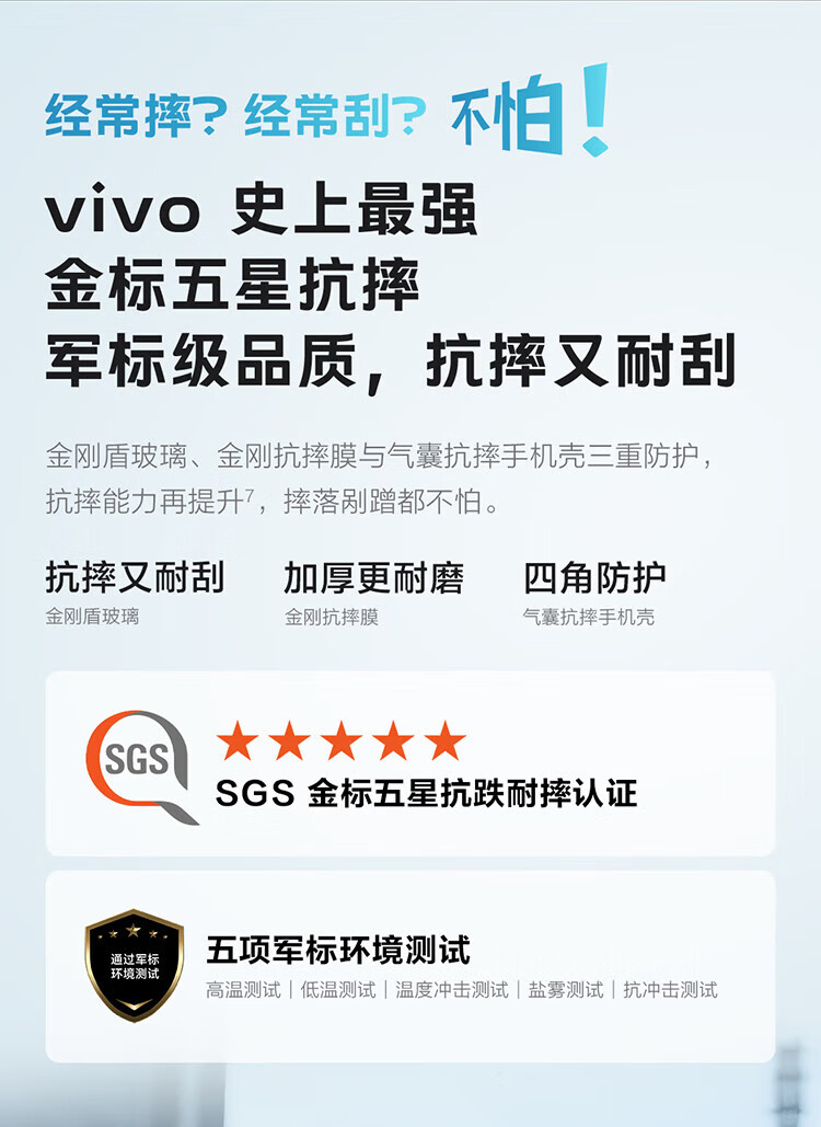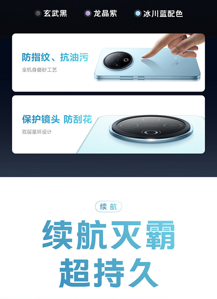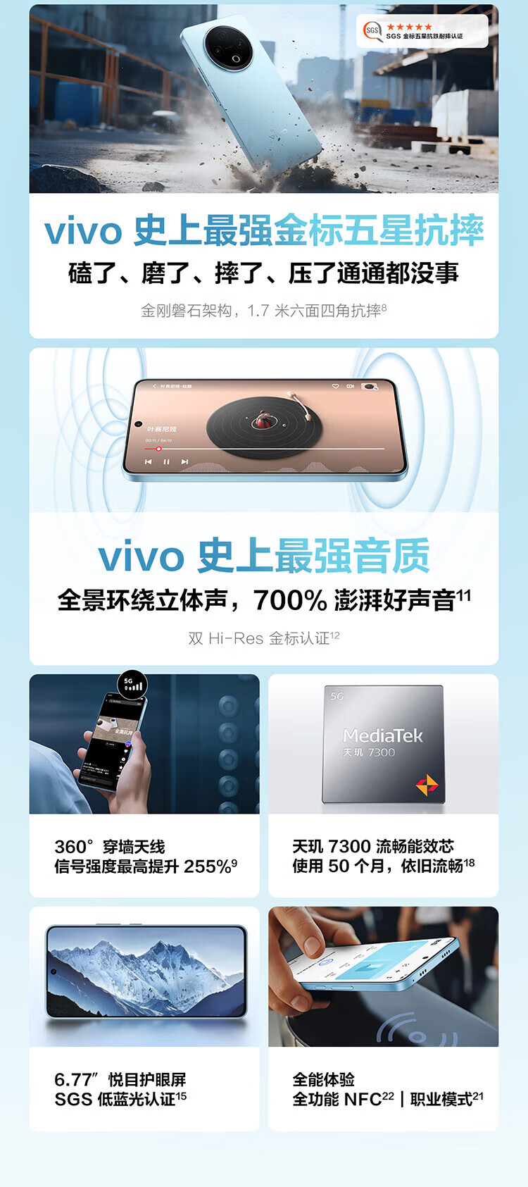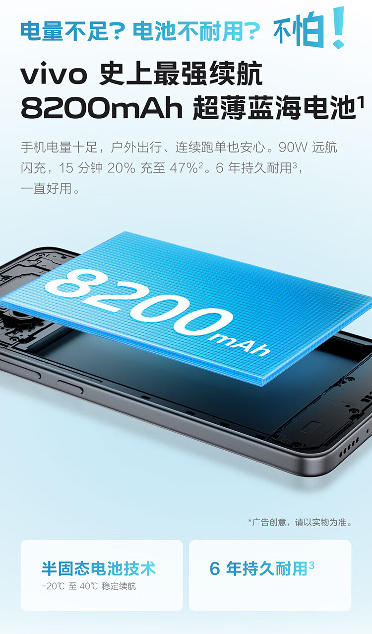 VivoY500 15% national subsidy, new 5G mobile phone, 8200mAh ultra-thin blue ocean battery, IP69 full waterproof, leapfrog flagship appearance, durable and anti-fall AI mobile phone, glacier blue, 8GB+128GB, official standard configuration
