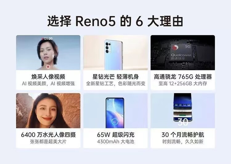 OPPO mobile phone RENO5 mobile phone 12+256g high configuration 5g high value communication for students special price Galaxy into the dream 12+256GB x 5G full network x standard x3