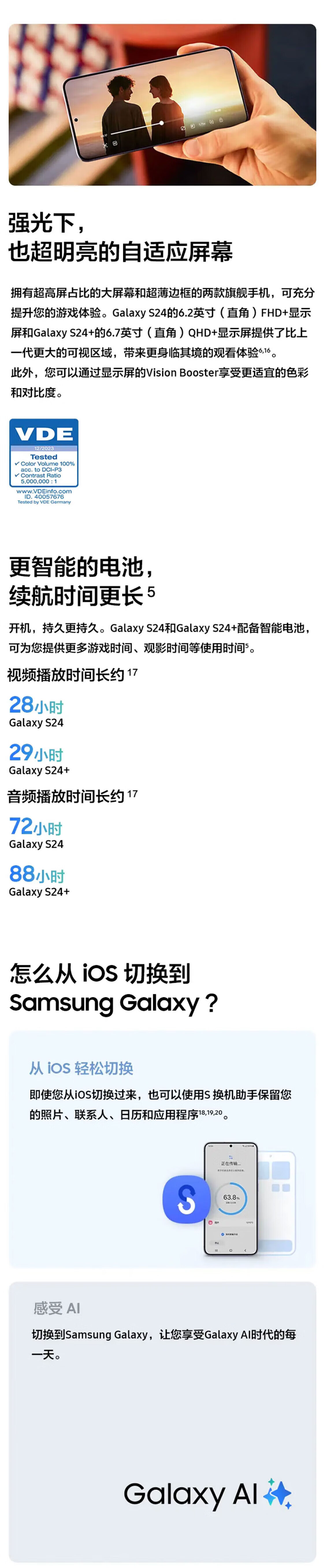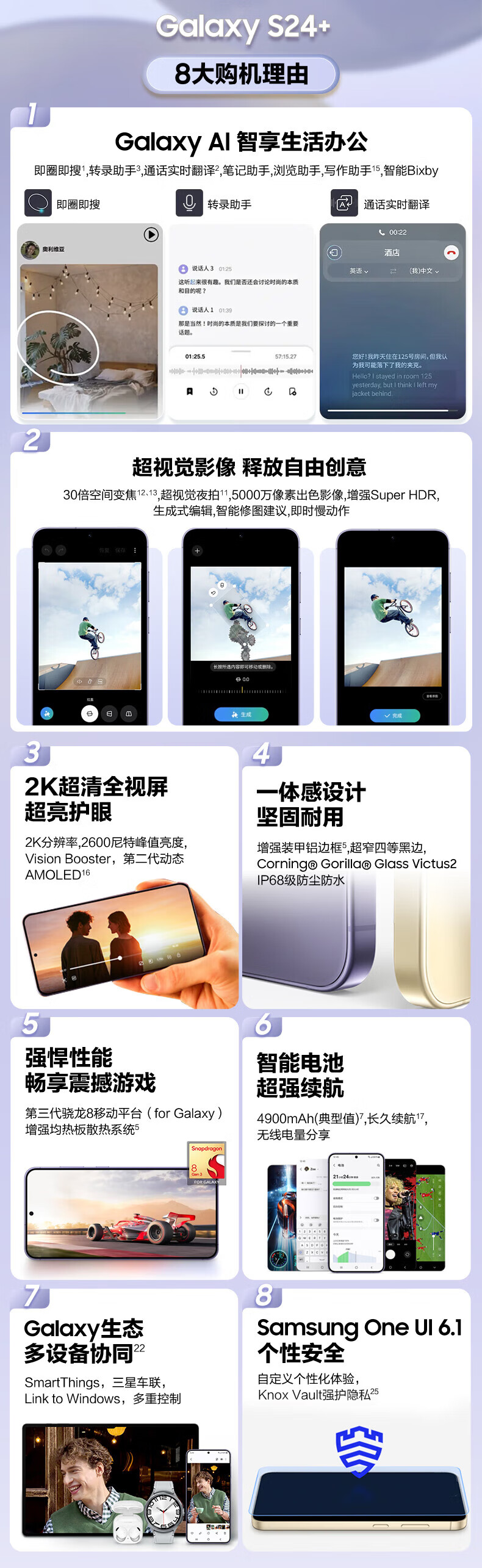 Samsung price guarantee 11.11 Samsung Galaxy S24+ AI mobile phone 3rd generation Snapdragon 8 camera phone 12GB+256GB ink black national subsidy
