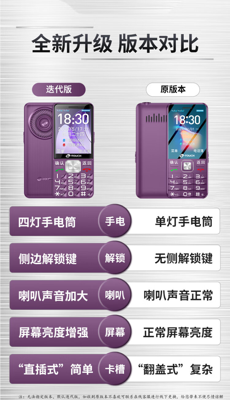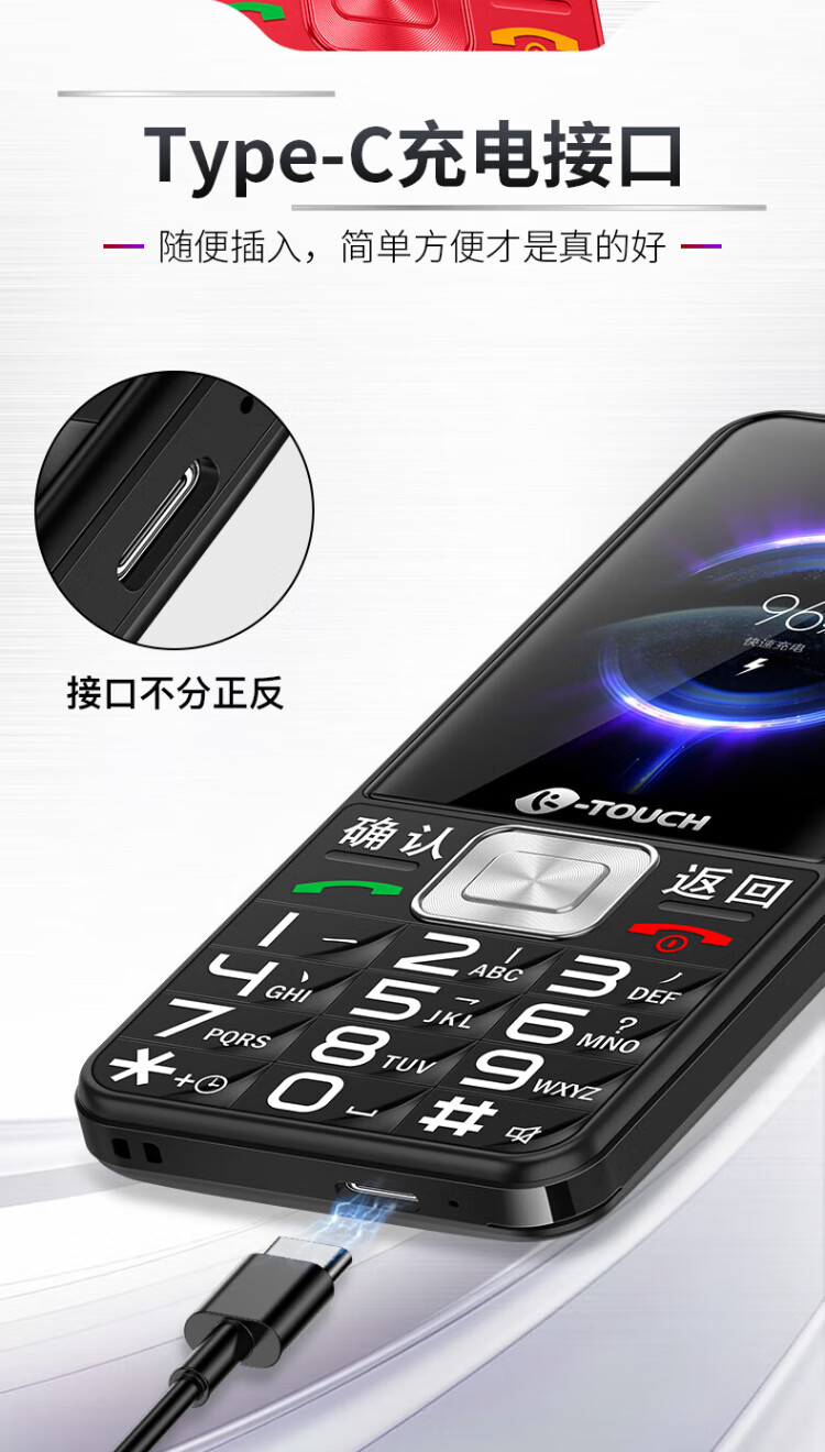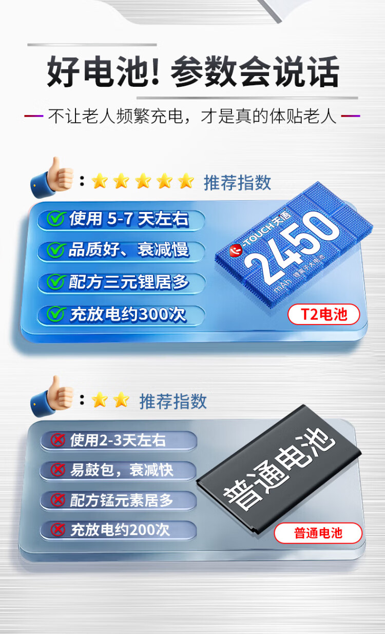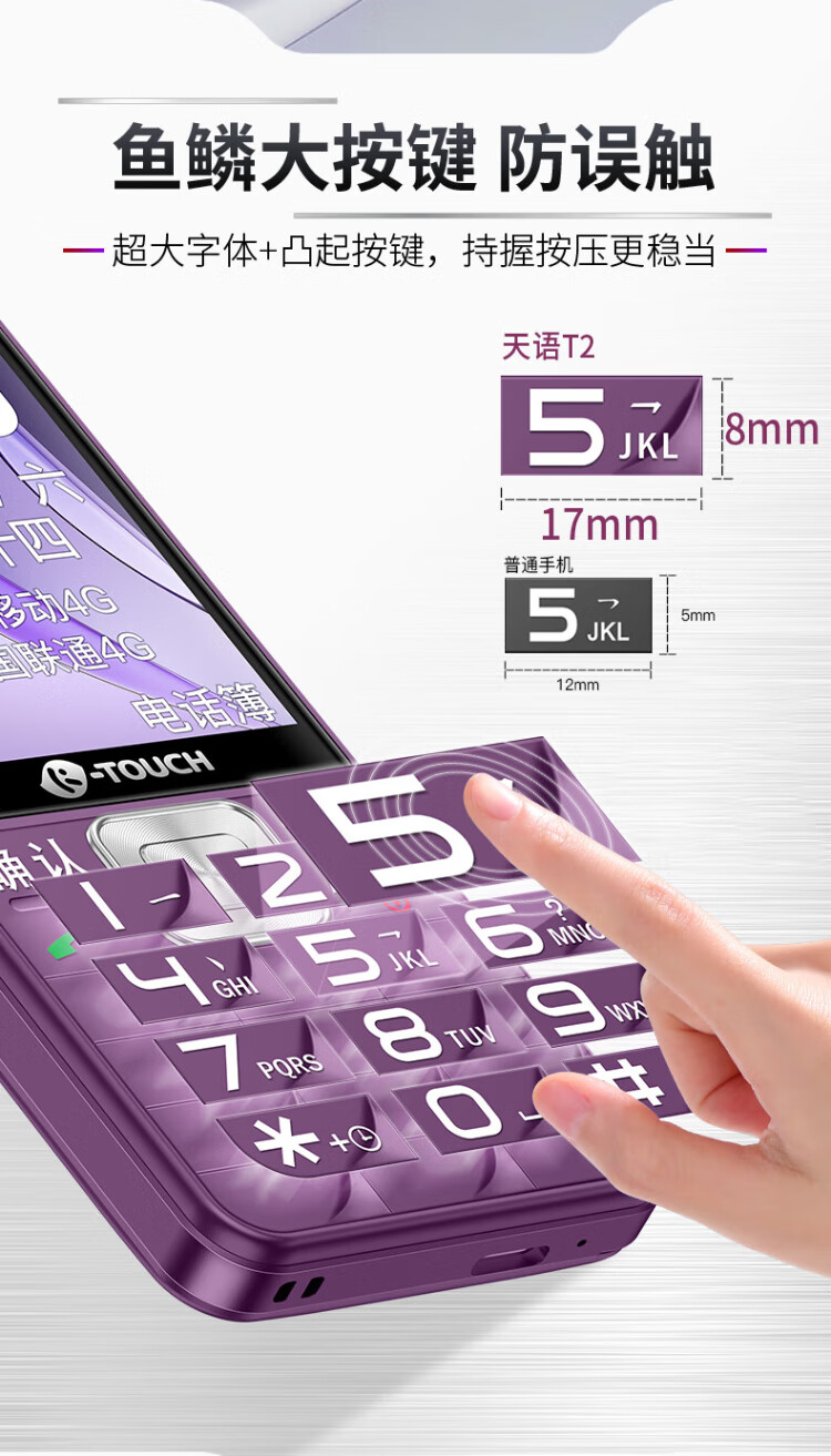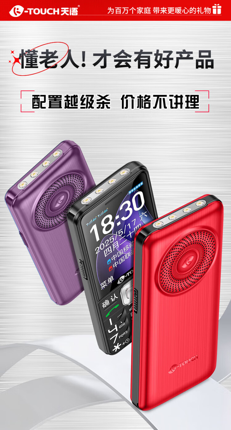 Tianyu T2 mobile phone for the elderly, 4G full network, super long standby, straight buttons, big characters, big sound, large screen, student-specific backup function machine, only makes and receives calls, old man's phone, red