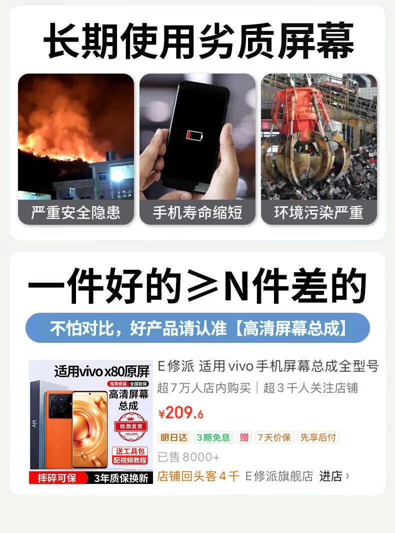 E修派 适用vivo手机屏幕总成全型号通用内屏更换外屏换 适用vivo S15屏幕【直面】高清TFT屏